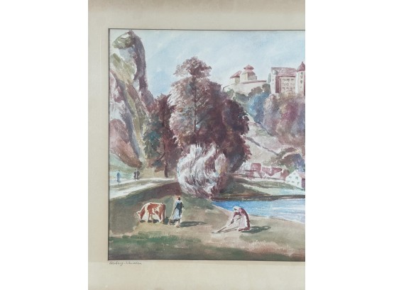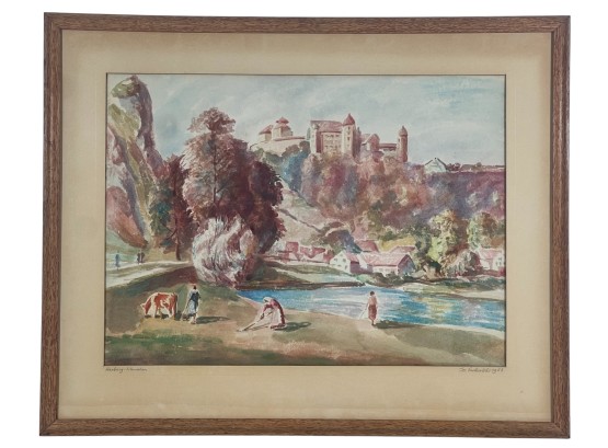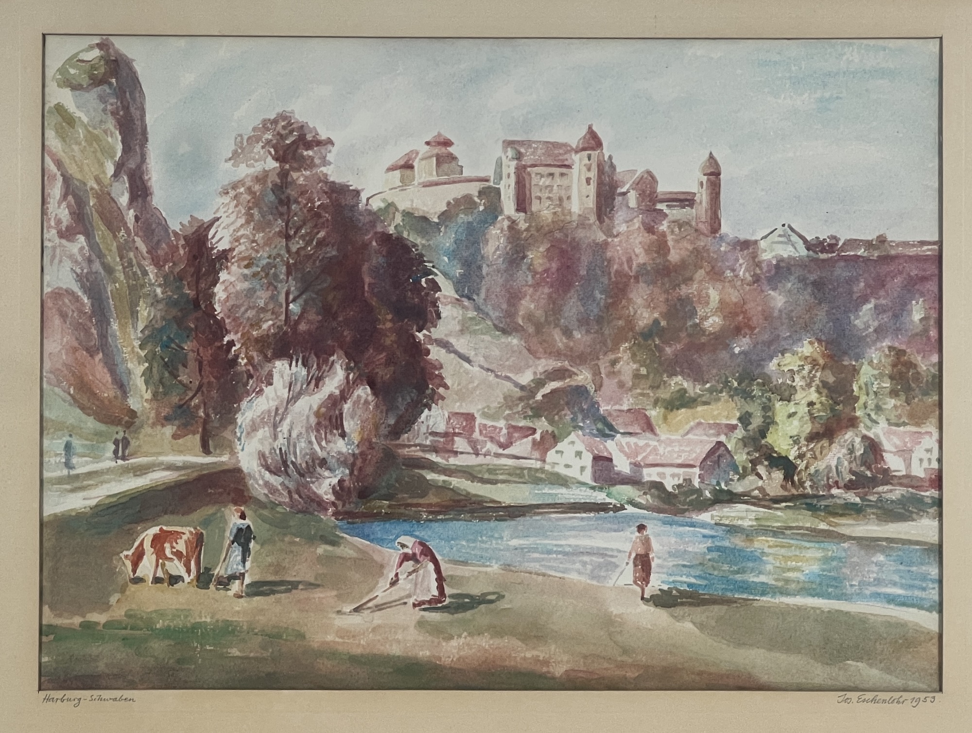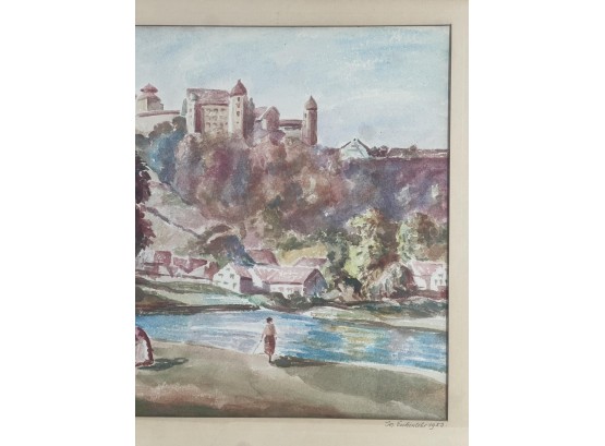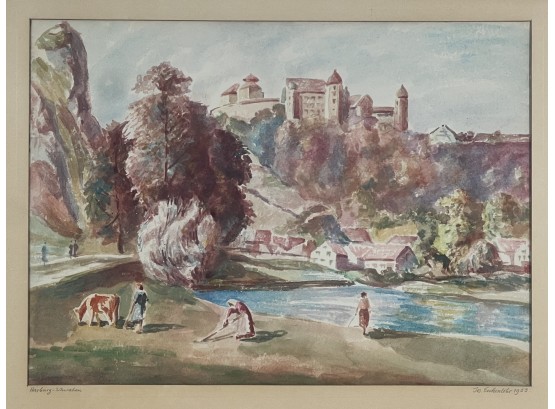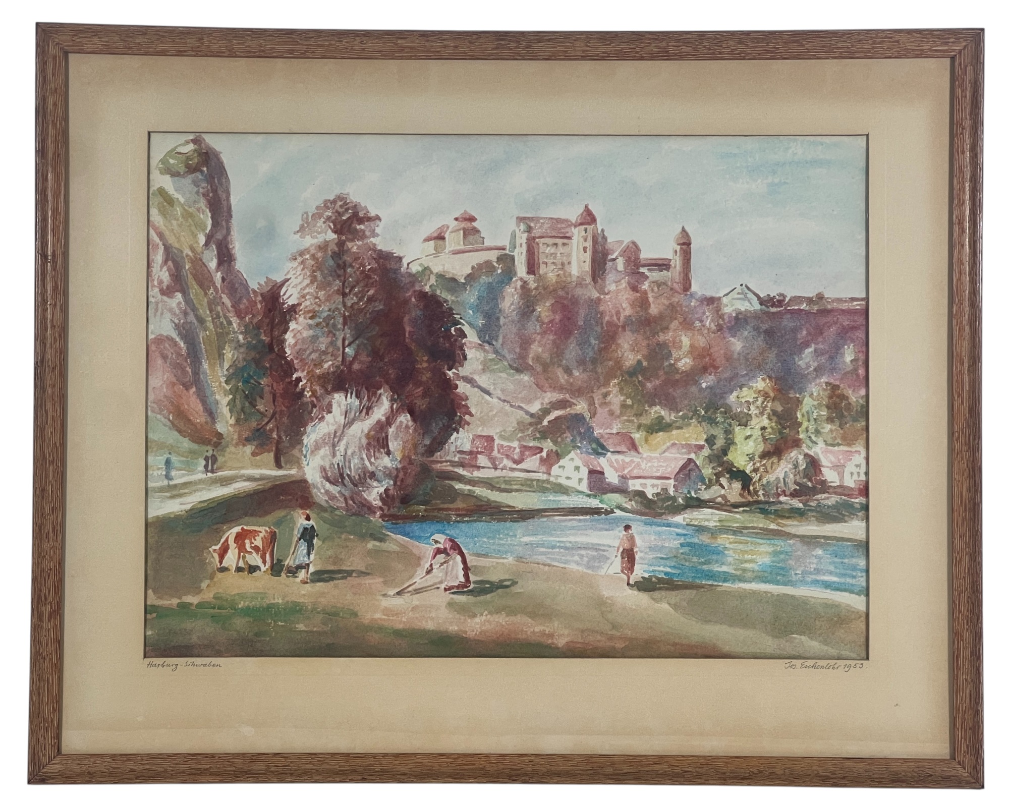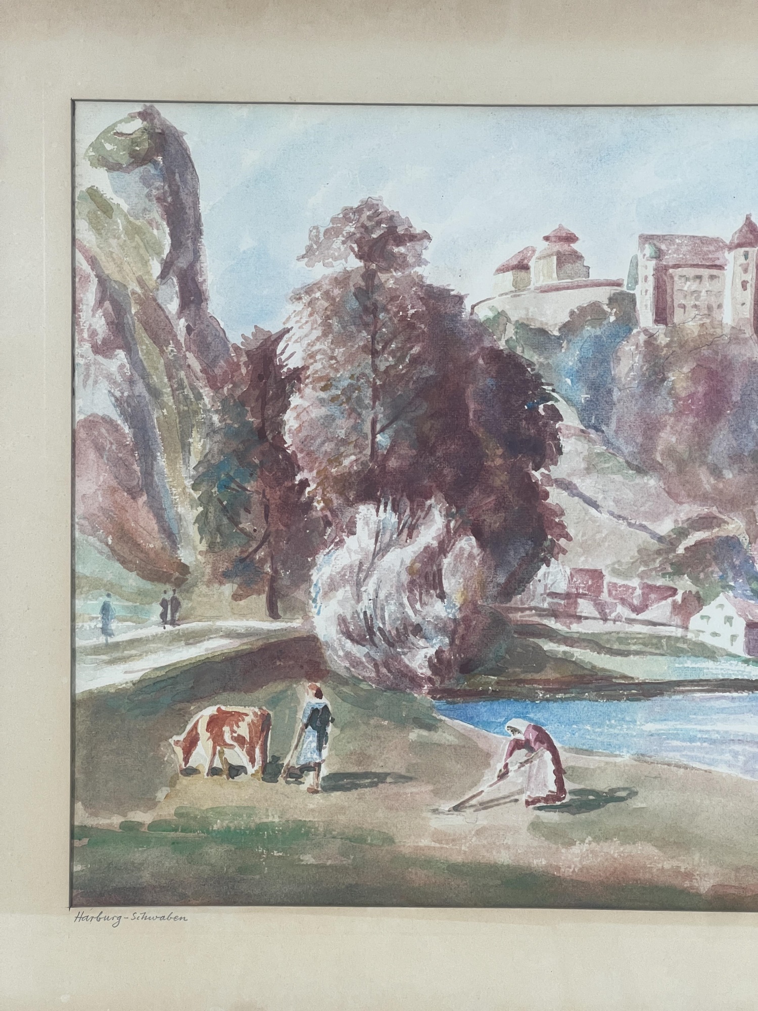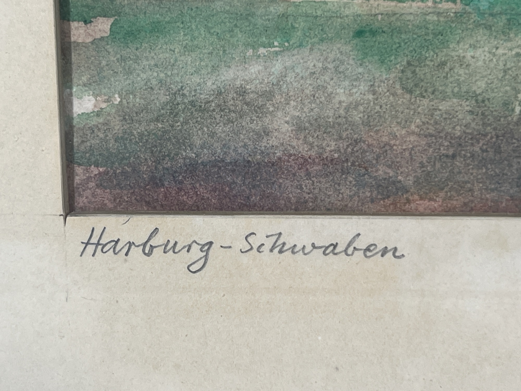 "Harburg-Schwaben", watercolor on paper 14 x 19 inches, signed lower left. 20 1/4 x 25 1/4 inches overall. Condition: Good. Temp No 8876