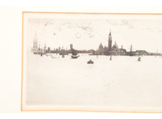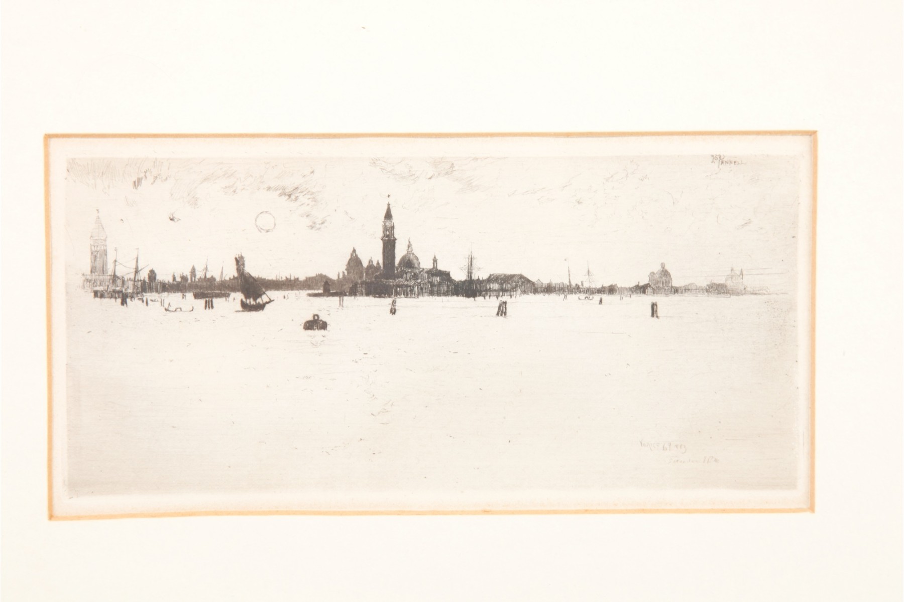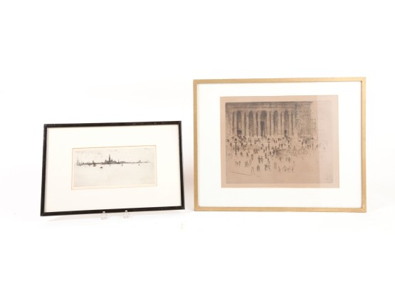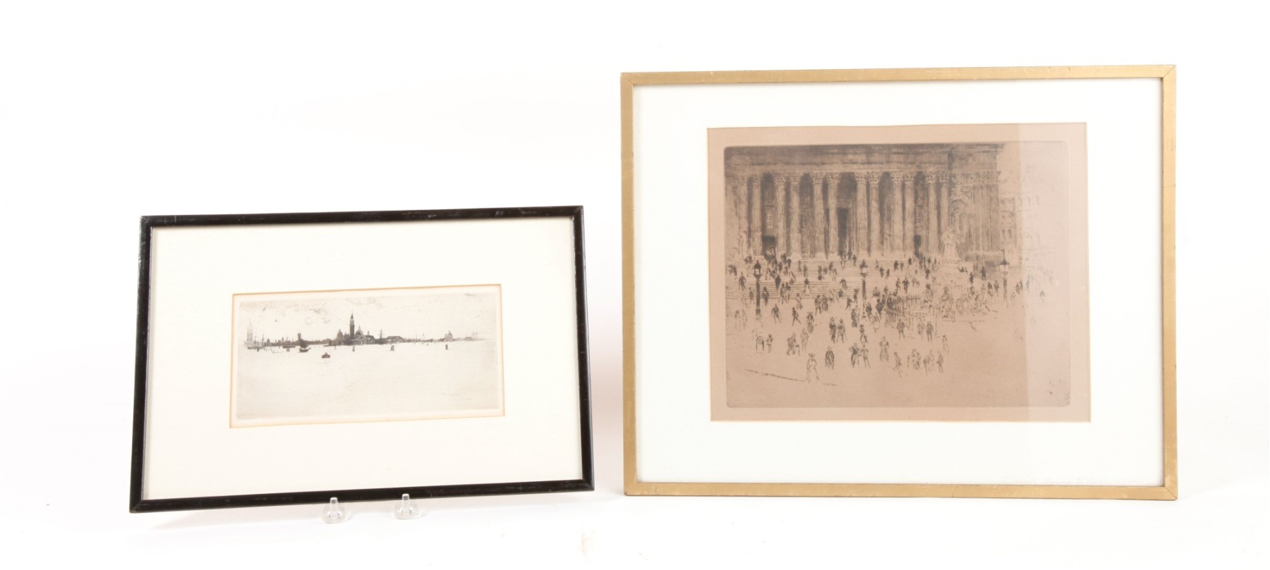"Venice 1883", 3 5/8 x 8 1/4 inches (sight), 9 1/2 x 14 1/2 inches overall. "Pavement St. Paul's London", 13 3/4 x 17 1/4 inches overall.