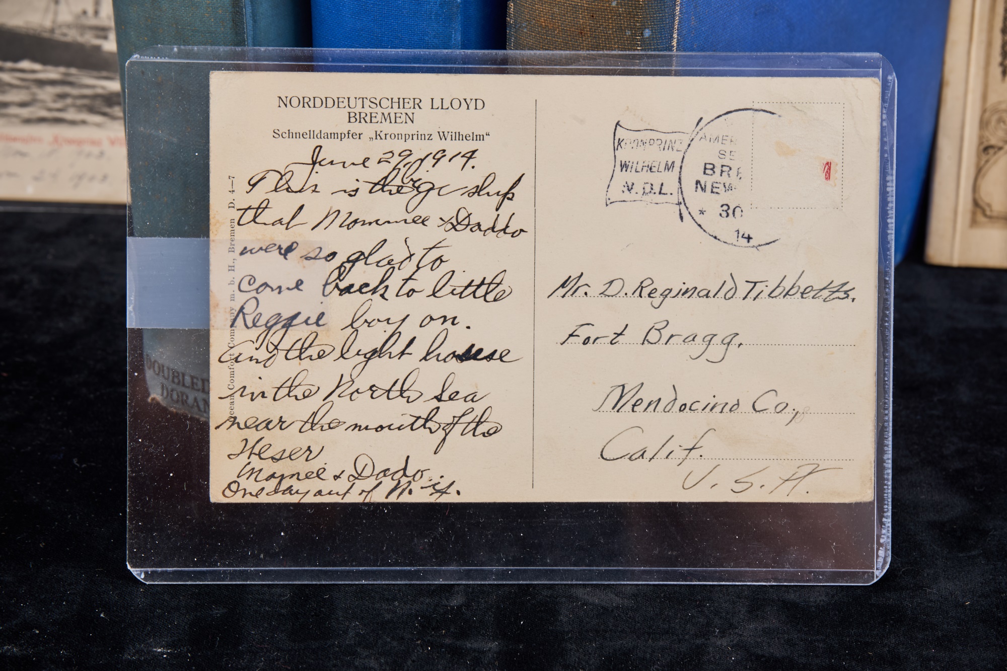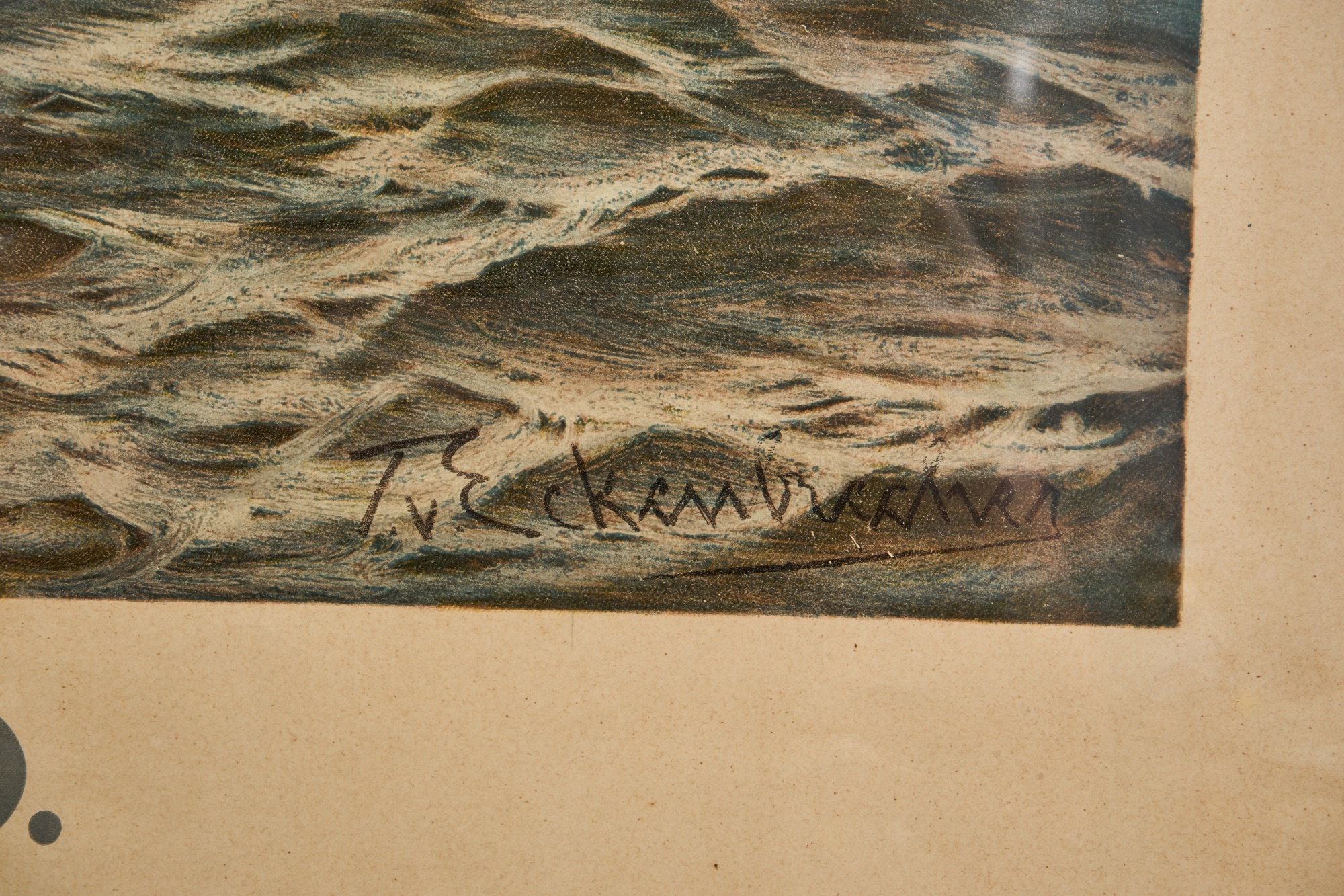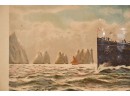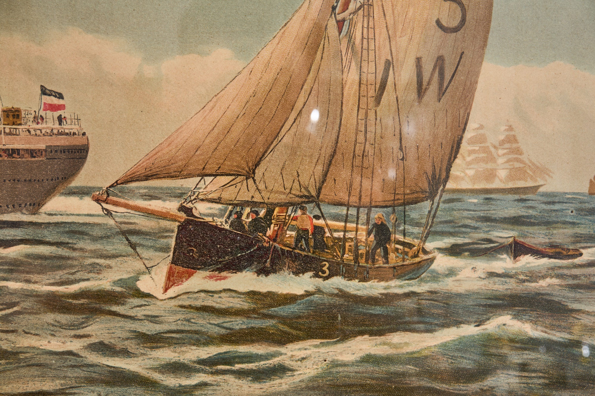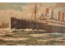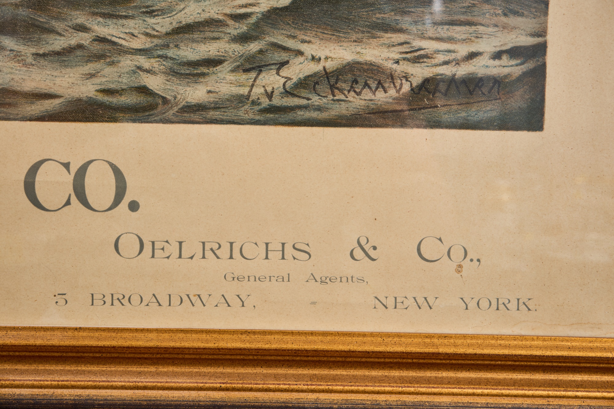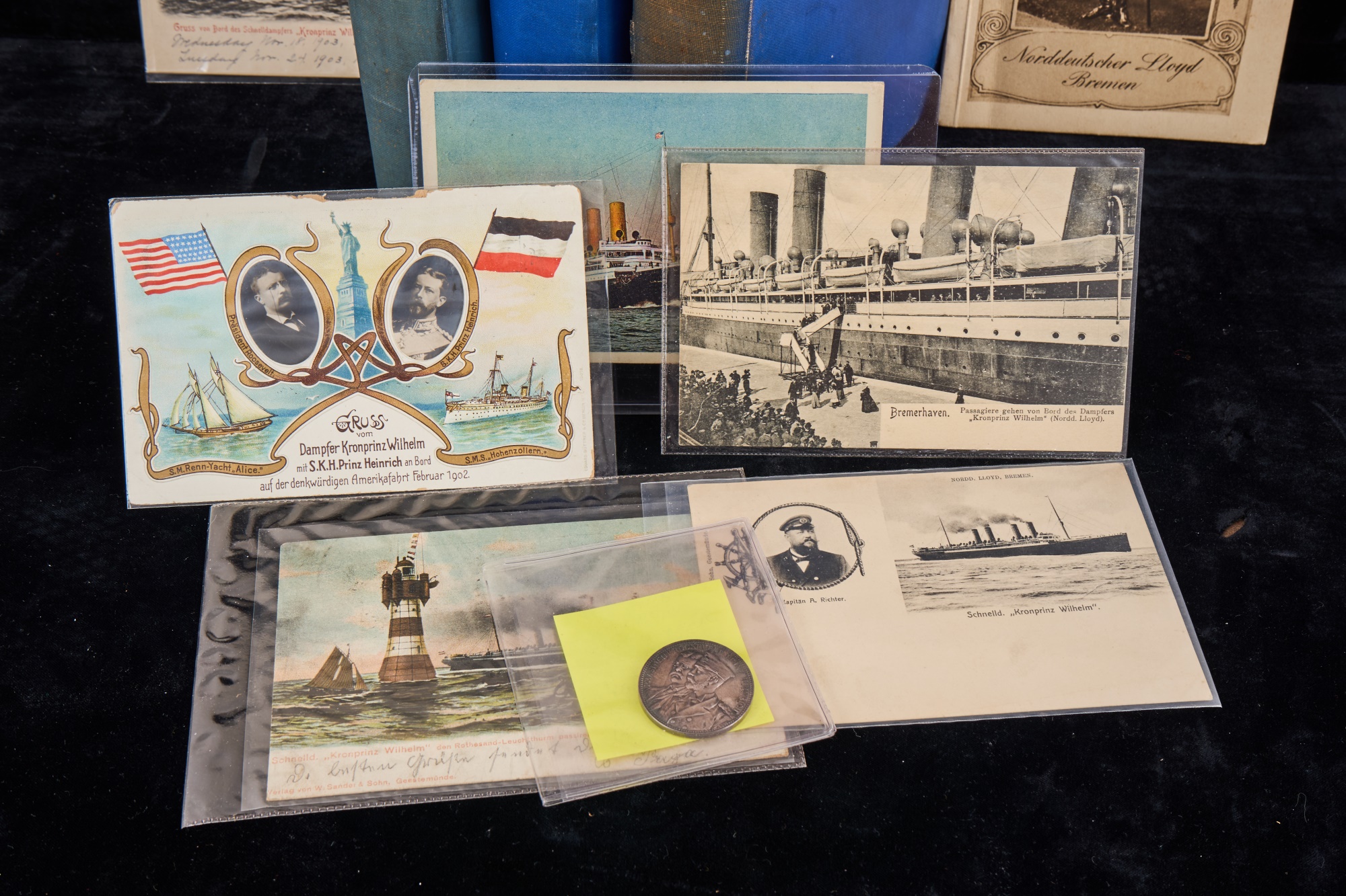 North German Lloyd Steam Ship Co. lithograph by Wilh Jontzen, Breman. 34 x 44 inches (overall including frame). Together with (3) Copies of The Cruise of the Kronprinz Wilhelm by Alfred von Niezychowski, Doubleday 1929 hardcover clothbound.