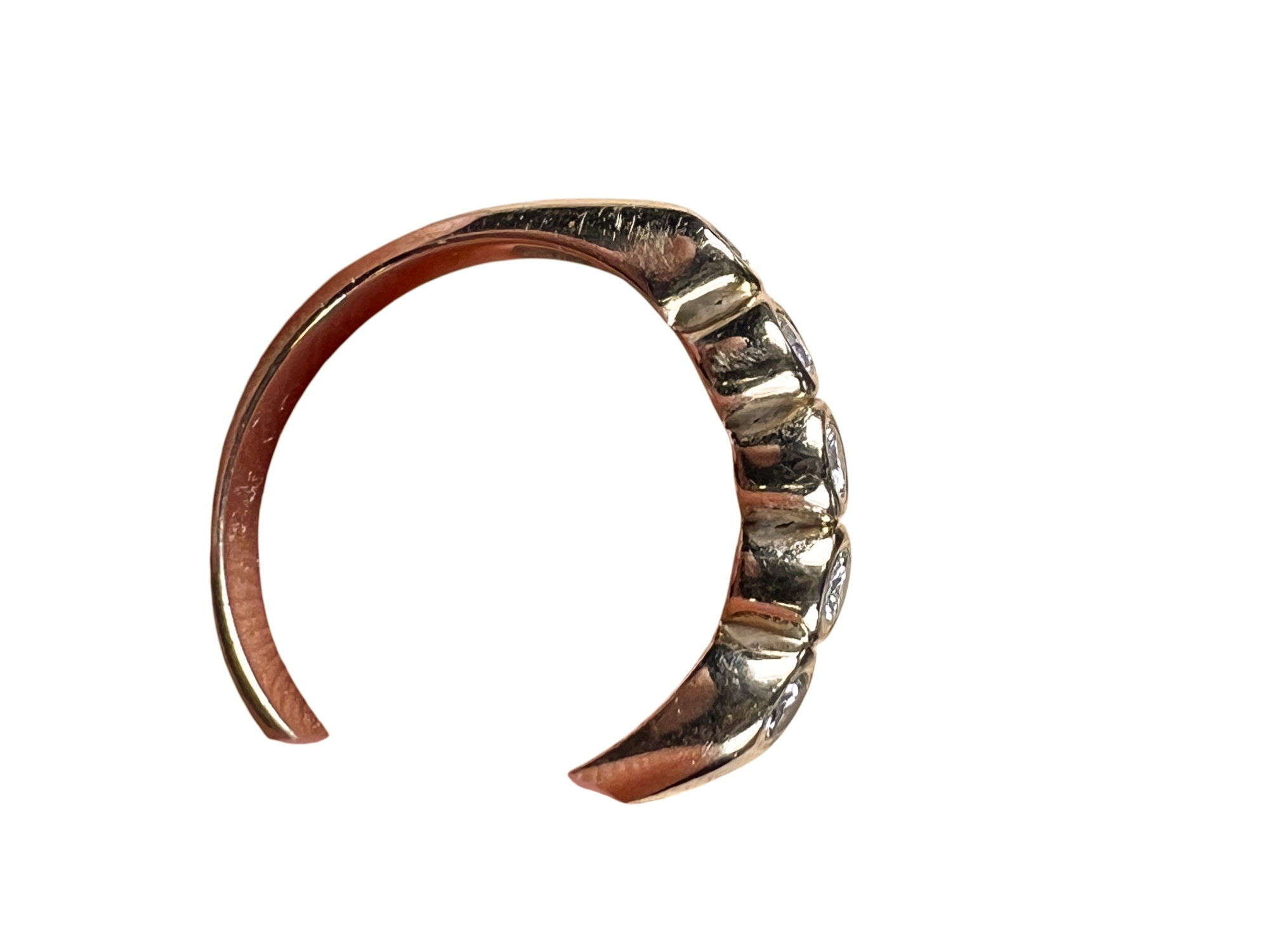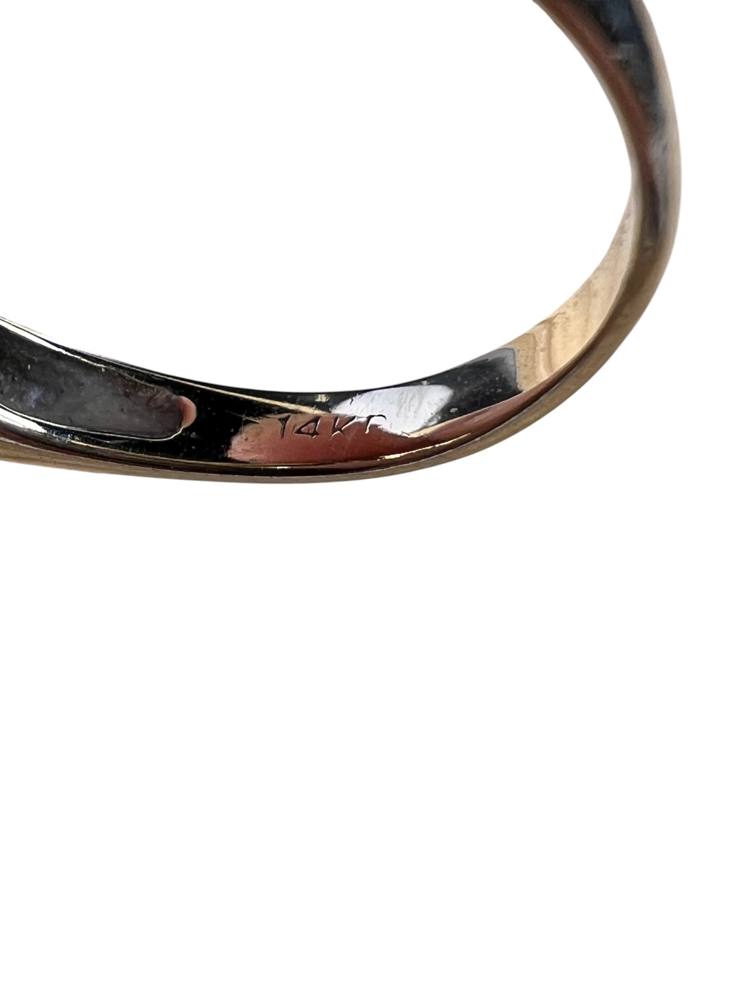 Marked 14K. 2.1 DWT. Size 6 3/4. Condition: Good, used