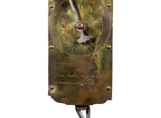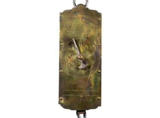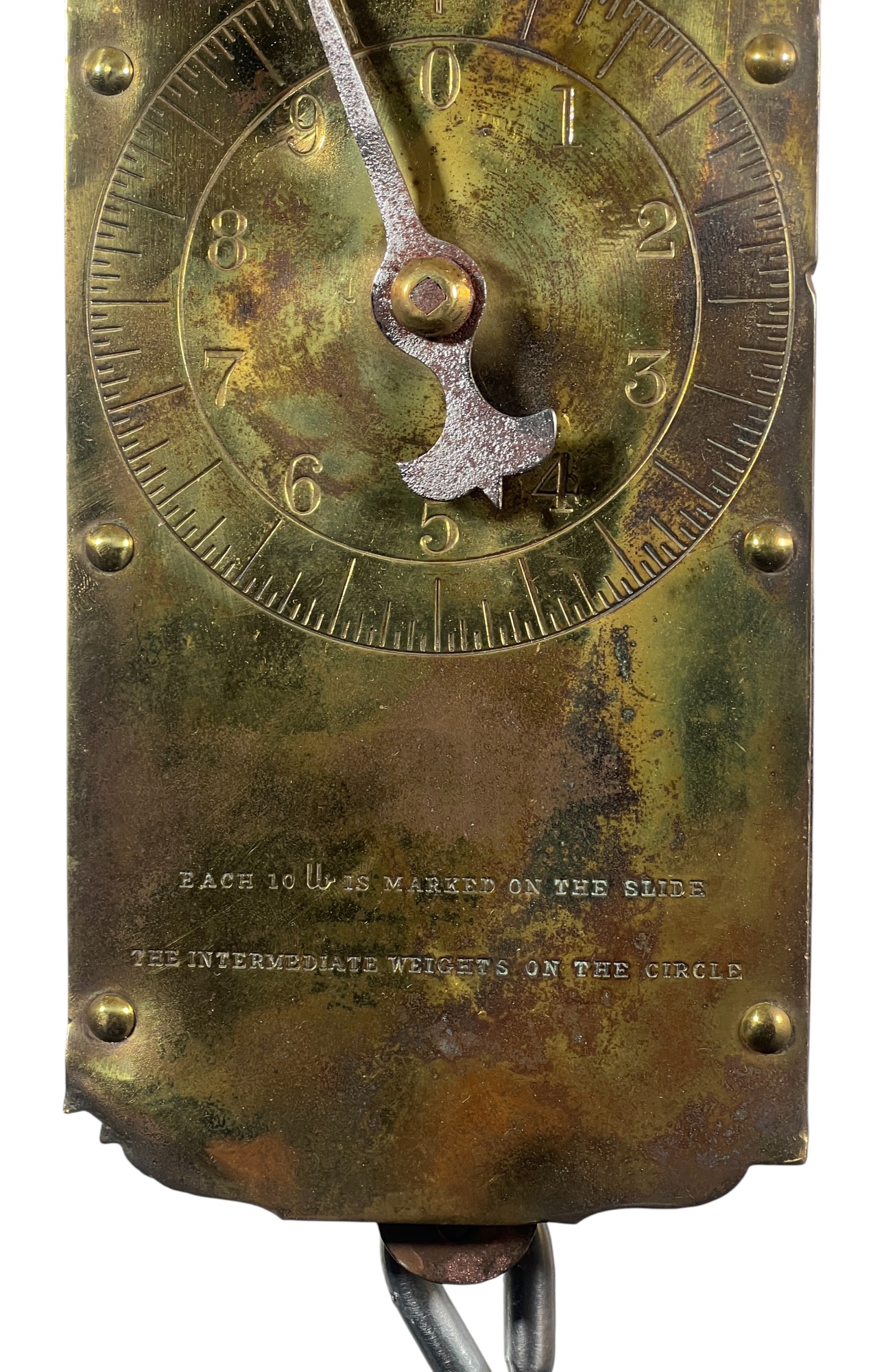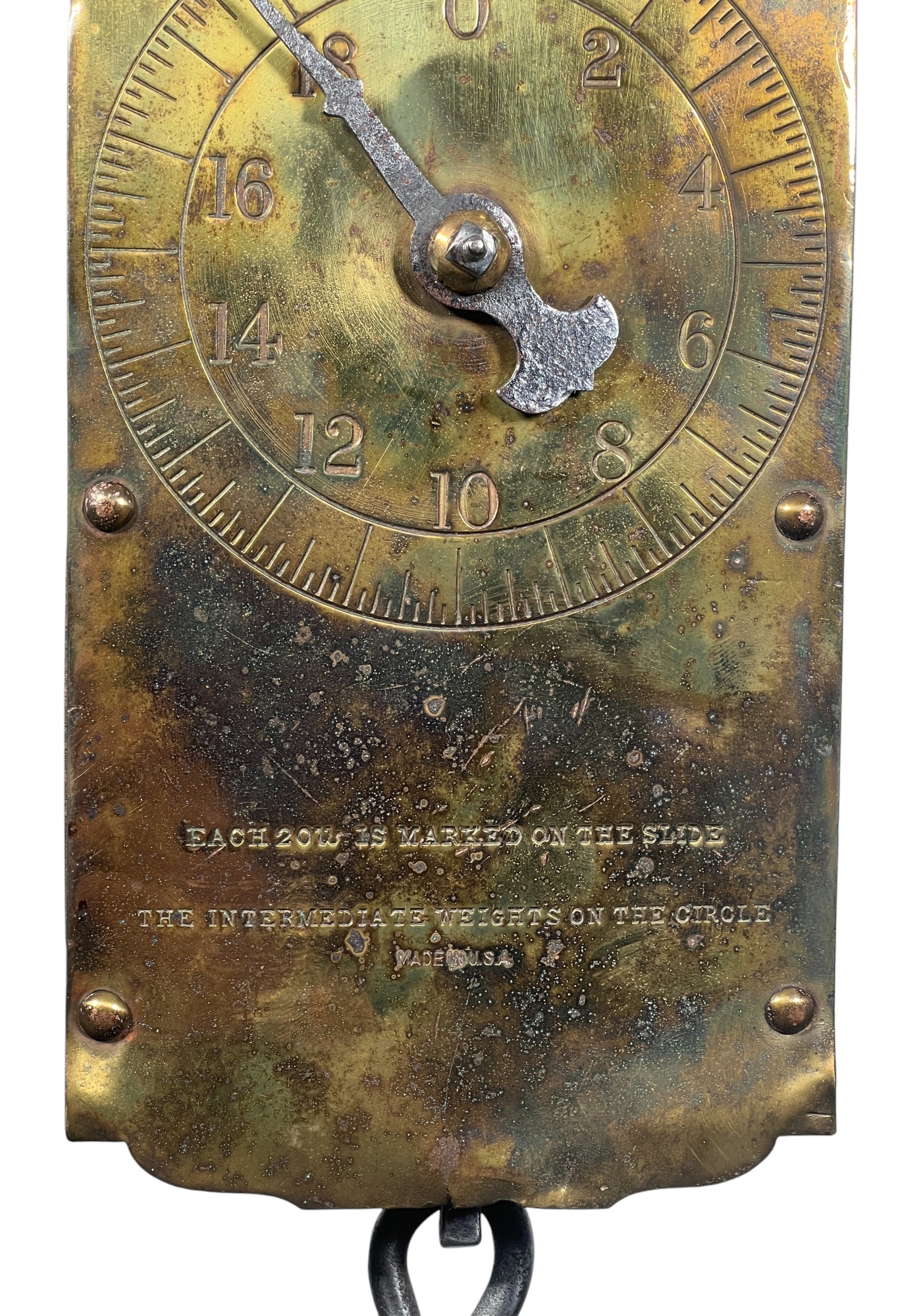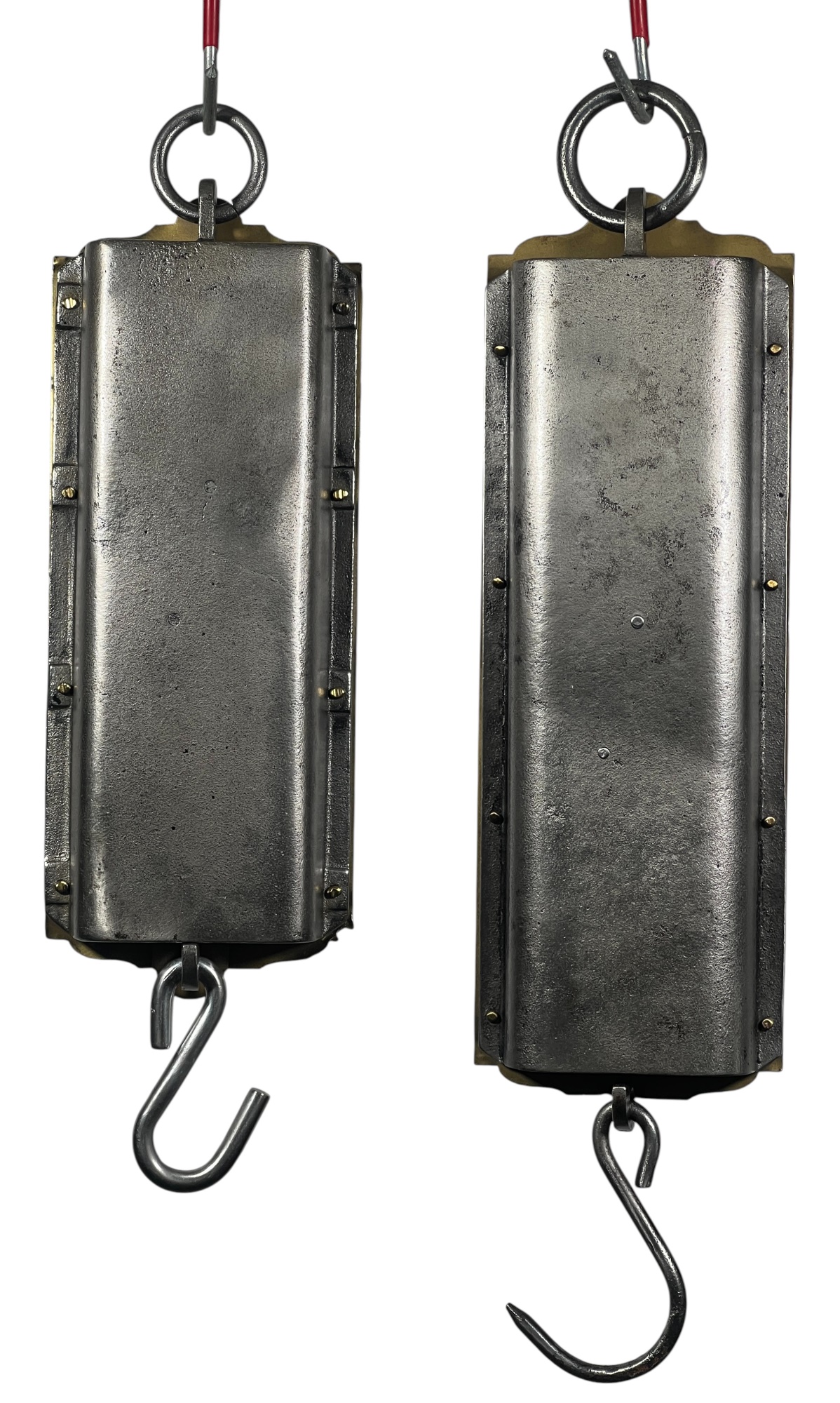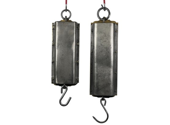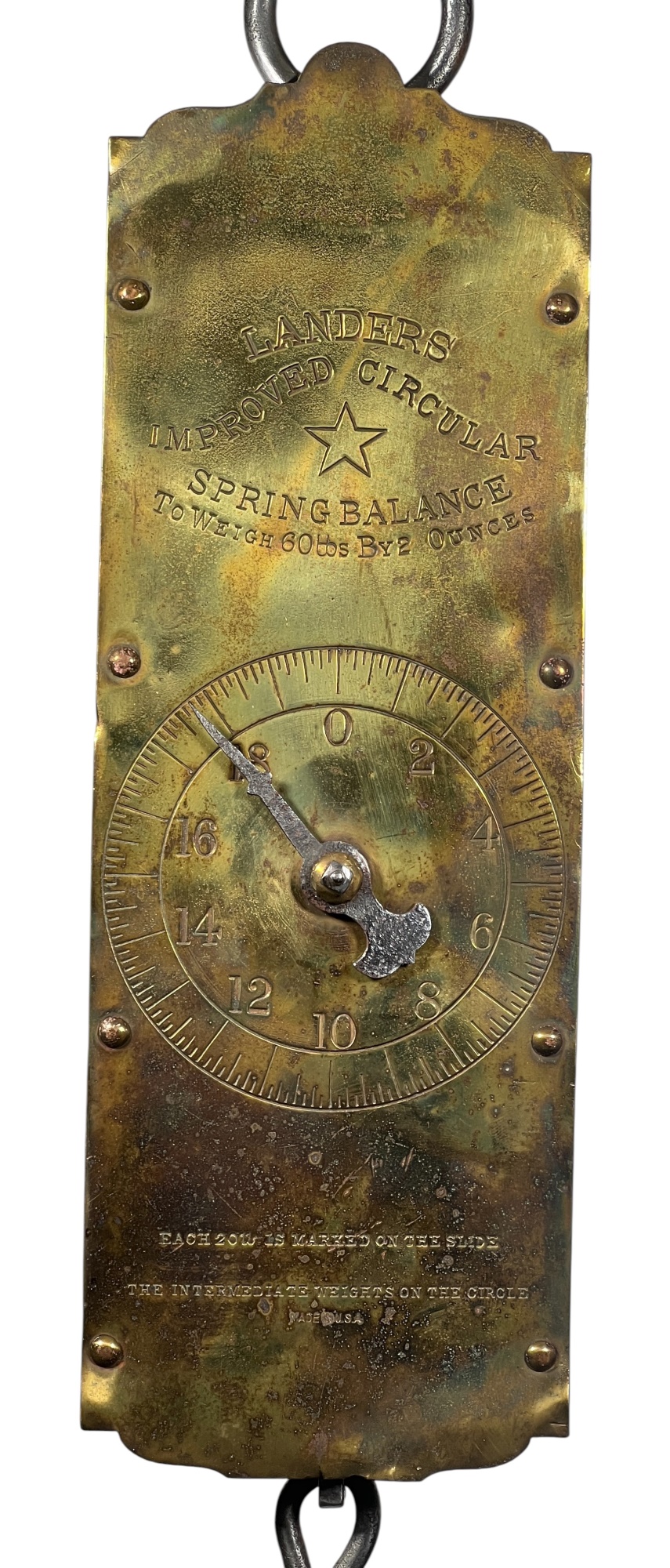Lander's brass & iron spring scales, (30) and (60) pound examples. 17 x 4 1/4 inches. Condition: Good. Temp No 8815