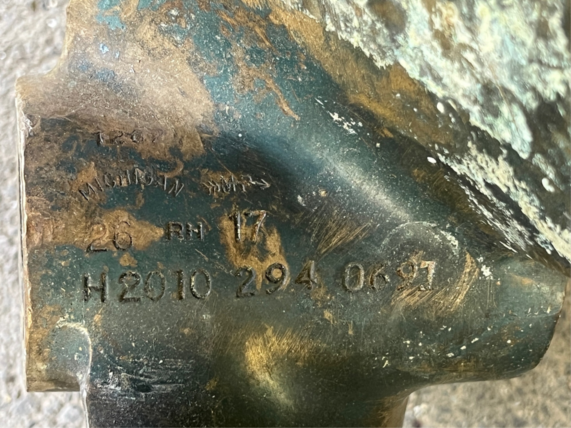 Marked "Michigan 26 RH 17 H2010 294 0691 26 x 17". 22 1/2 x 24 inches. Condition: Wear expected from use. Temp No 4155