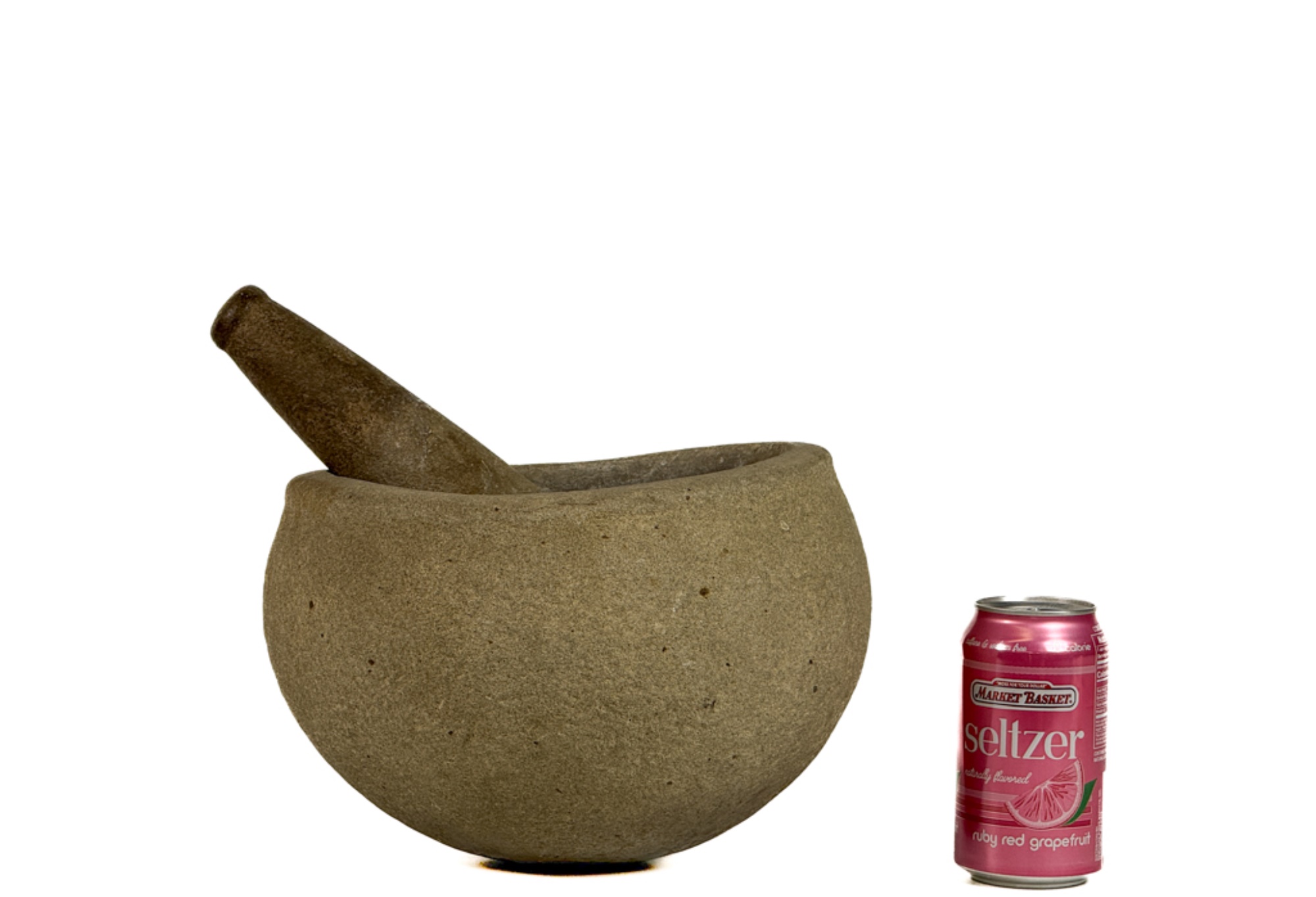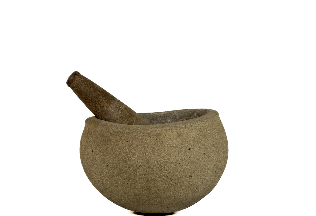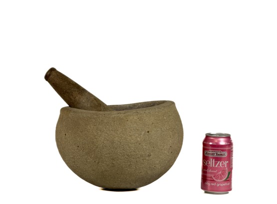 Mortar measures 8 inches tall. Condition: Good. Age/use expected wear.