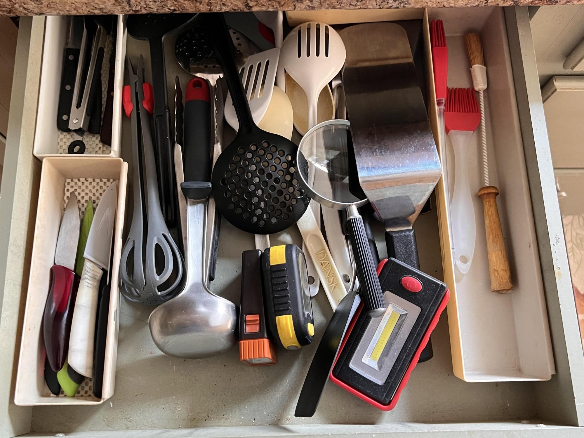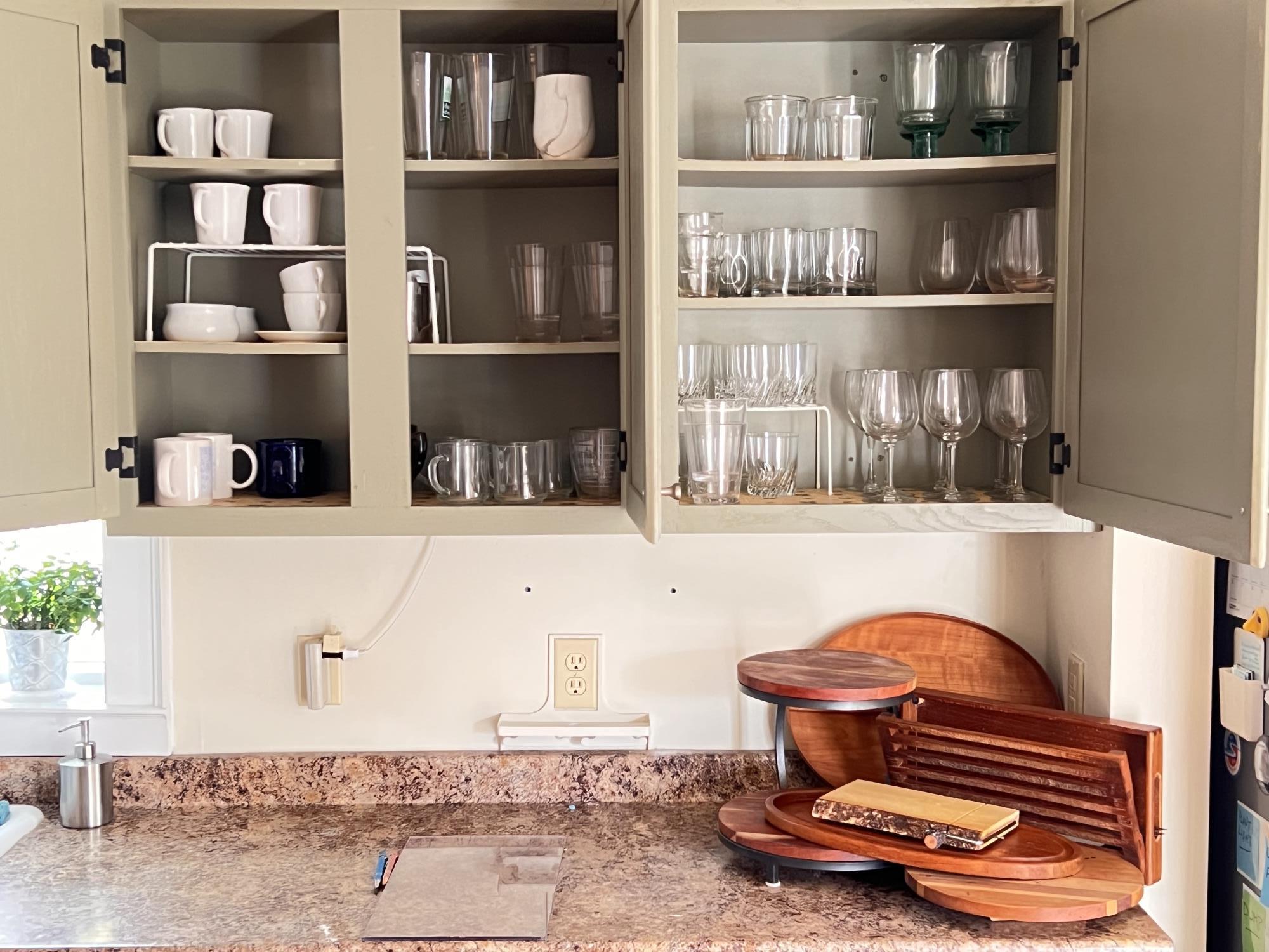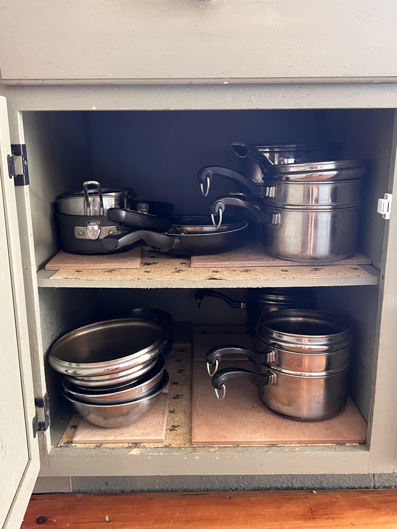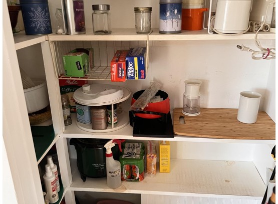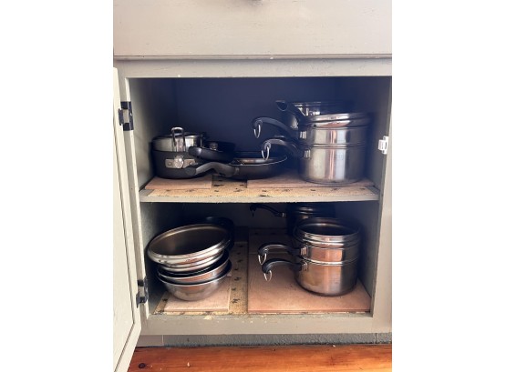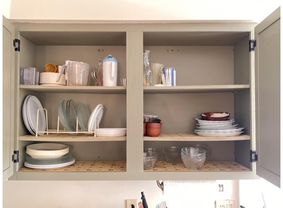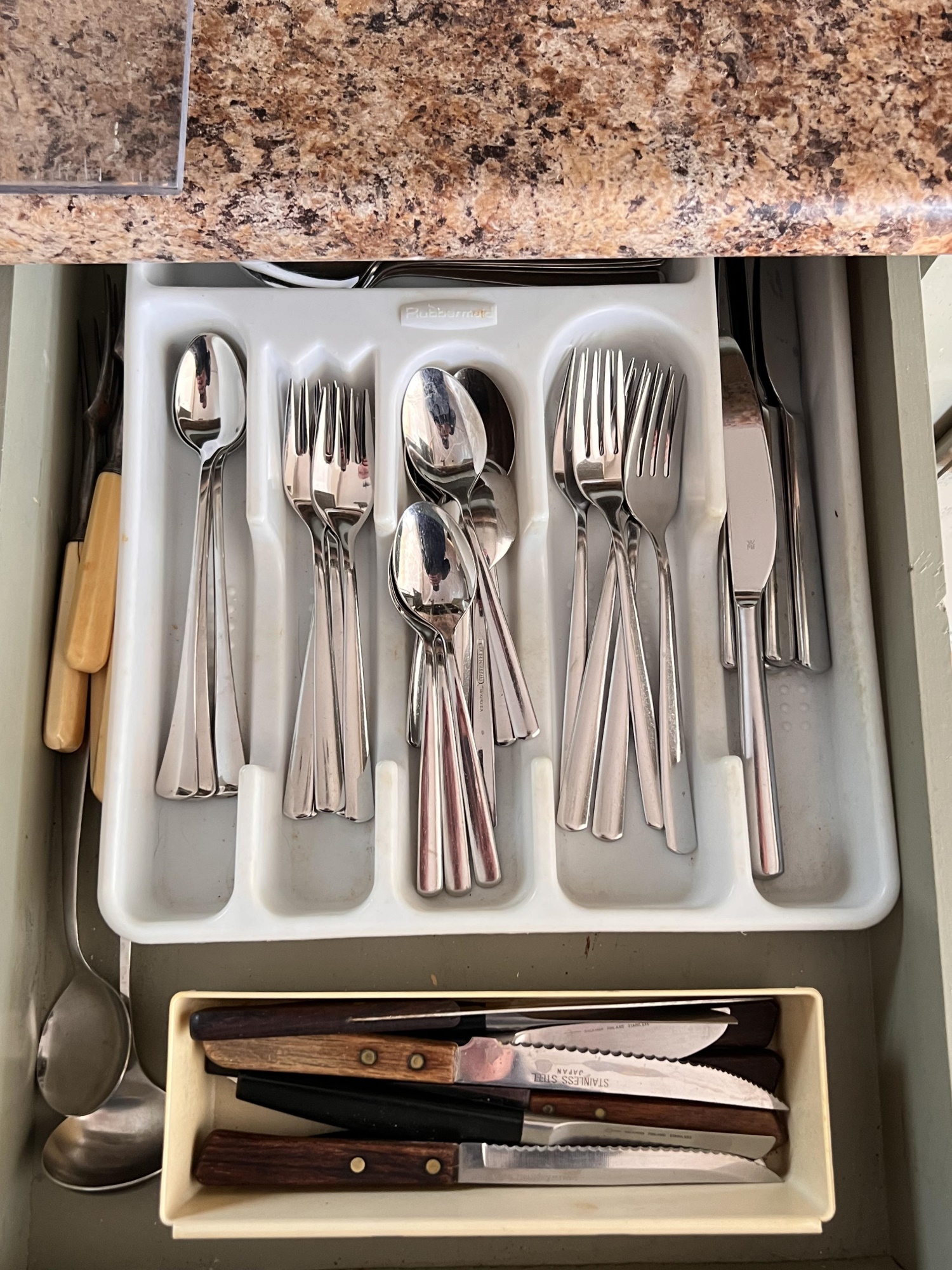 includes glassware, silverware, kitchenalia, toaster oven, pots, pans, pottery, wooden cutting boards and other useful kitchen items