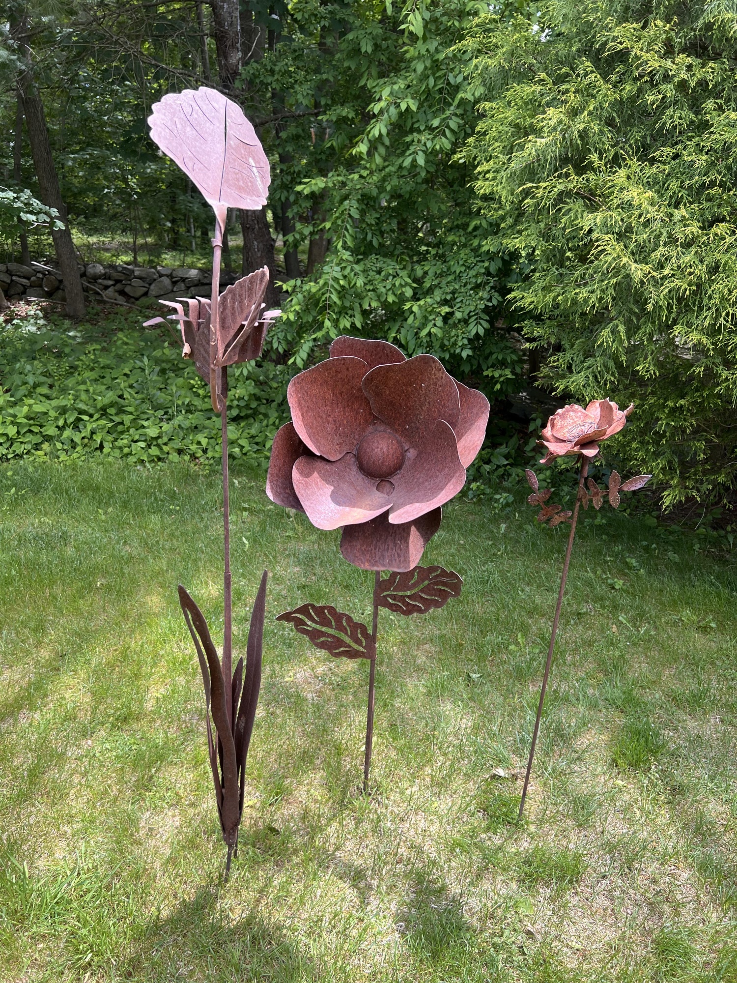 Large flower, floral candlestand and a second smaller flower. Condition: Good