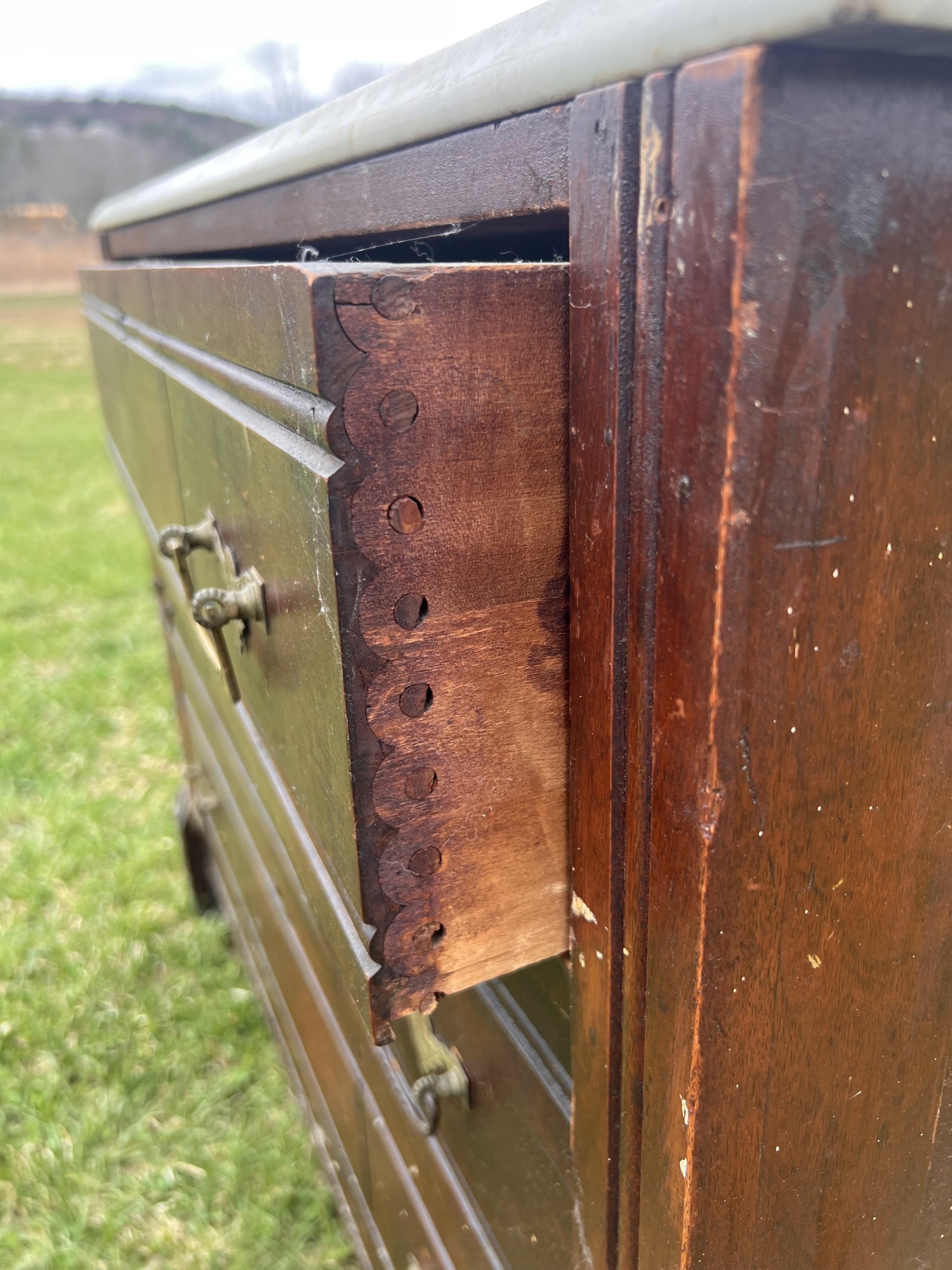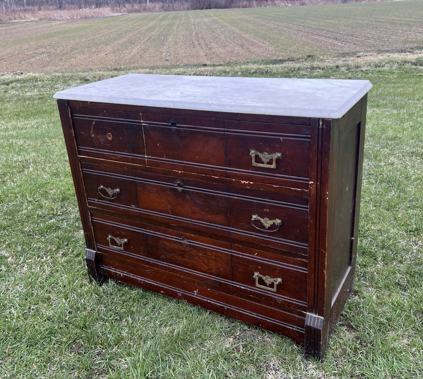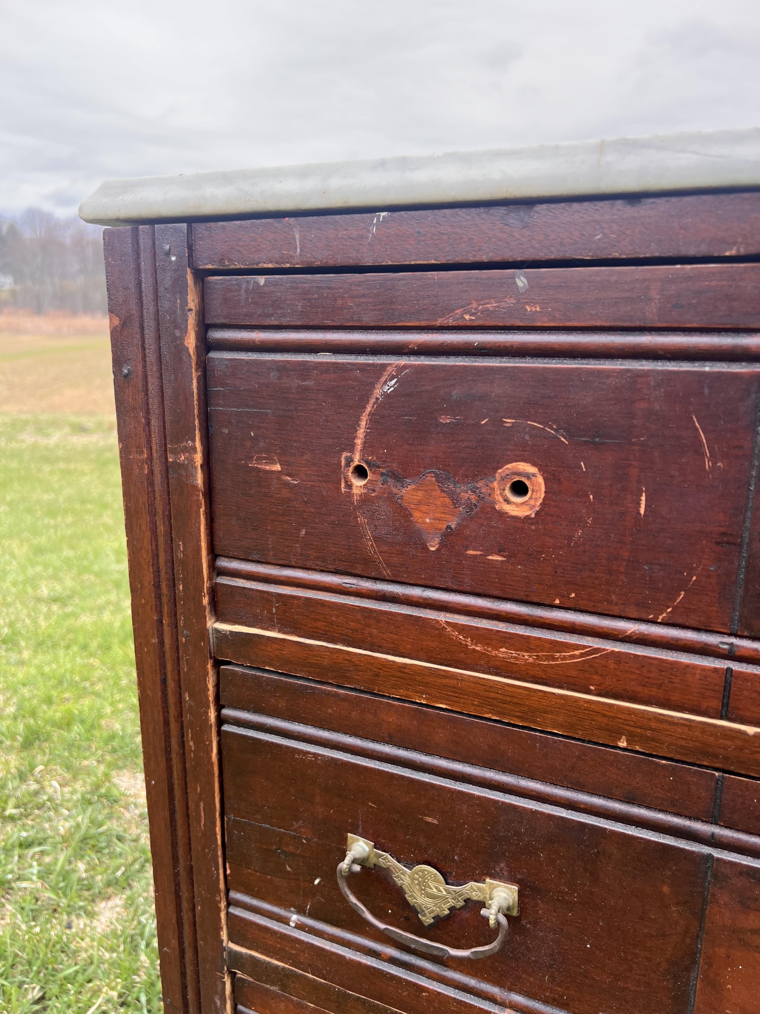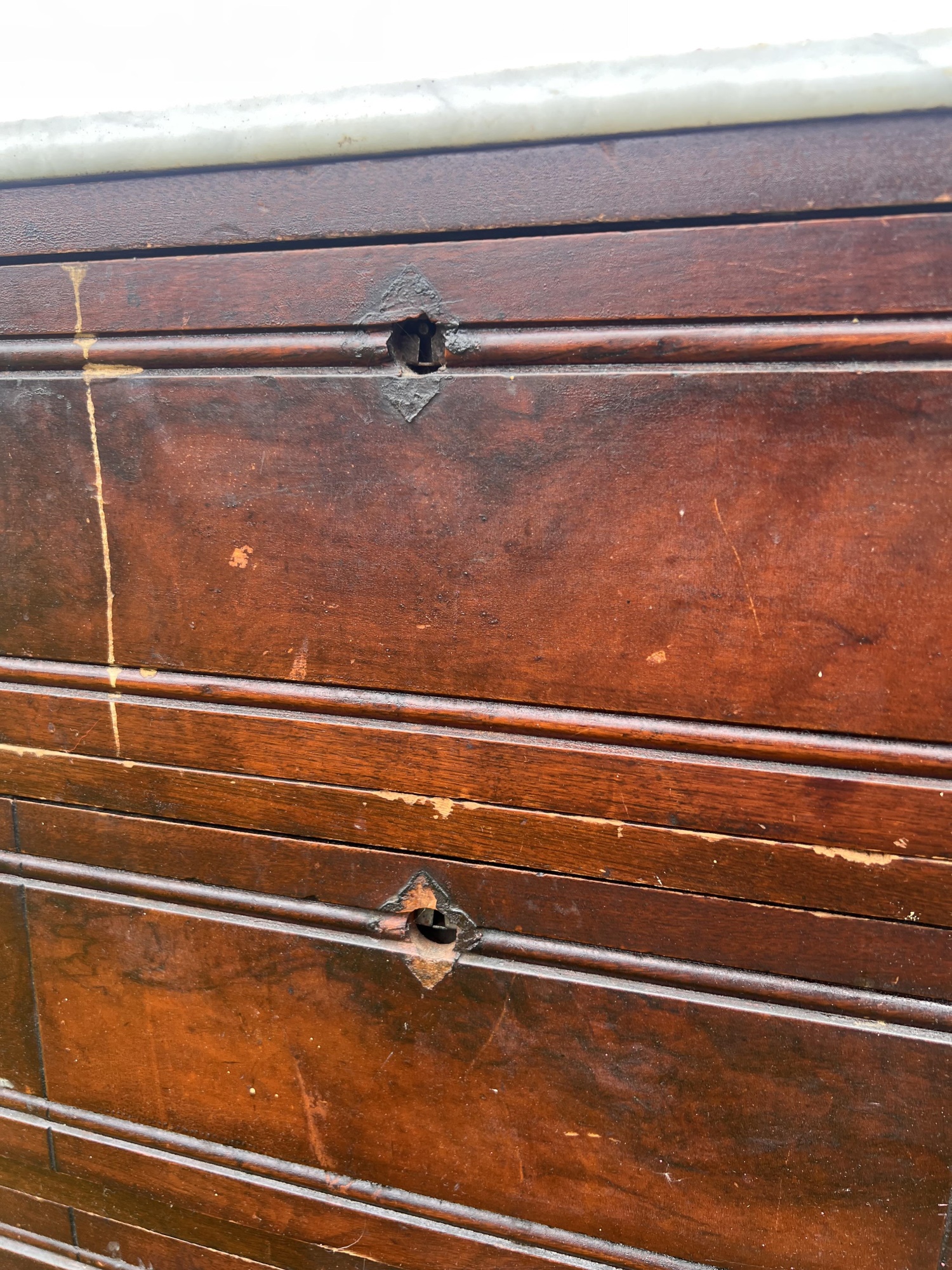Notes: Missing hardware, scattered scratches and wear to surface