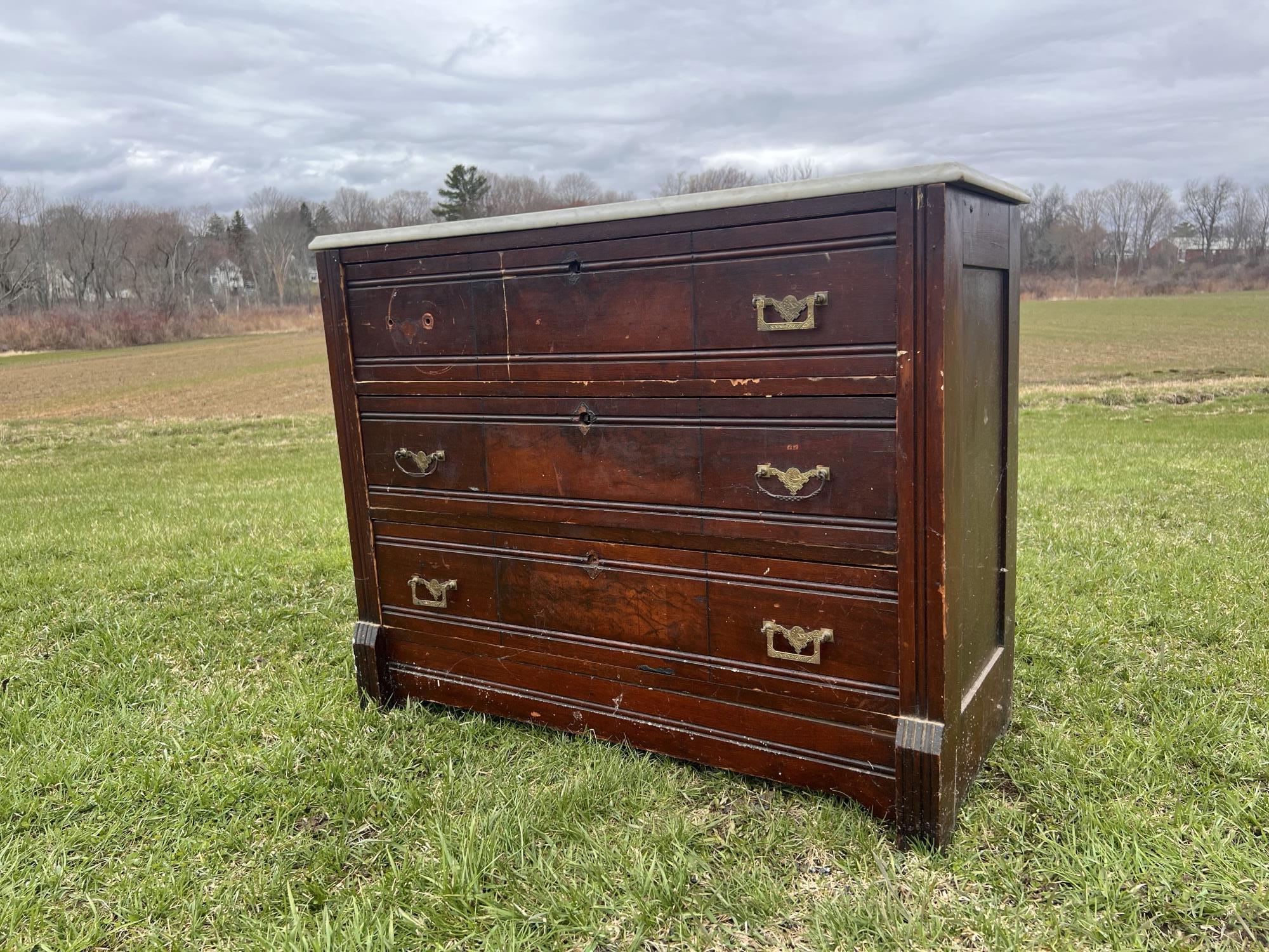 31" x 38 1/2" x 16" Condition: Missing hardware, scattered scratches and wear to surface Temp No 6716