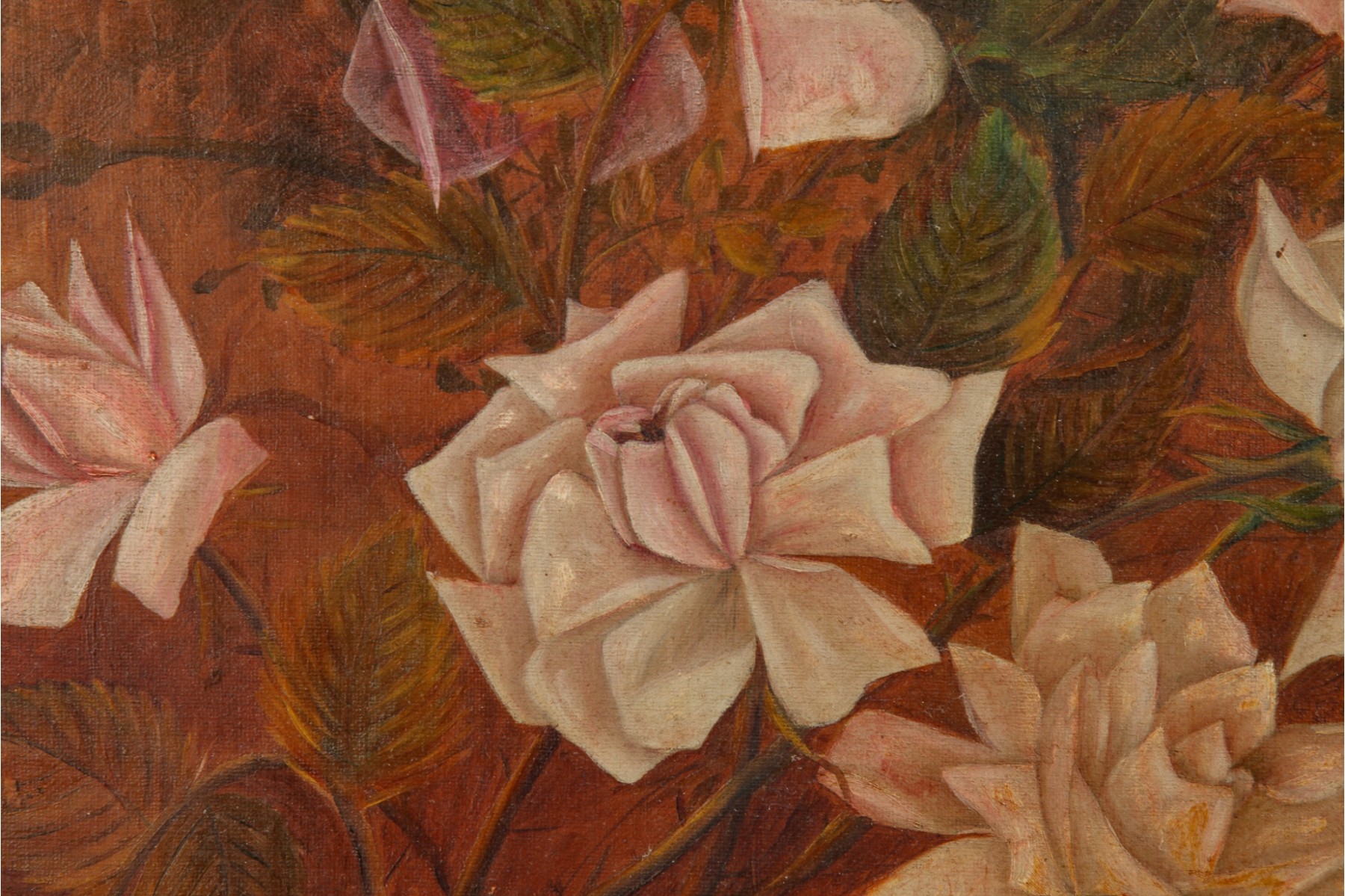 Signed on reverse " Painted by Mrs MJ Hussey". 31" x 27" framed