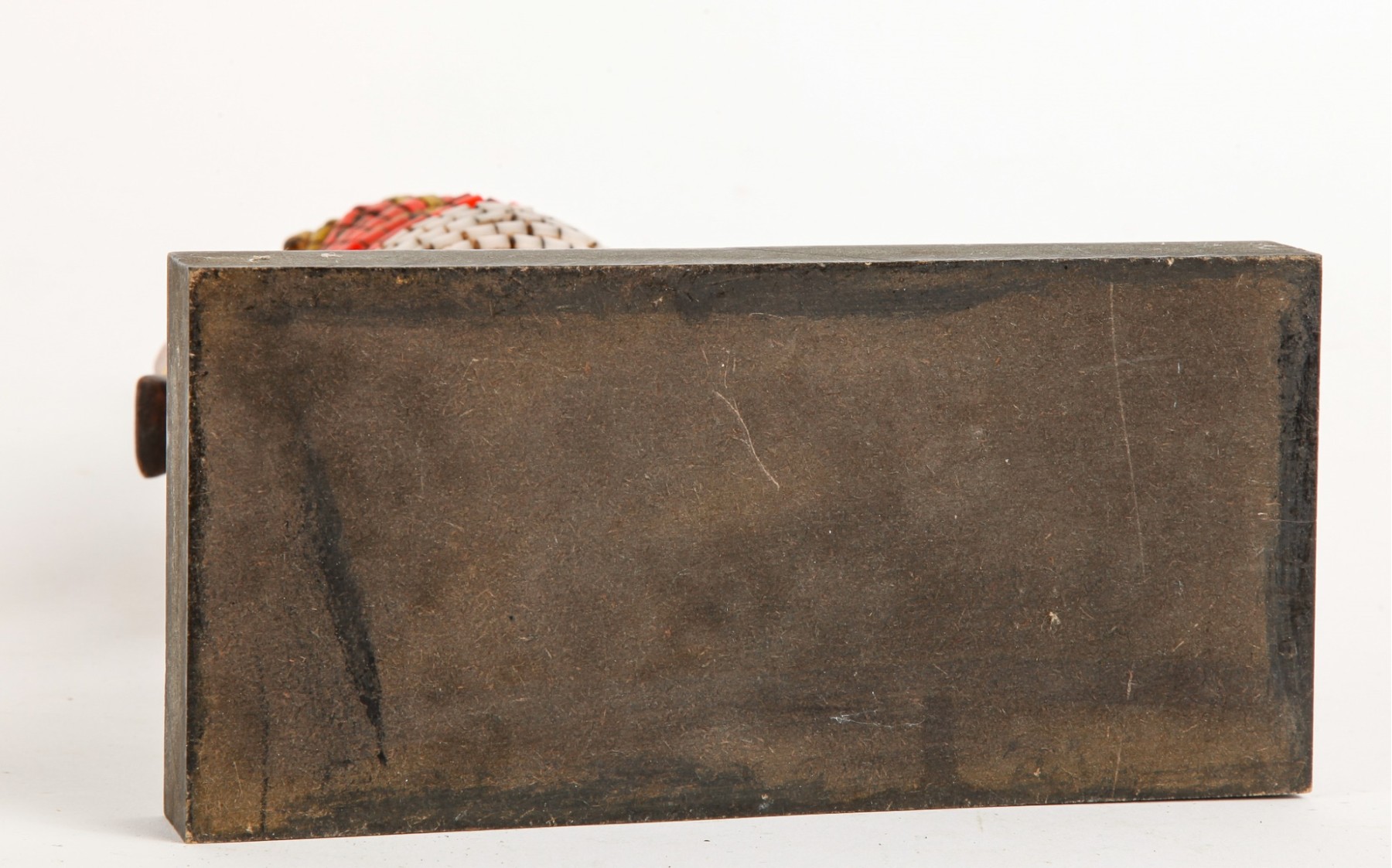 On wooden base. 14 1/2" x 7 1/2" x 3 1/2"