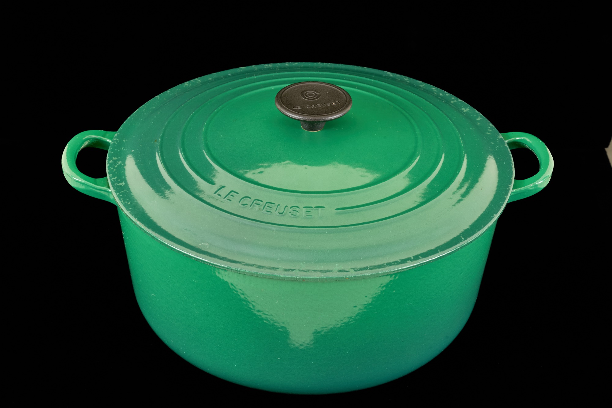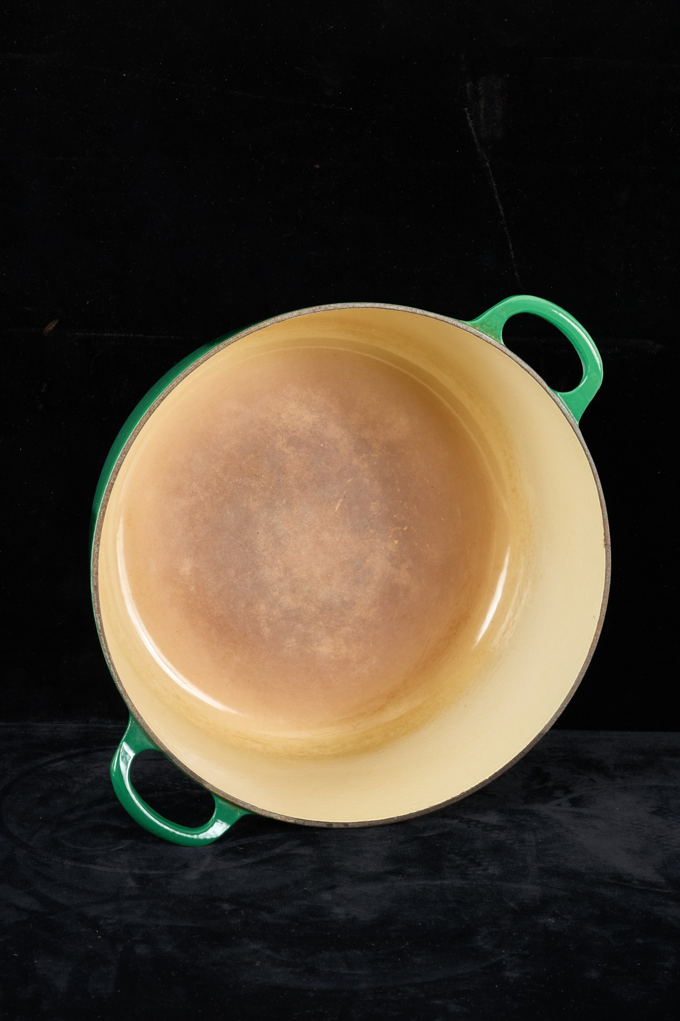Notes: Some staining to bottom of pot, finish inconsistencies to lid