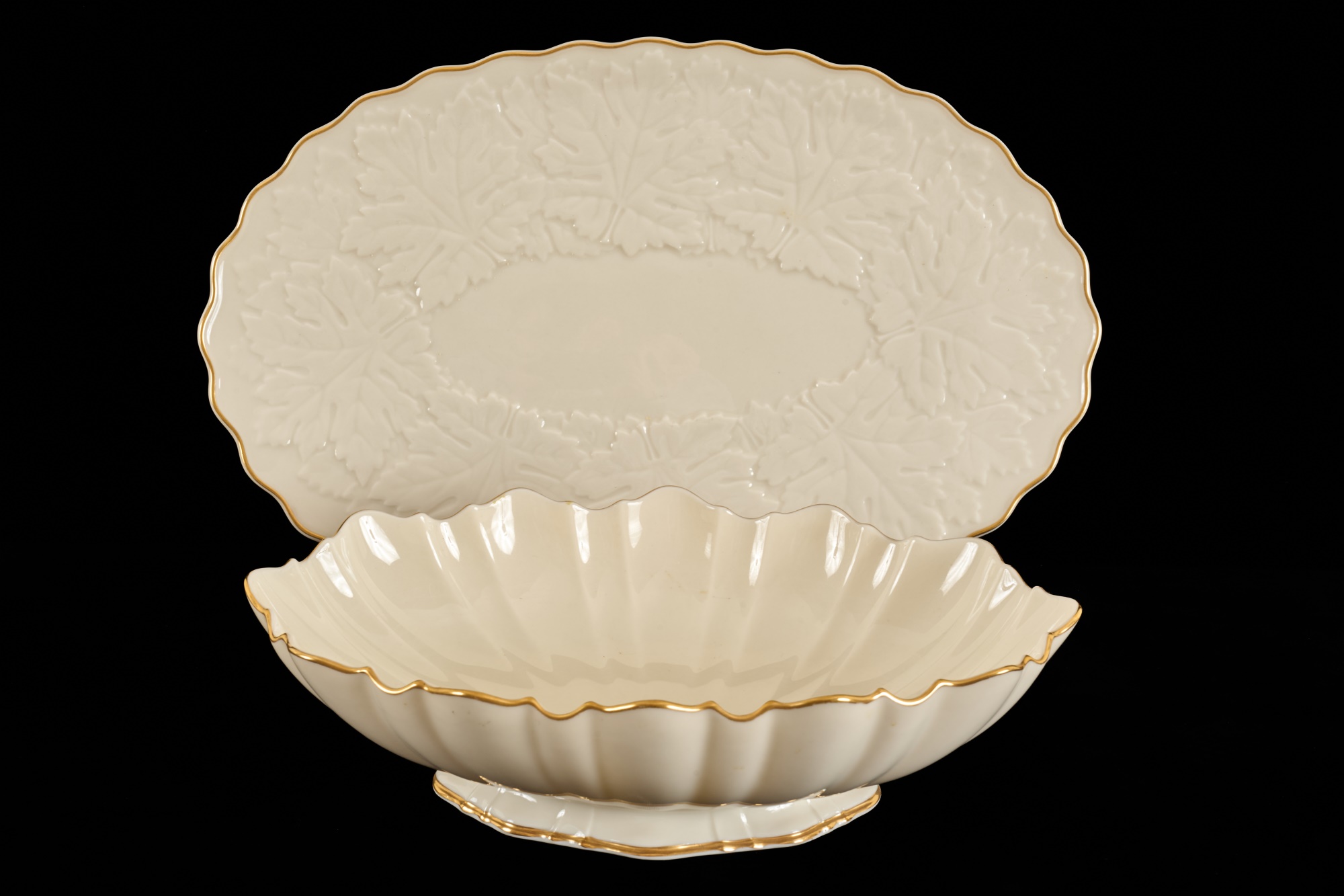 Tray has a raised leaf motif. 11 and 13.5 inches Condition: Good
