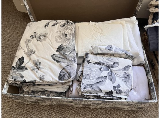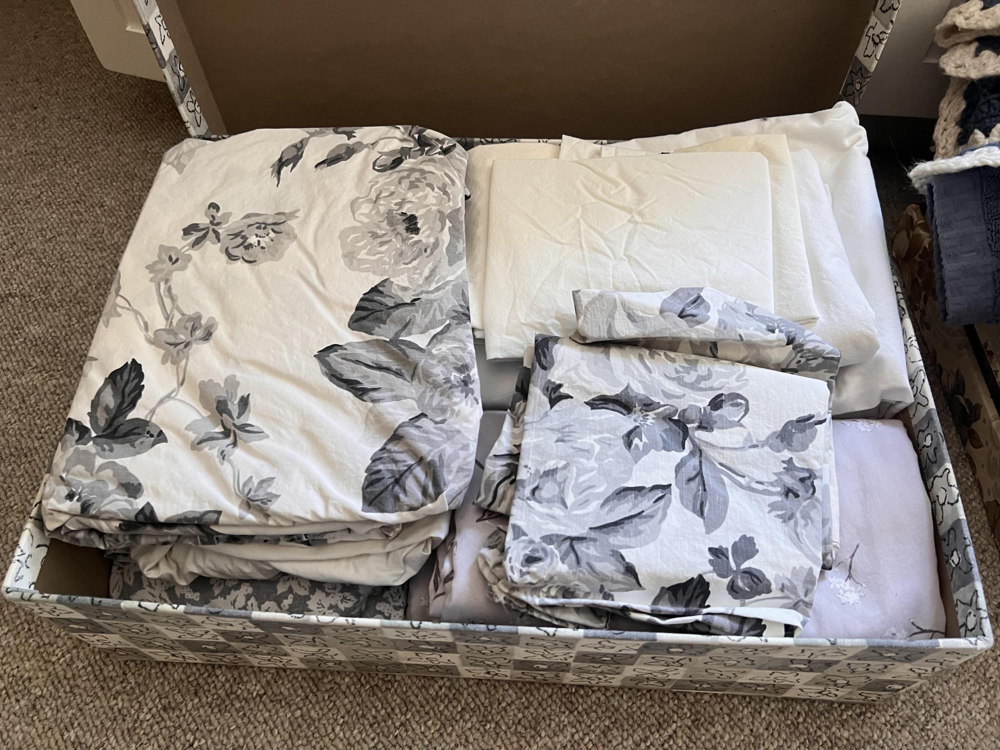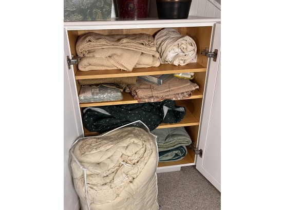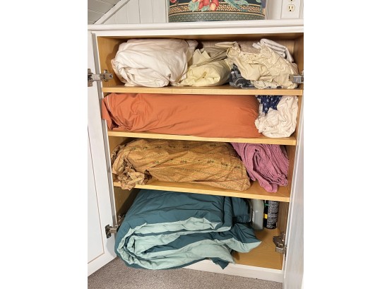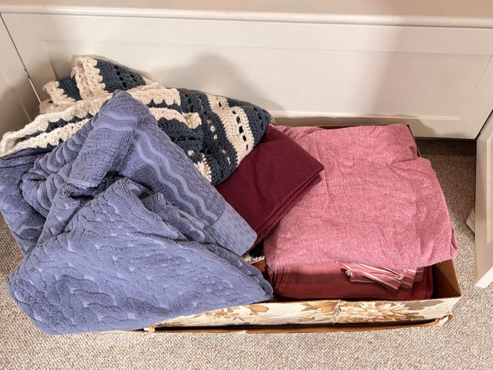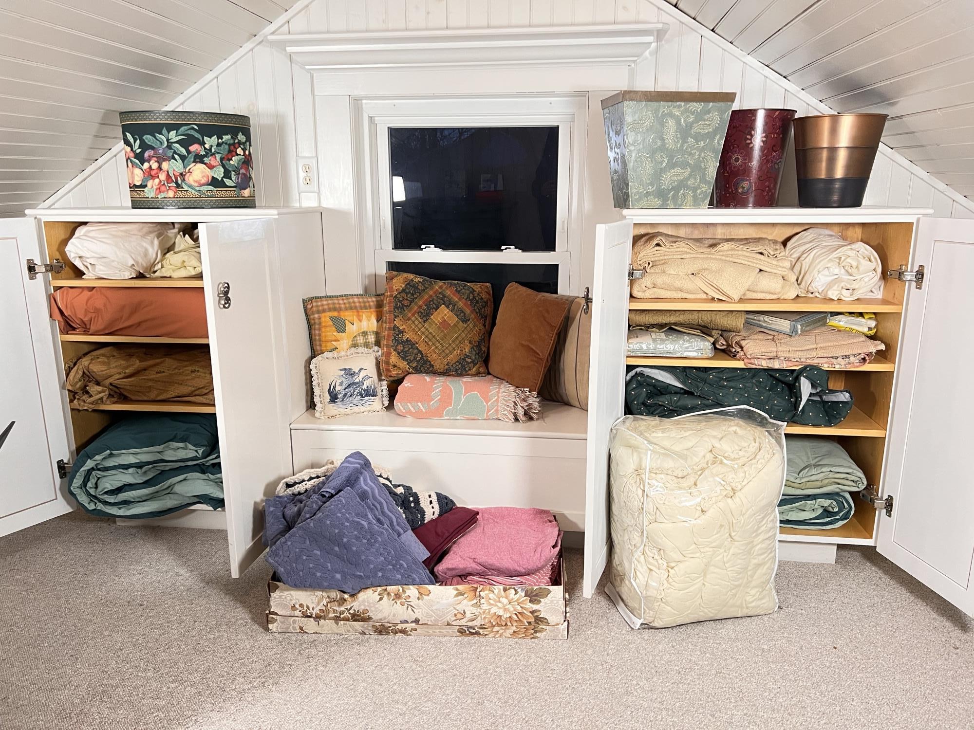 Includes pillows, sheets, comforters, wastebaskets and towels. They appear to be mostly twin and full Condition: Good used condition
