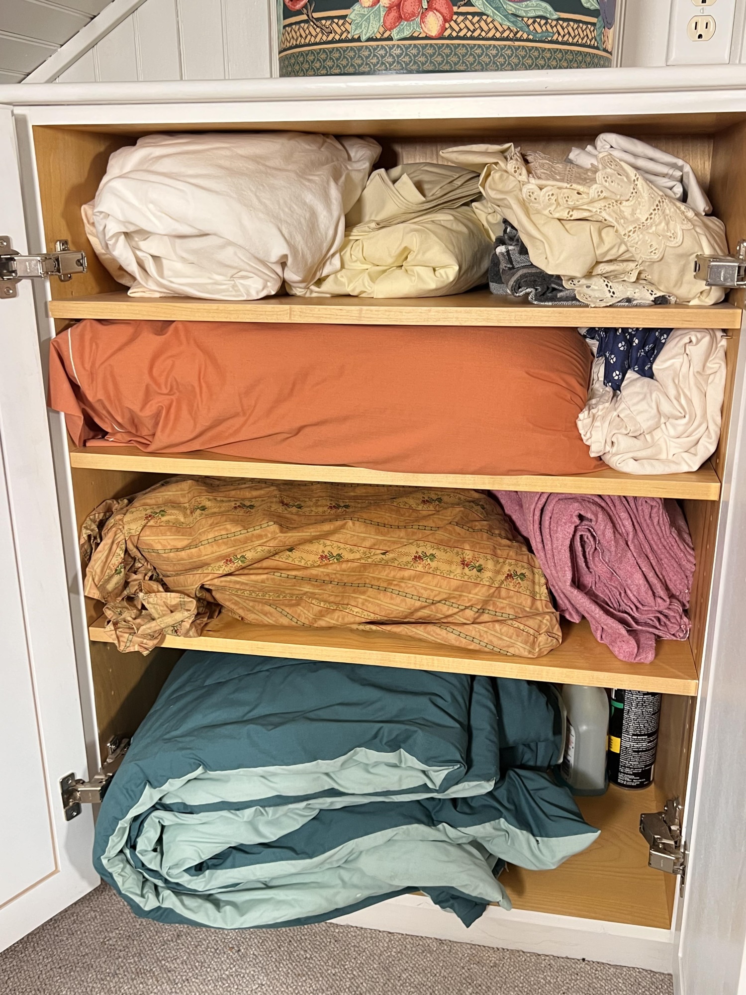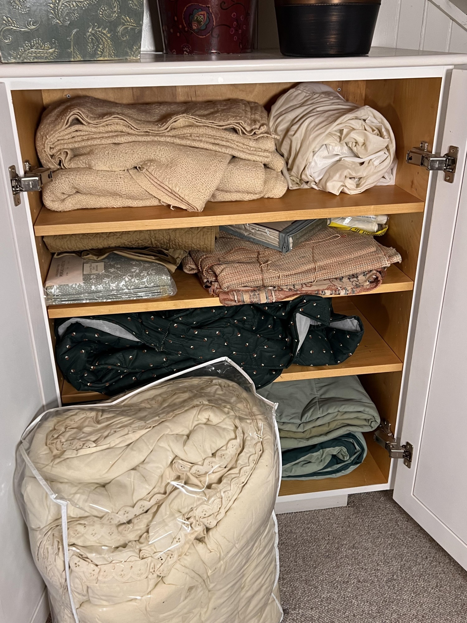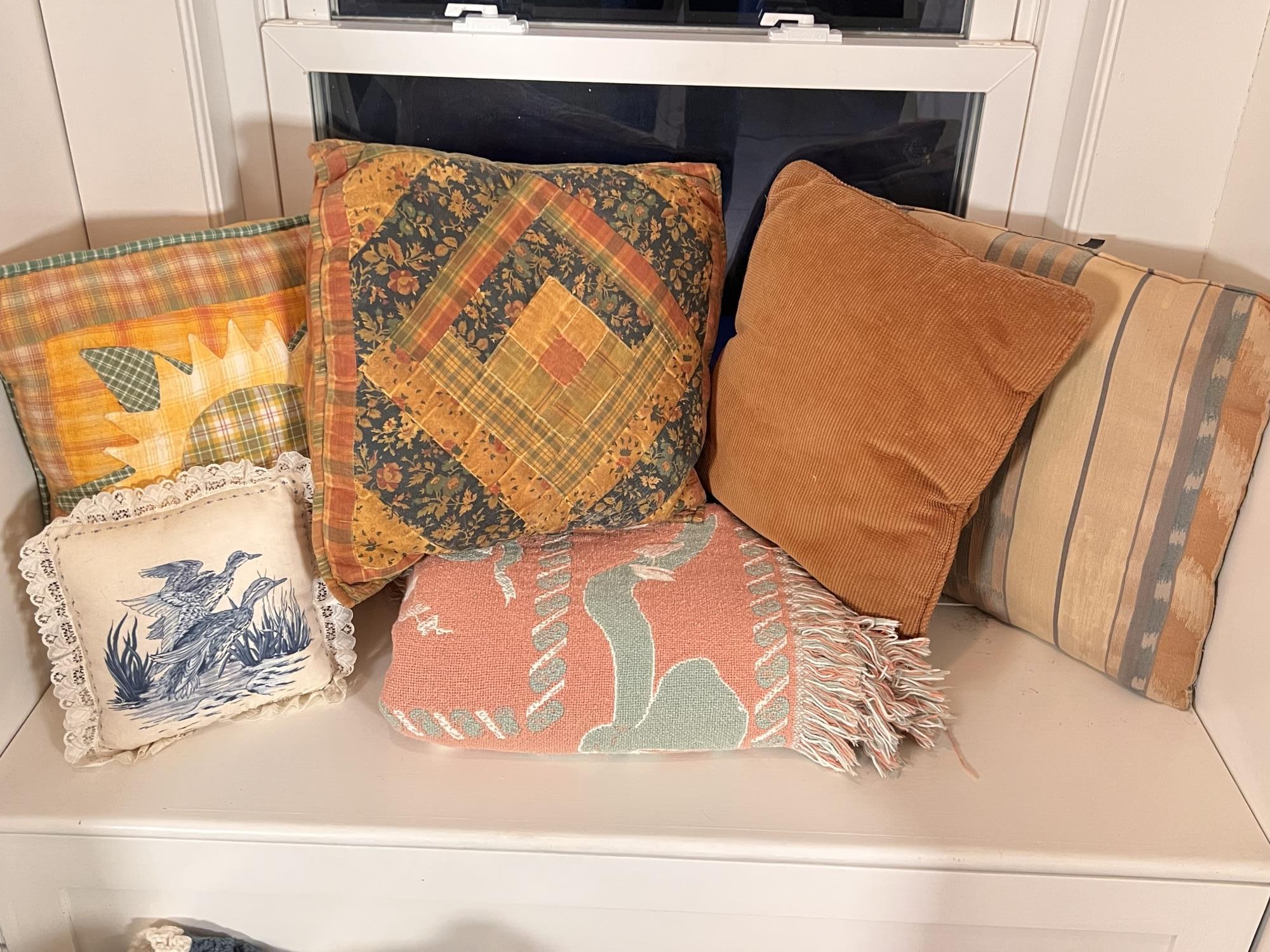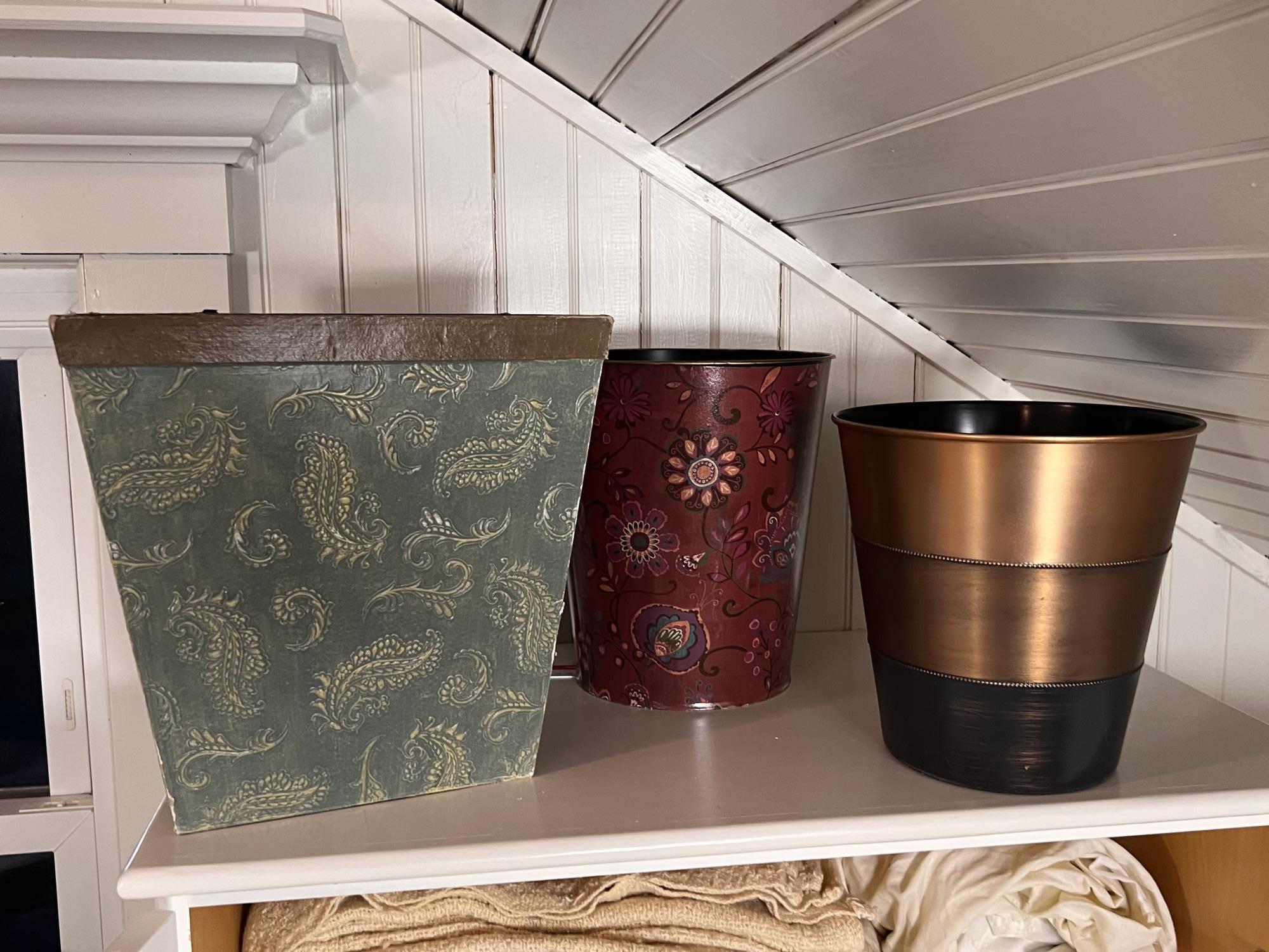 Includes pillows, sheets, comforters, wastebaskets and towels. They appear to be mostly twin and full Condition: Good used condition