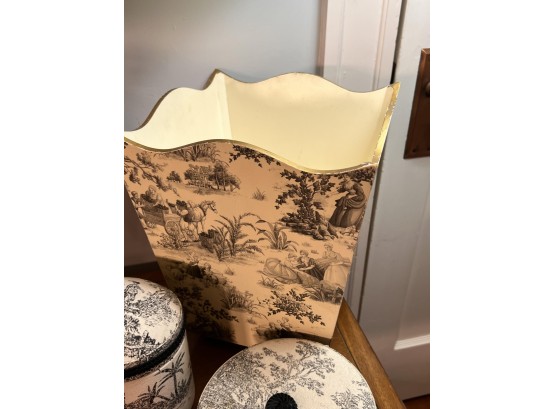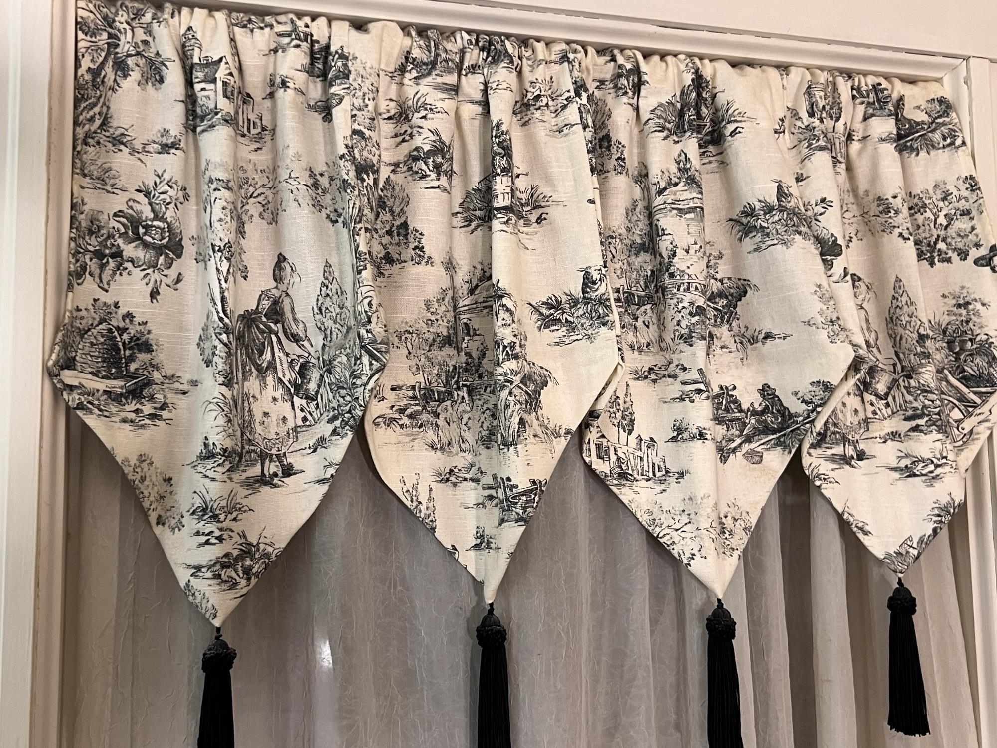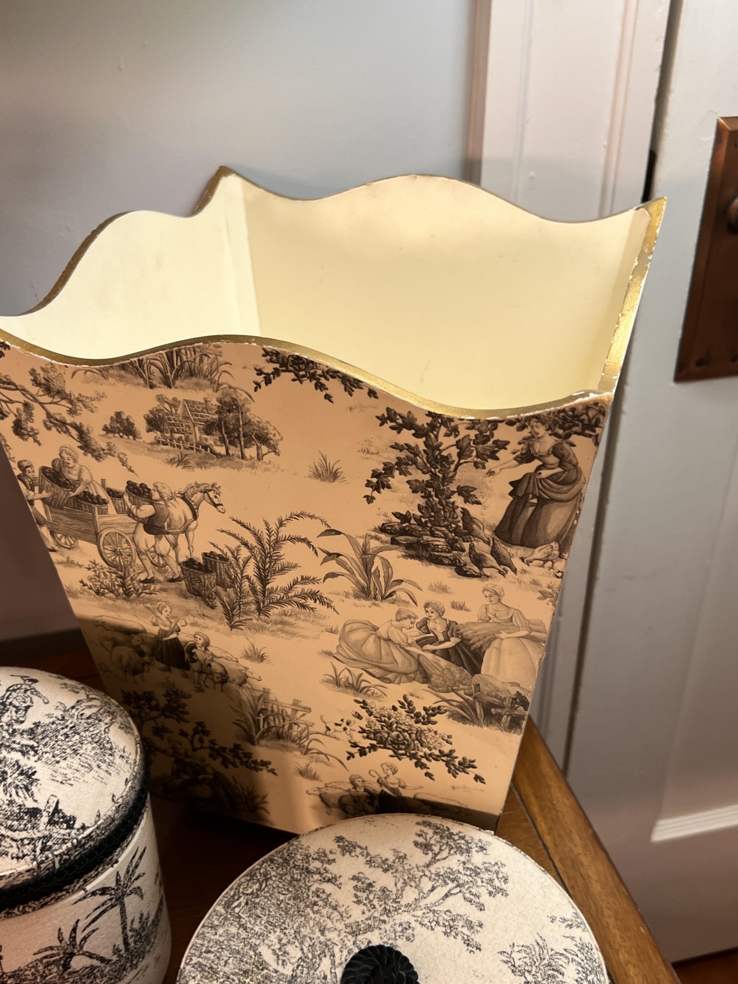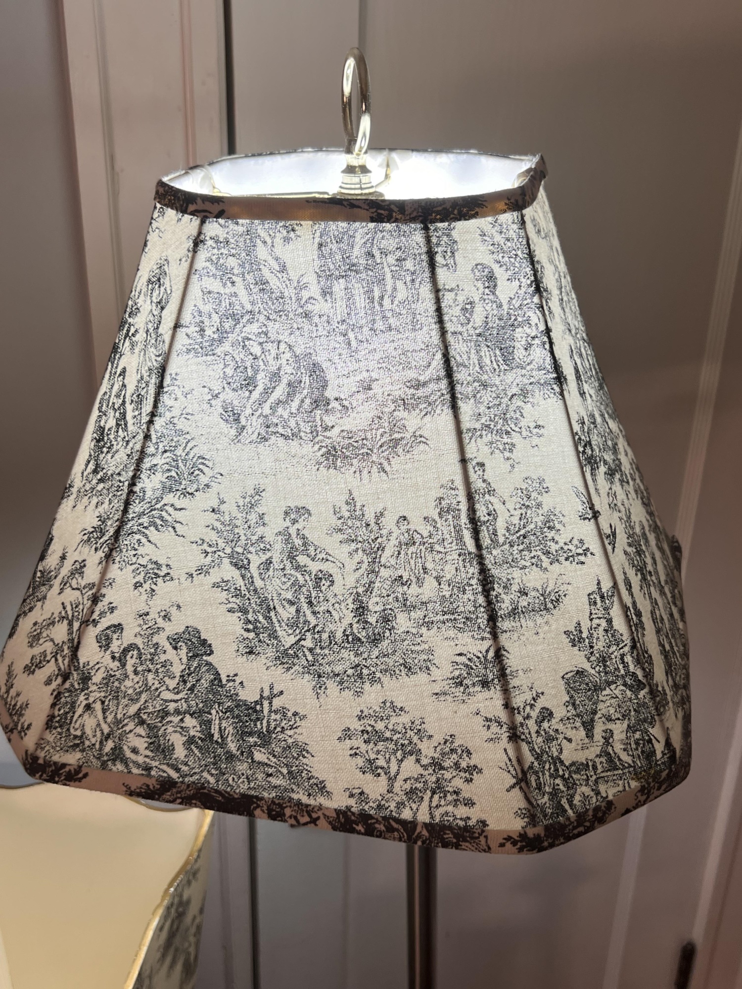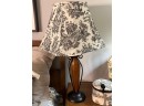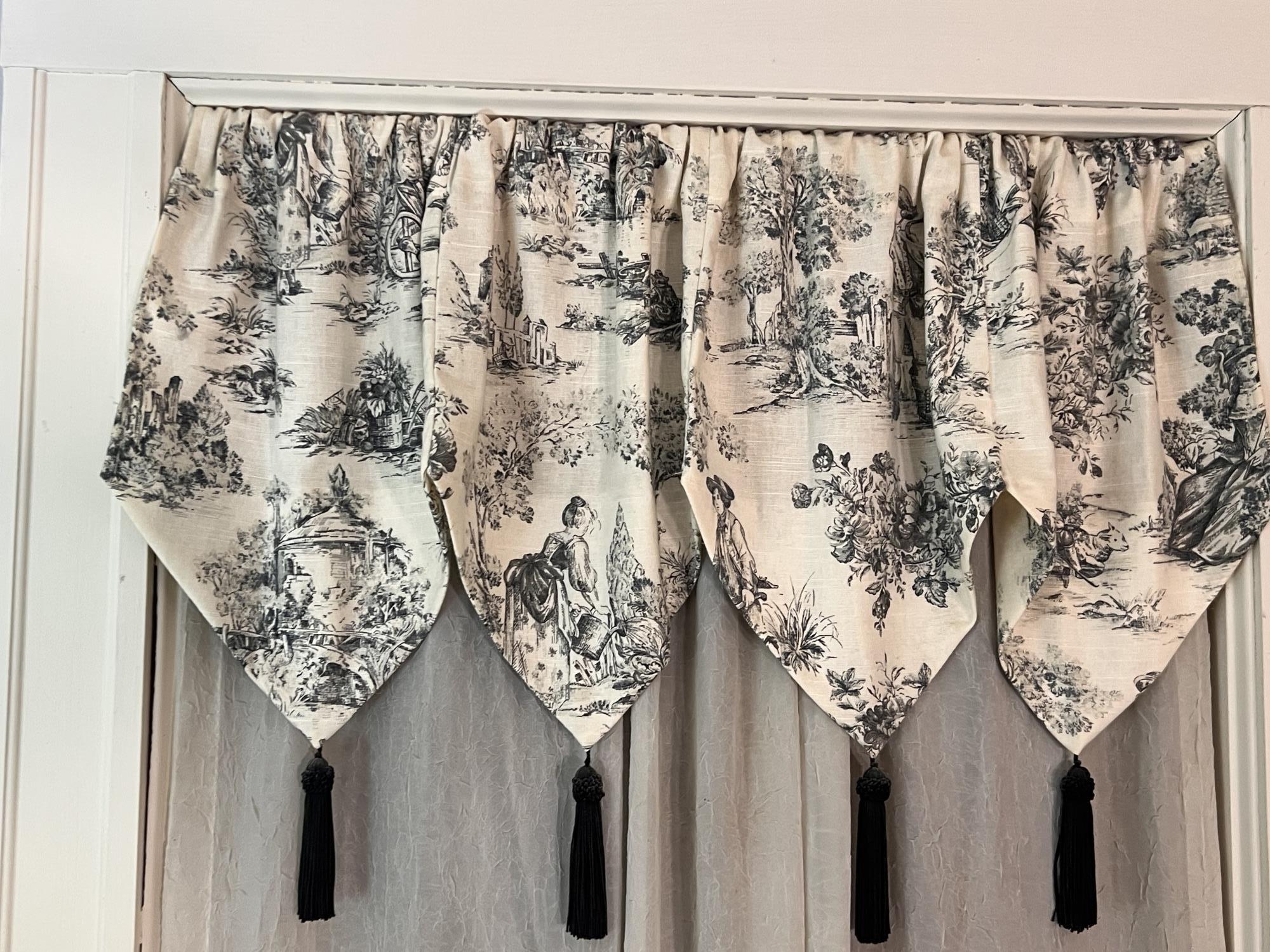 Including floor lamp, basket, (2) covered boxes and 2 valances. Tallest lamp 58 inches Condition: Good used condition