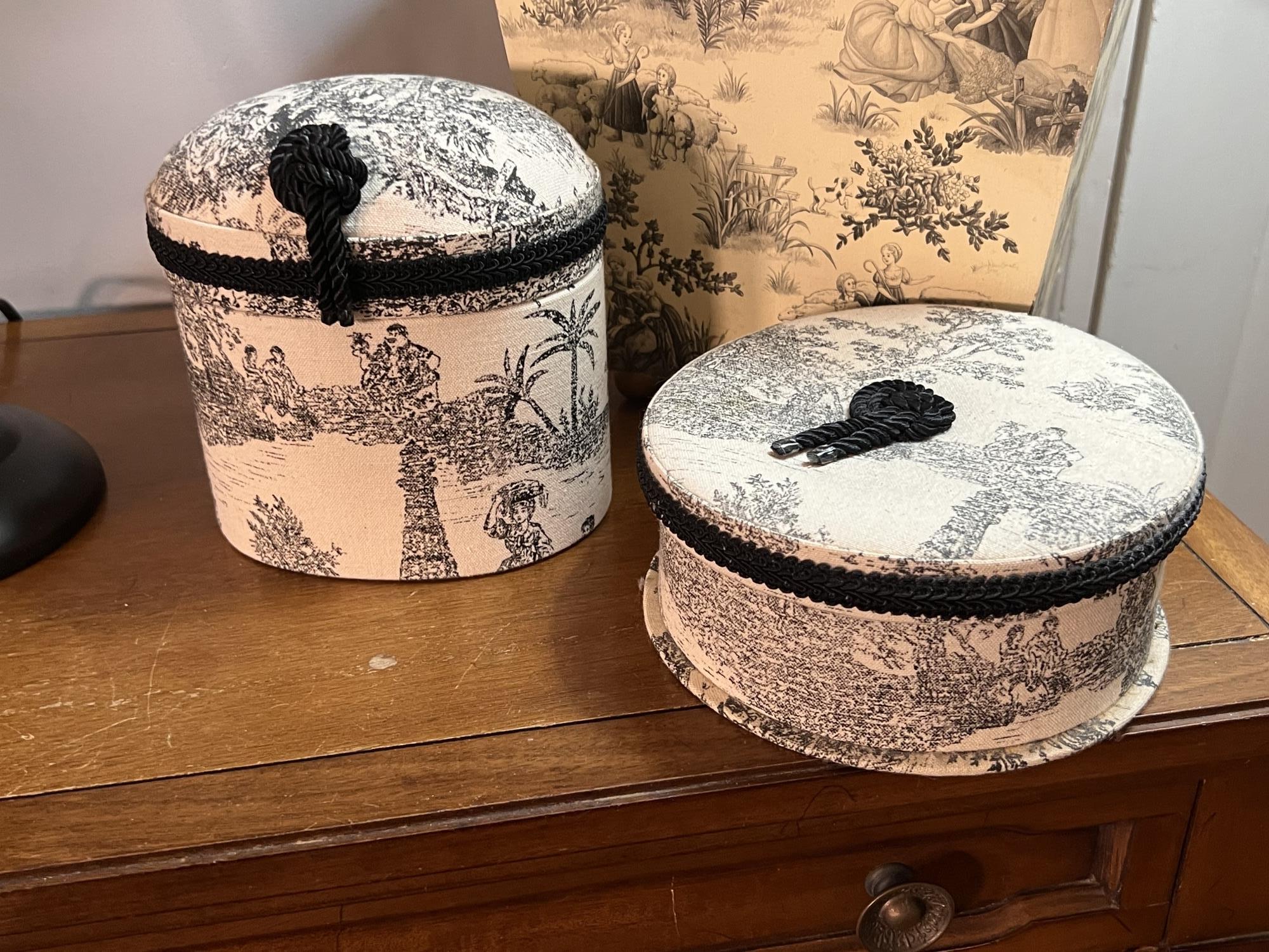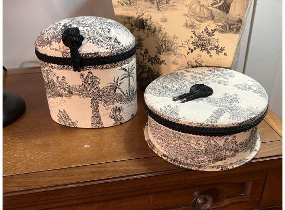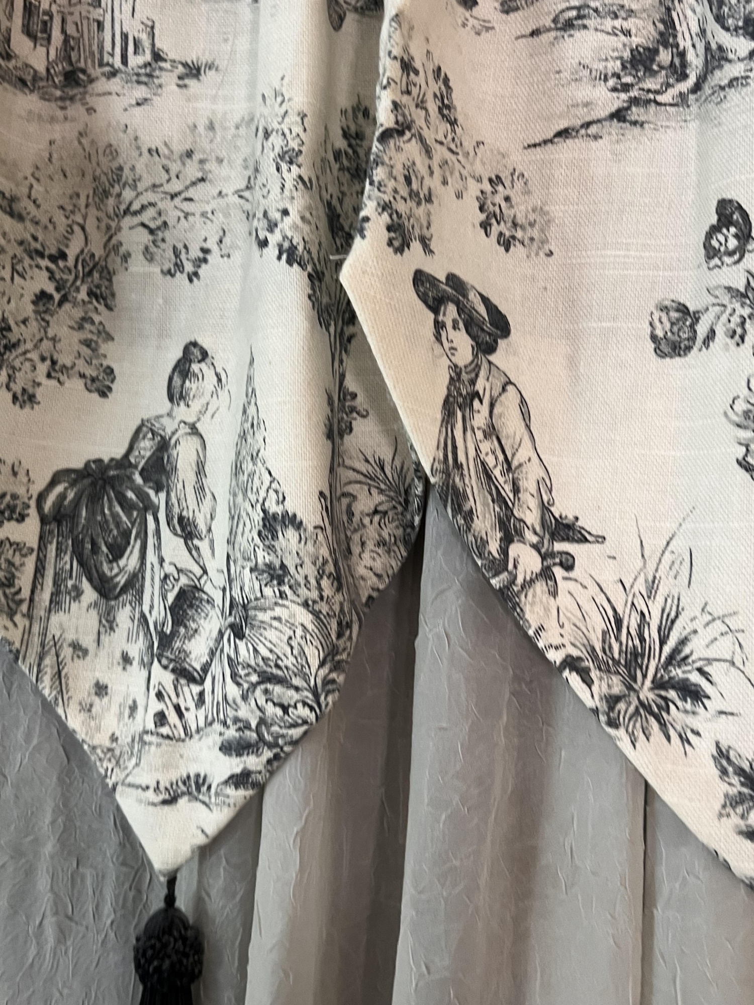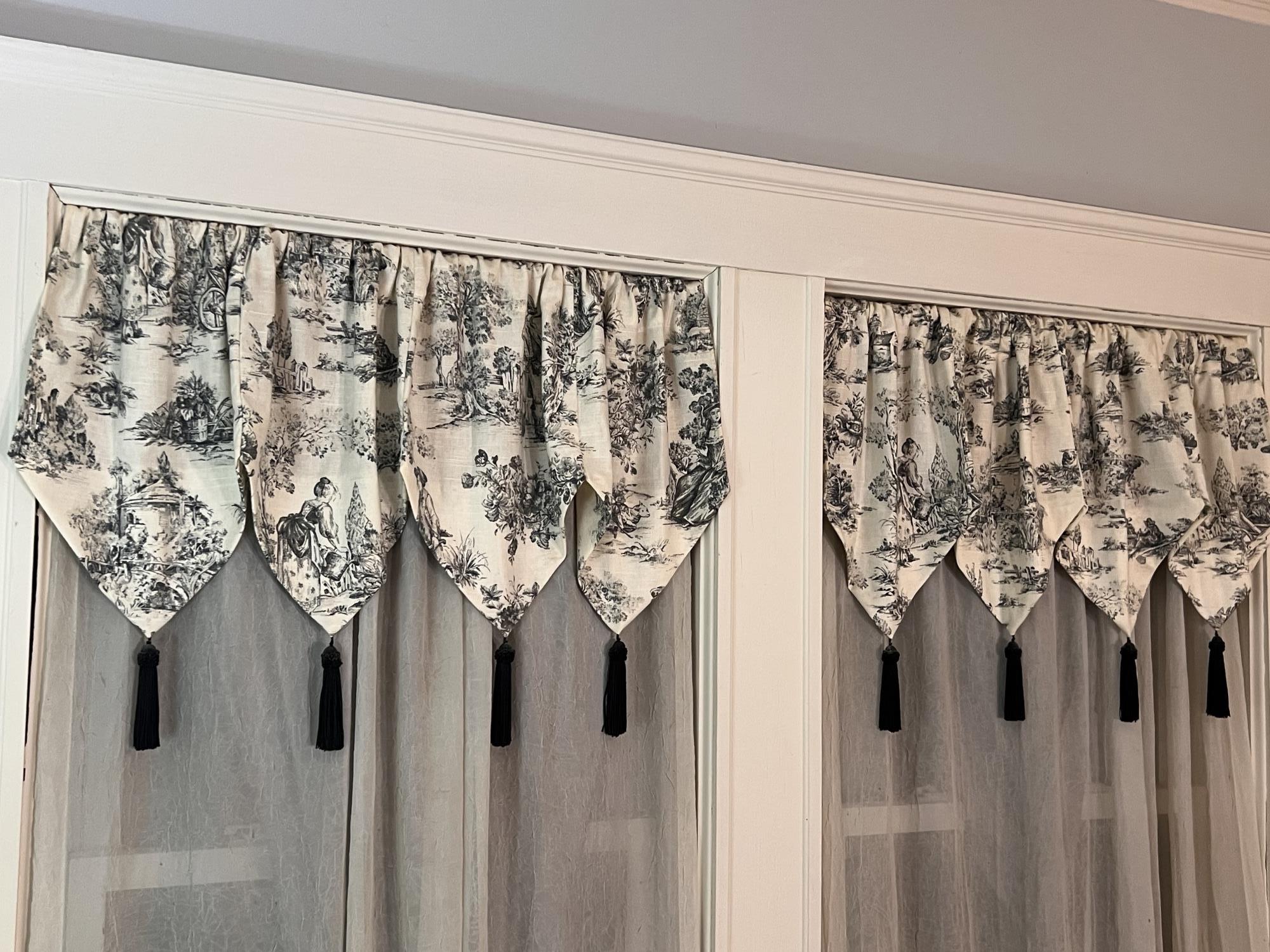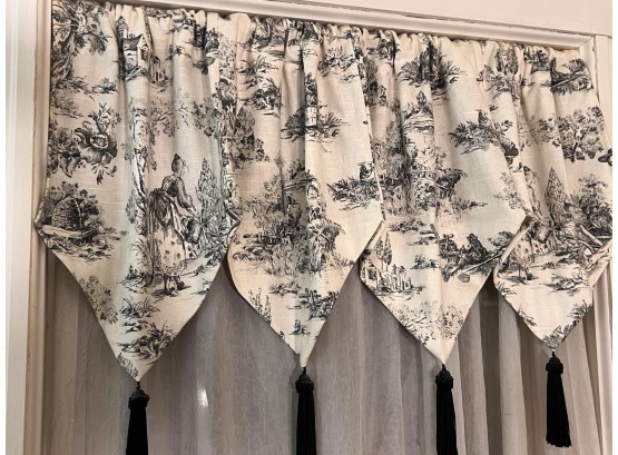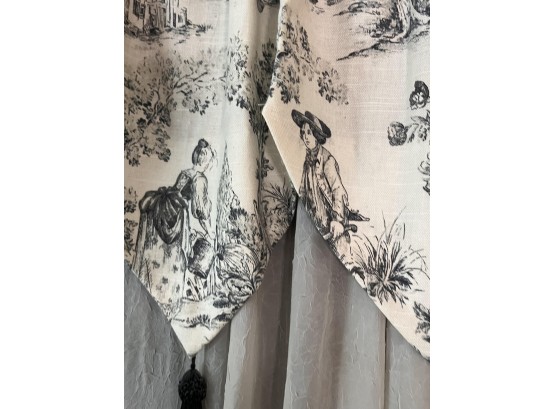 Including floor lamp, basket, (2) covered boxes and 2 valances. Tallest lamp 58 inches Condition: Good used condition