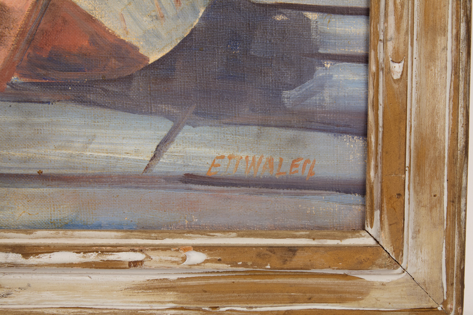 Oil on canvas 30 x 34 inches (overall including frame. Signed E.M. Walen Condition: Good Temp No 6162