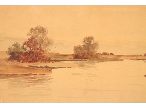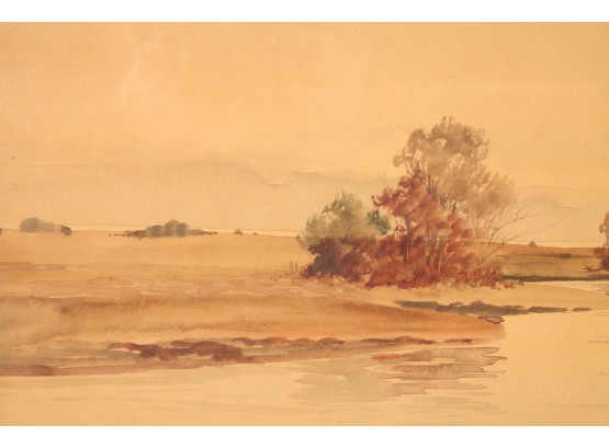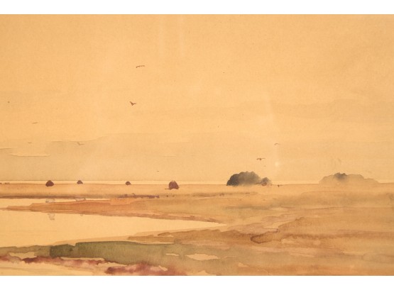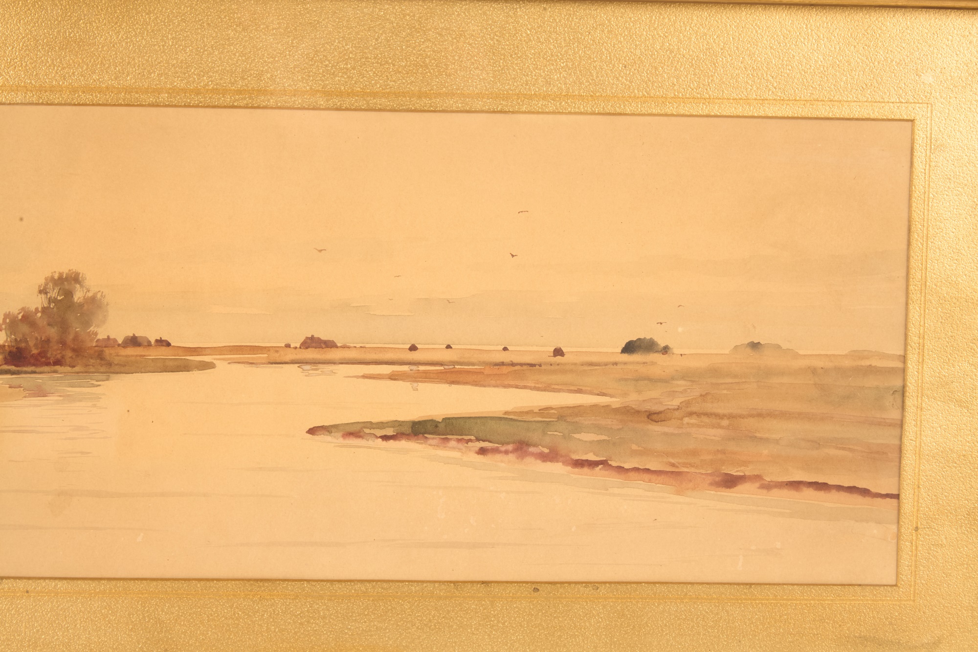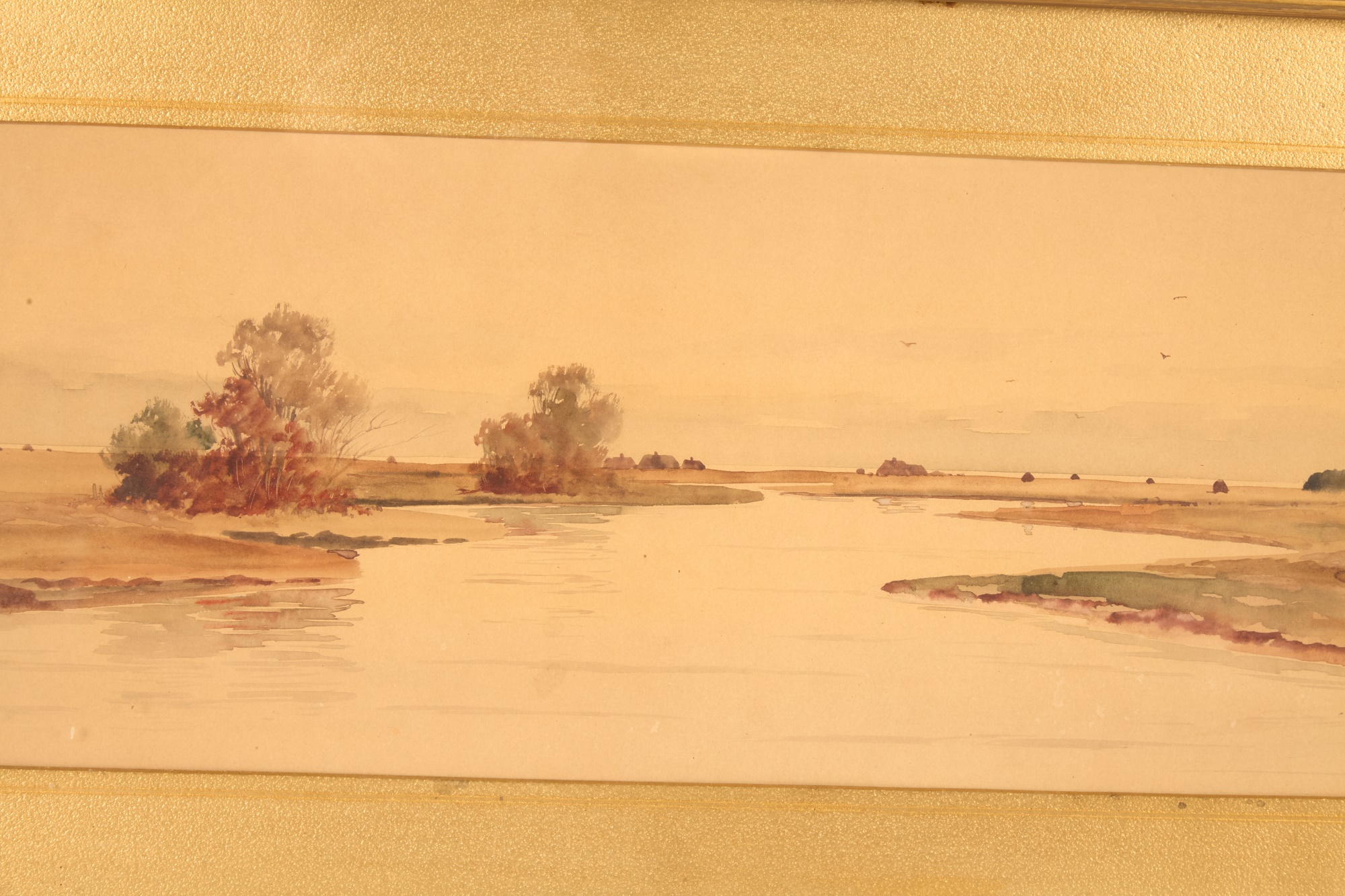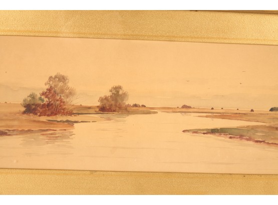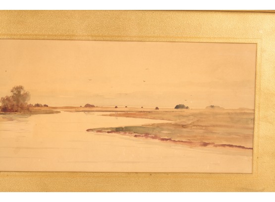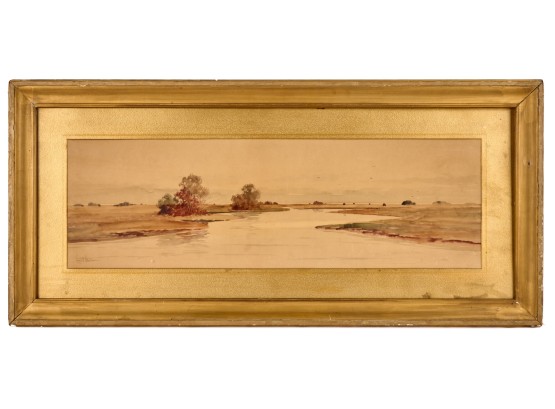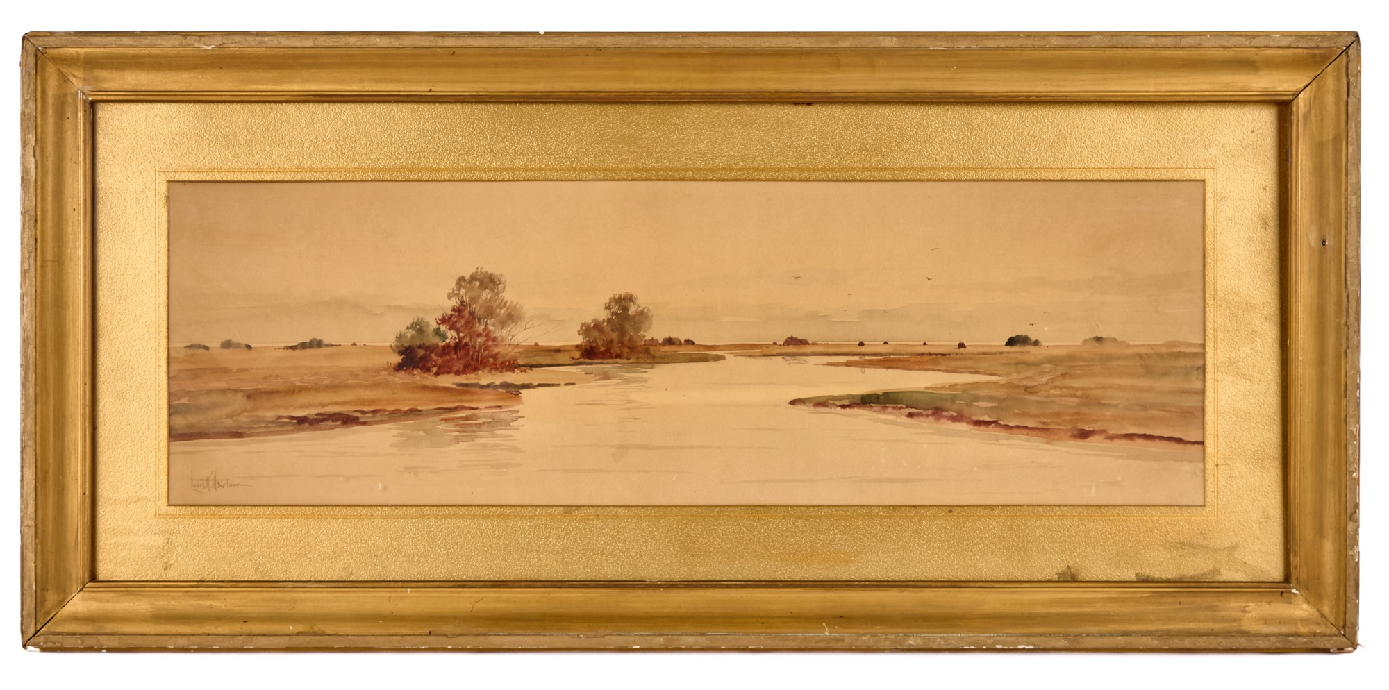 High Tide on a Marshy Inlet / Possibly Plum Island on the Horizon 17.5 x 38 inches (overall) Condition: Toning Temp No 6123