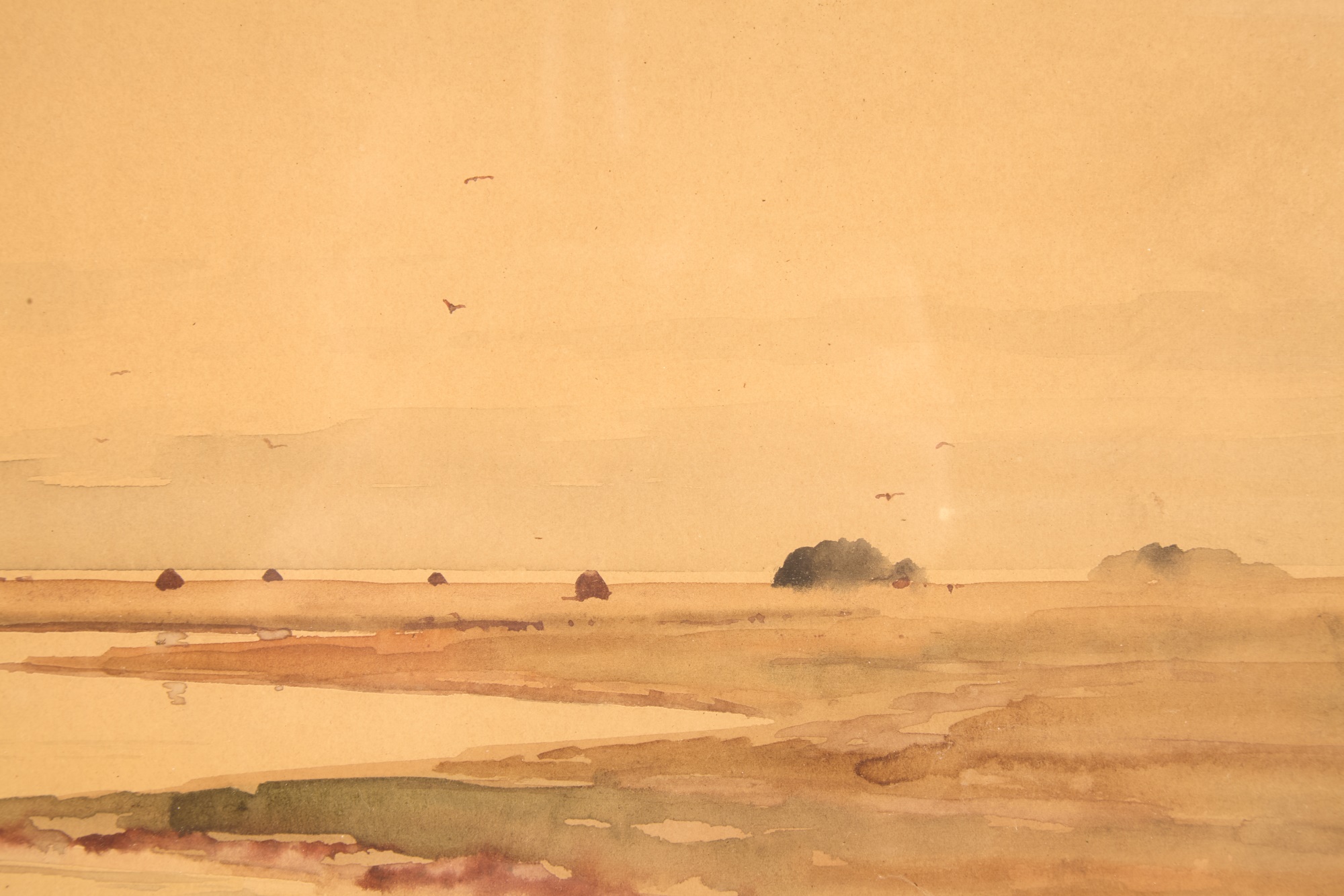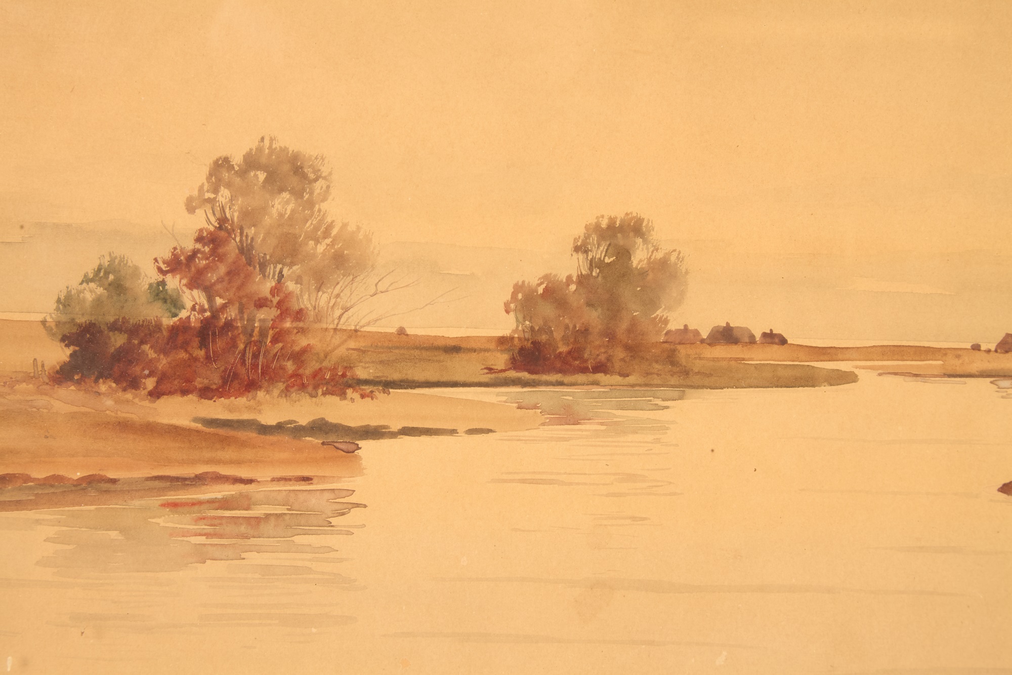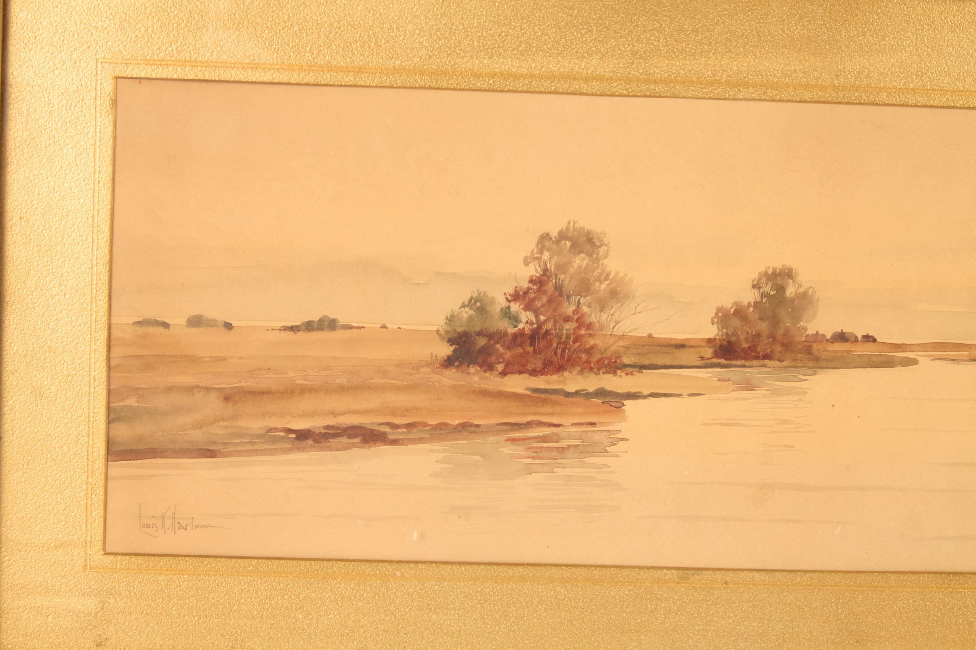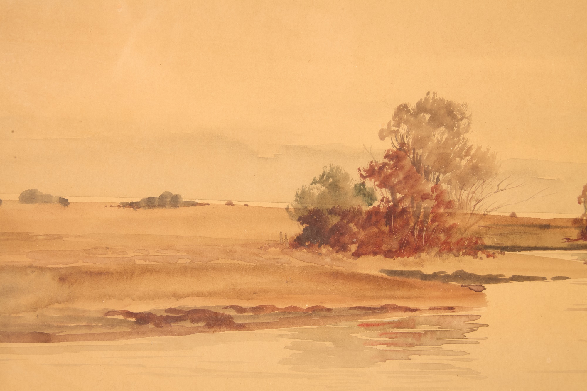 High Tide on a Marshy Inlet / Possibly Plum Island on the Horizon 17.5 x 38 inches (overall) Condition: Toning Temp No 6123