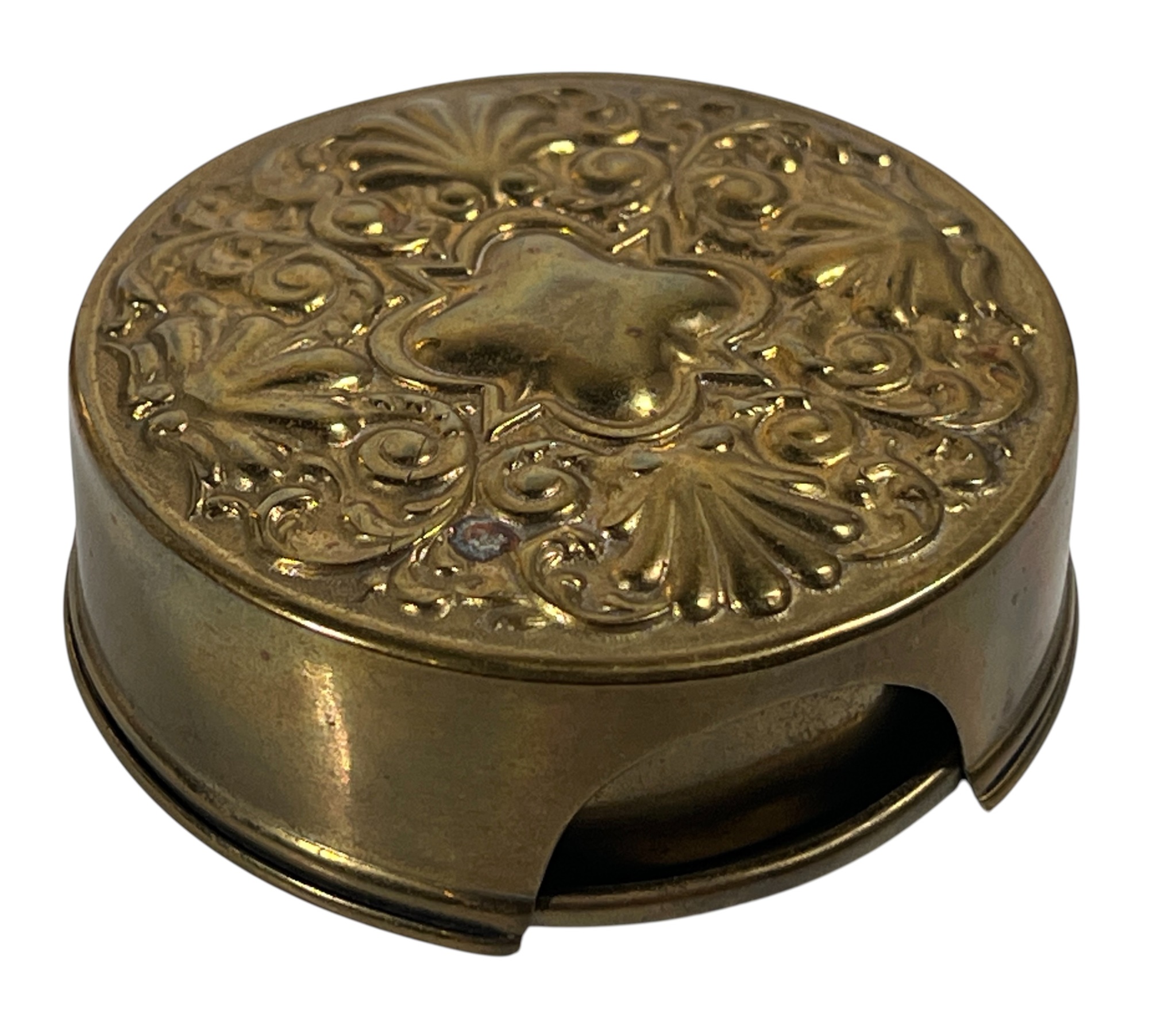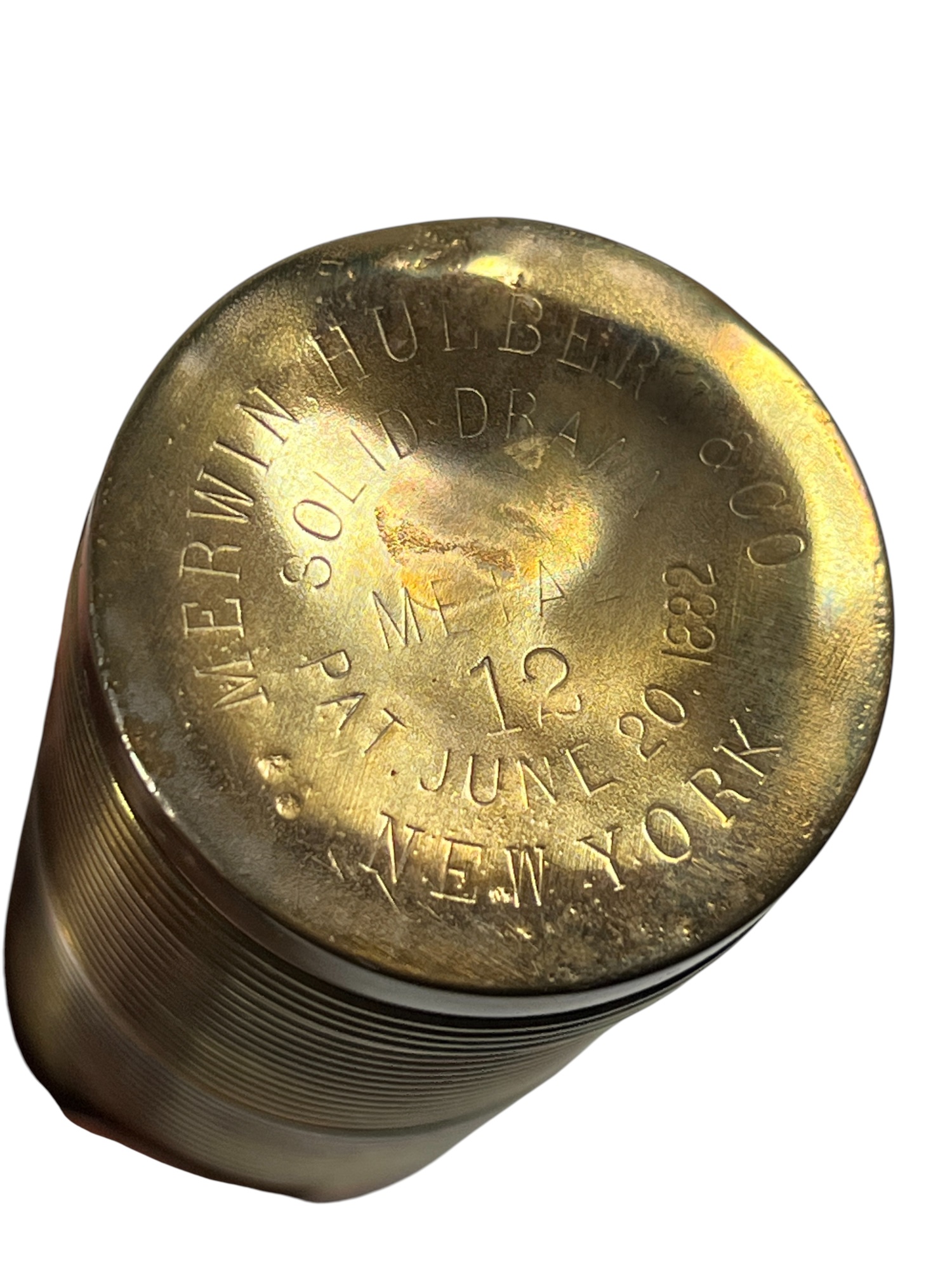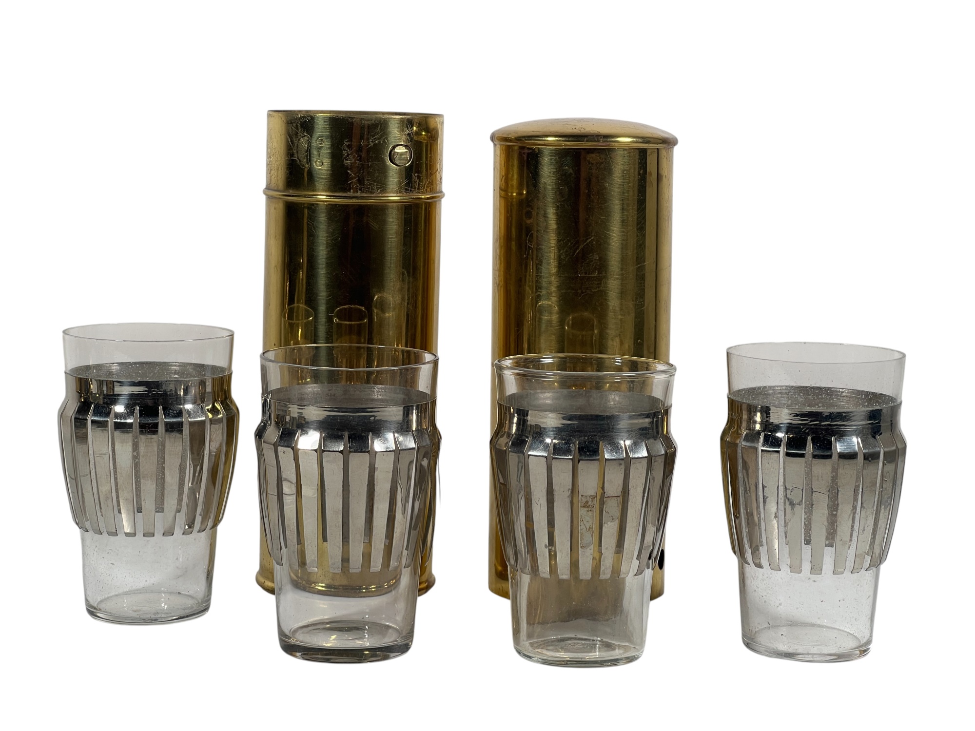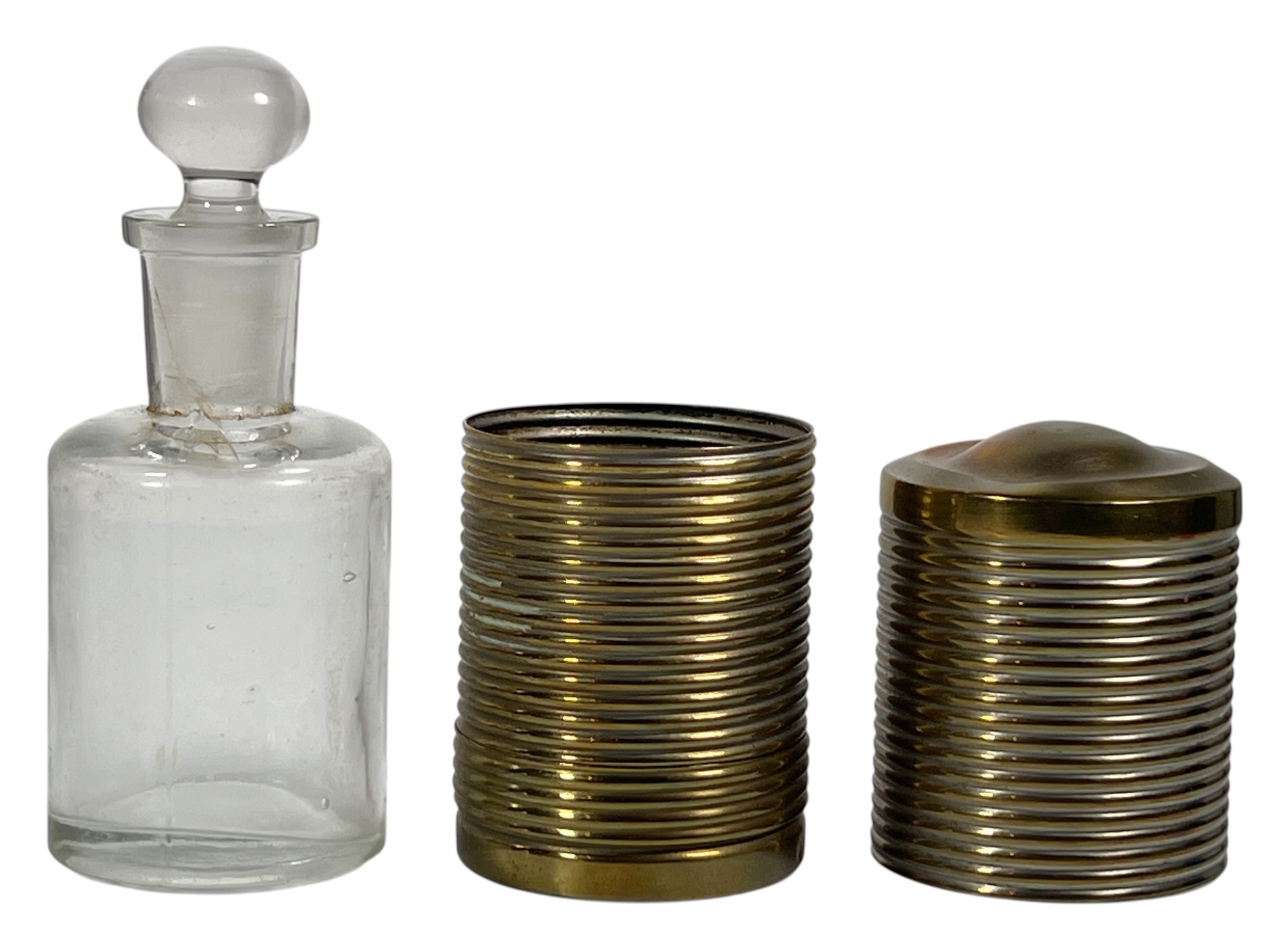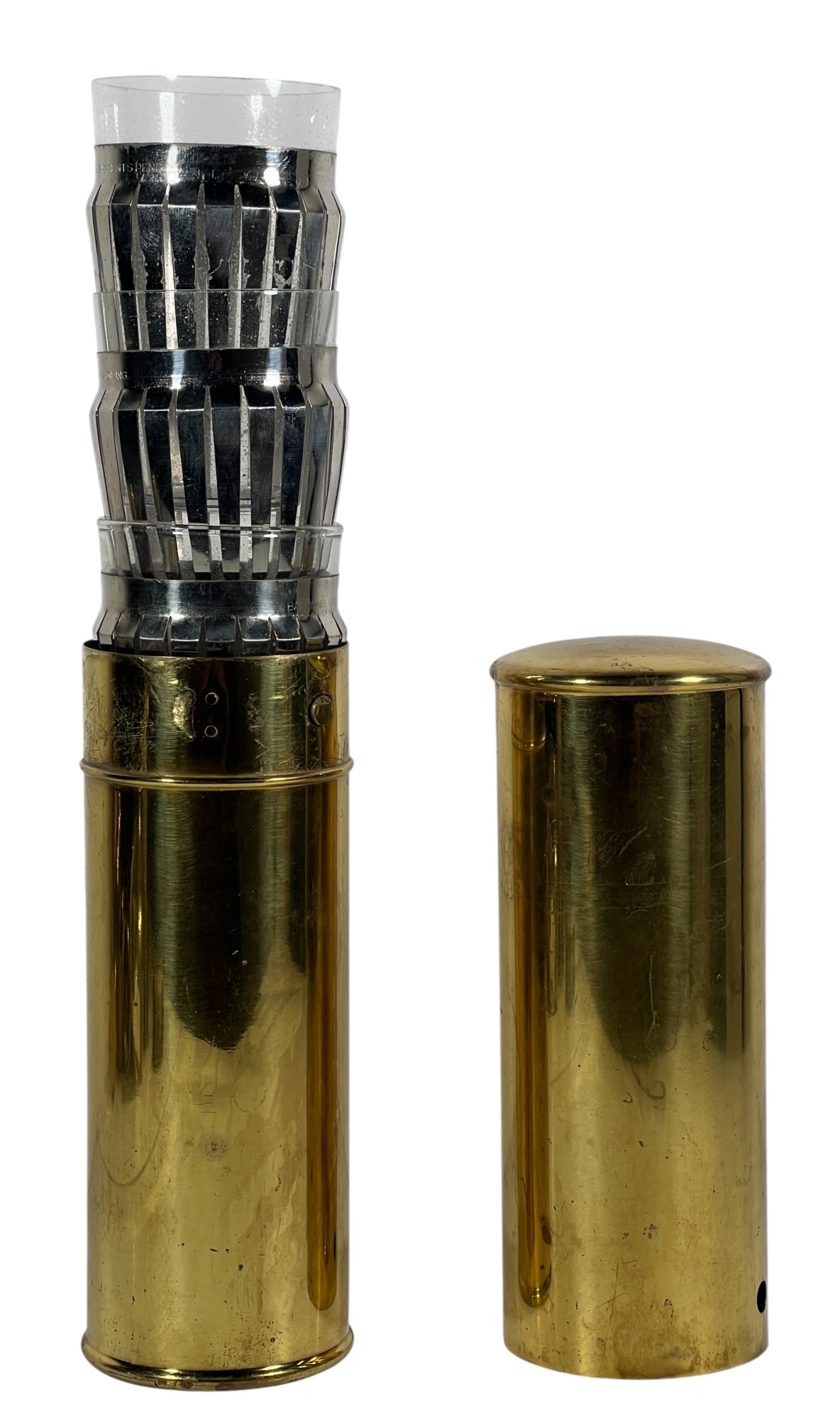 Manning Bowman Co. Art Deco brass & nickel insulated carafe no. 415F. Along with a brass humidor. 7 inches. Condition: Good. Temp No 8618