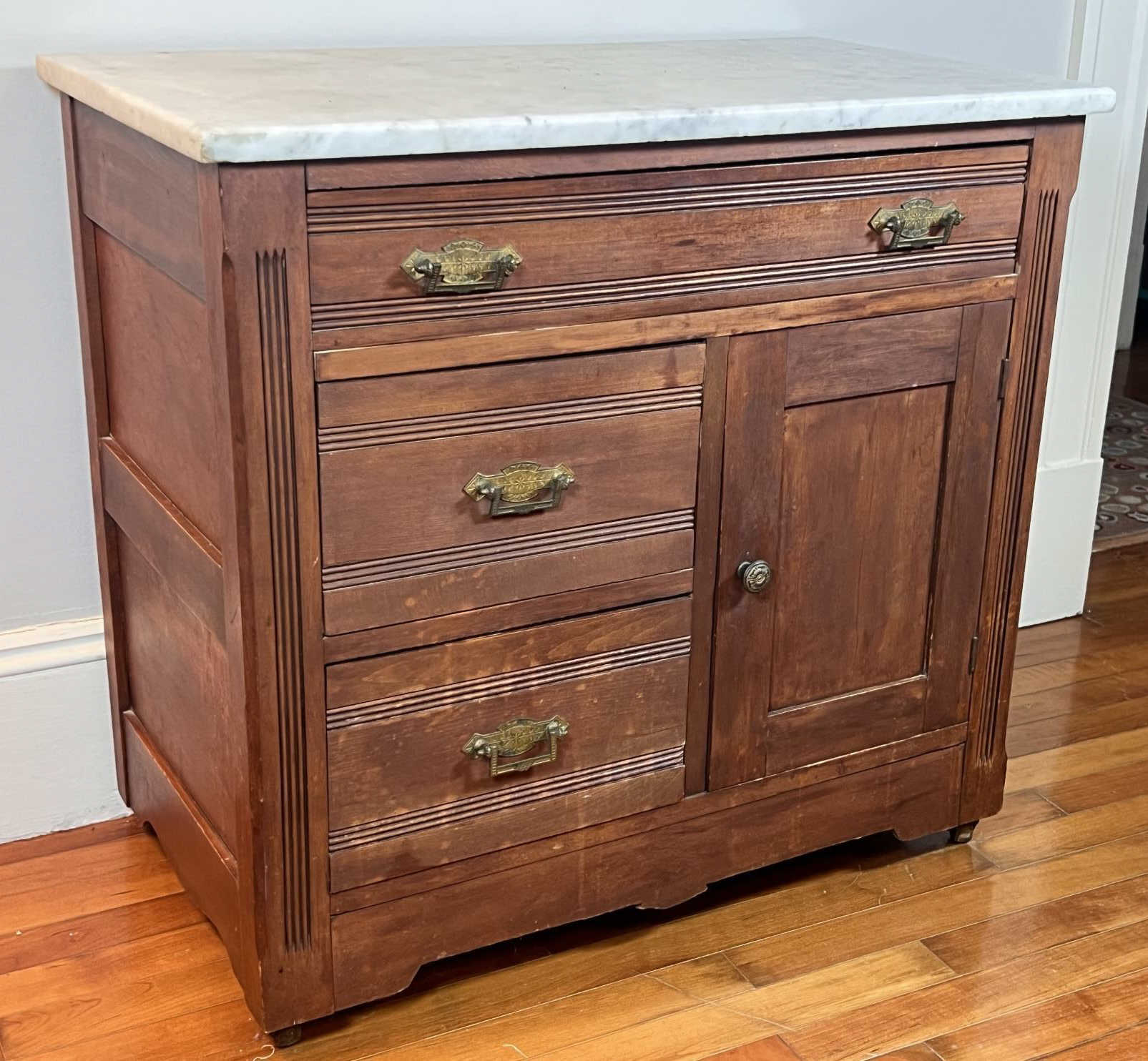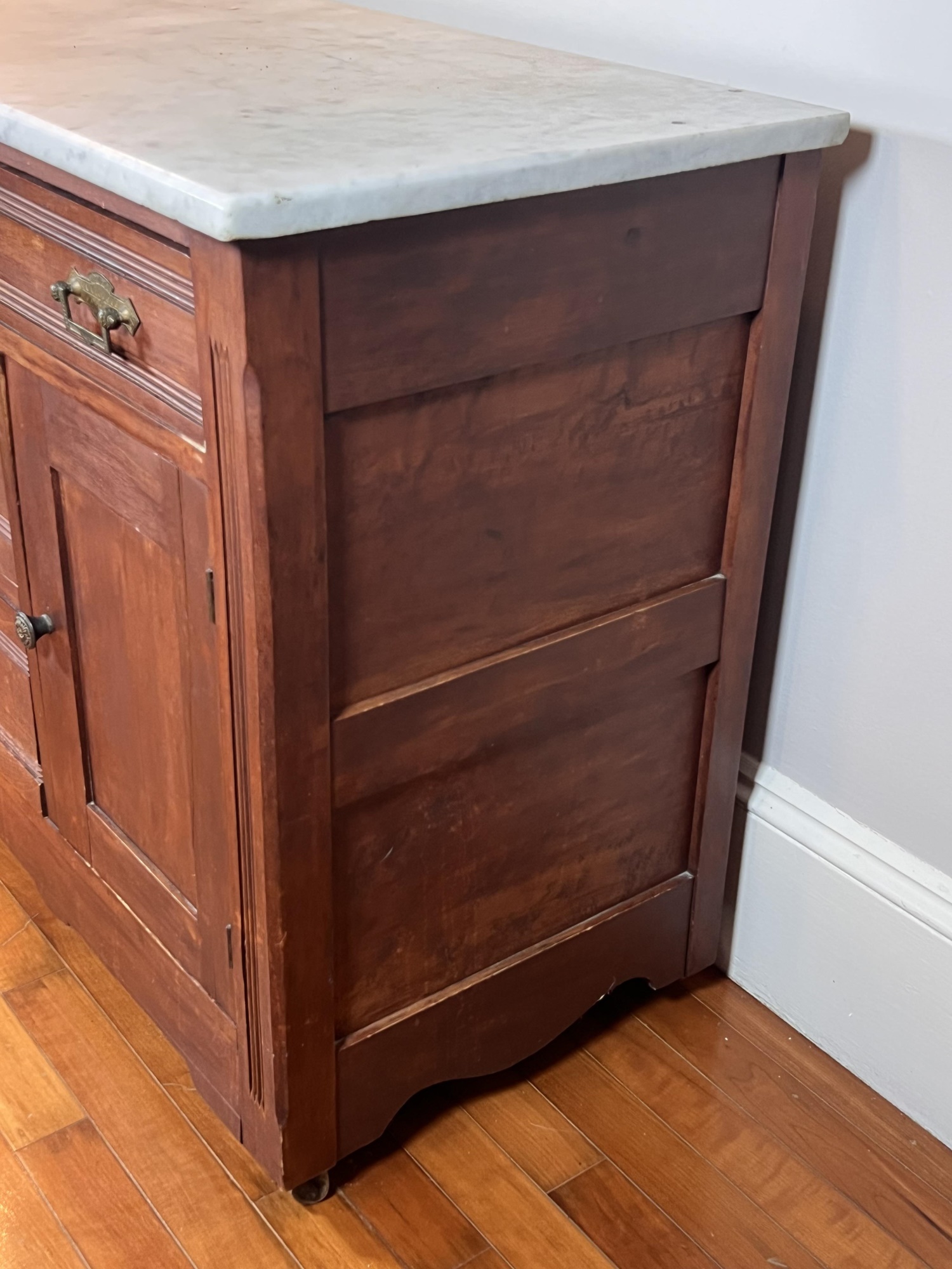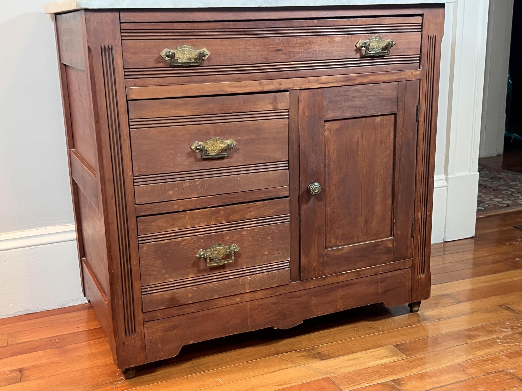 On casters. 27 1/2 x29 x 17 inches Condition: Wear to finish, see photos