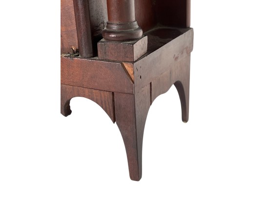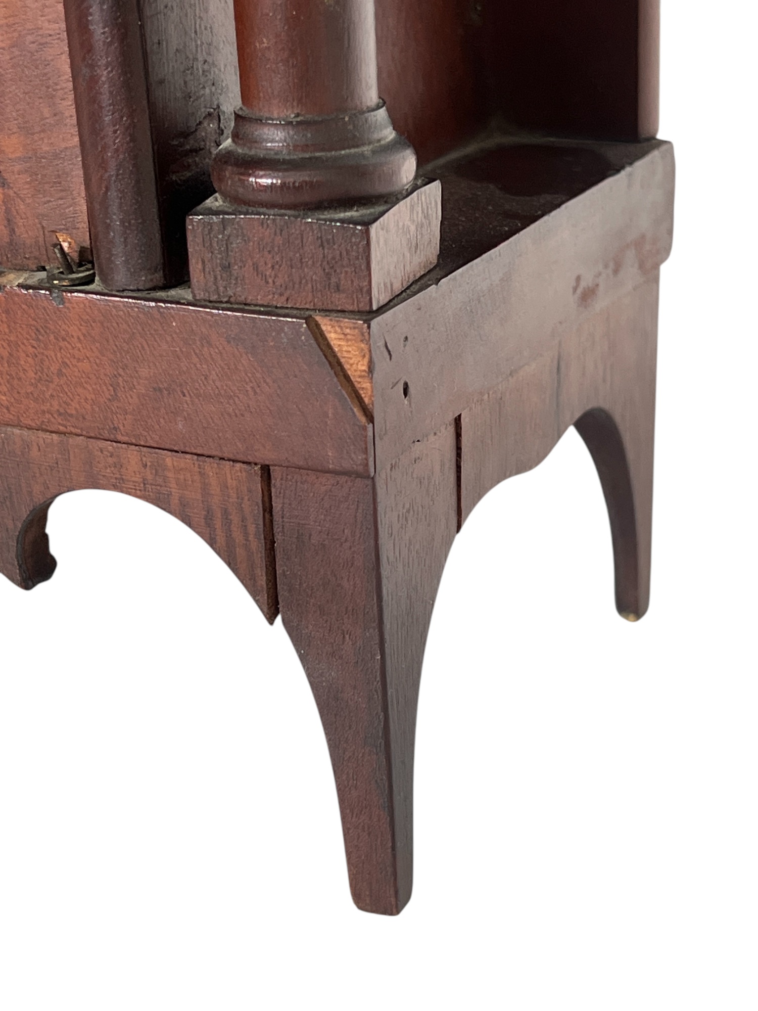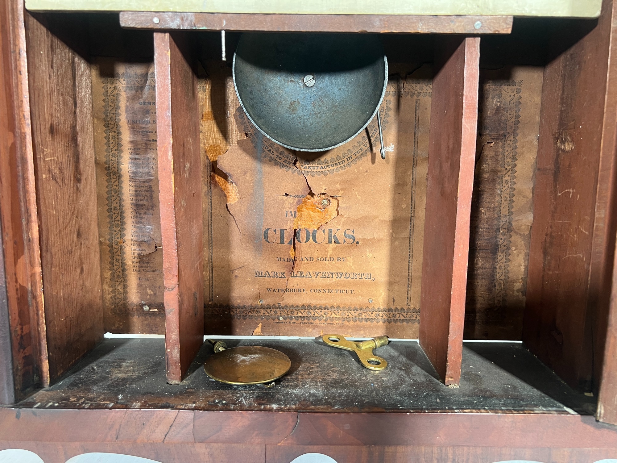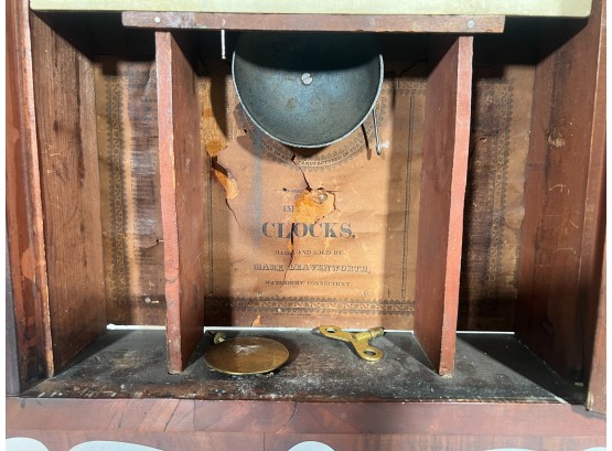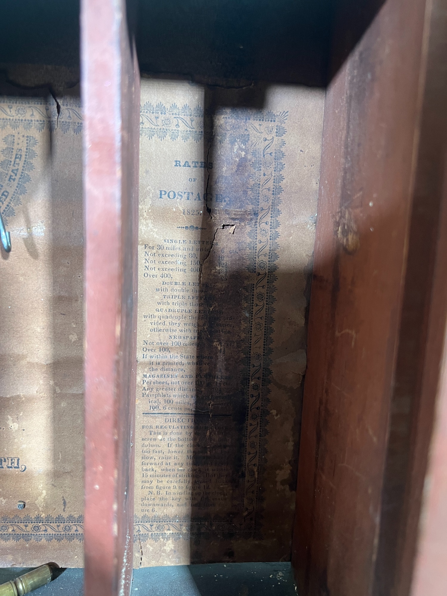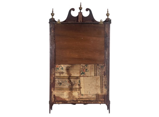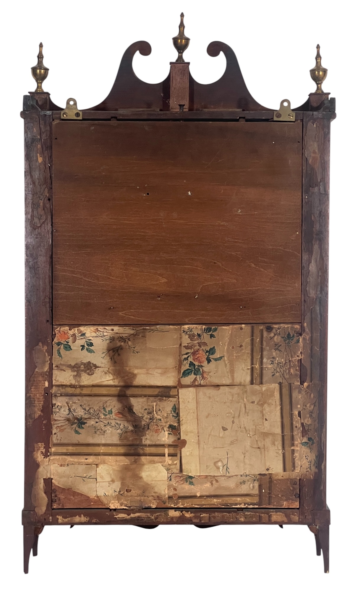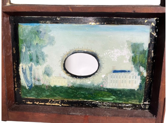 Mahogany case, hand painted & gilt dial with floral spandrels, reverse glass painted eglomise tablet. 30 x 16 1/2 x 4 1/2 inches. Condition: Scattered paint loss, minor loss to base. Untested.