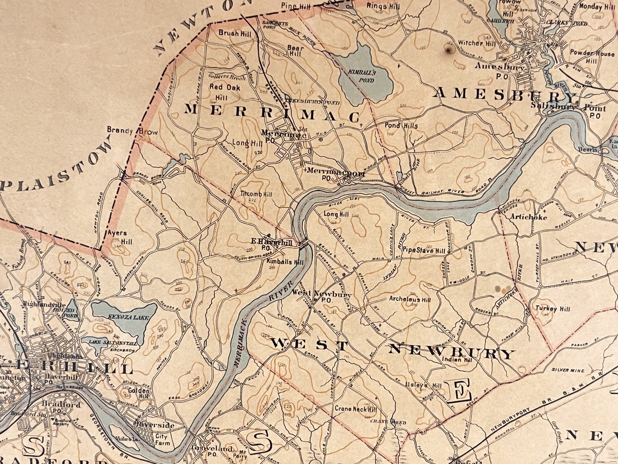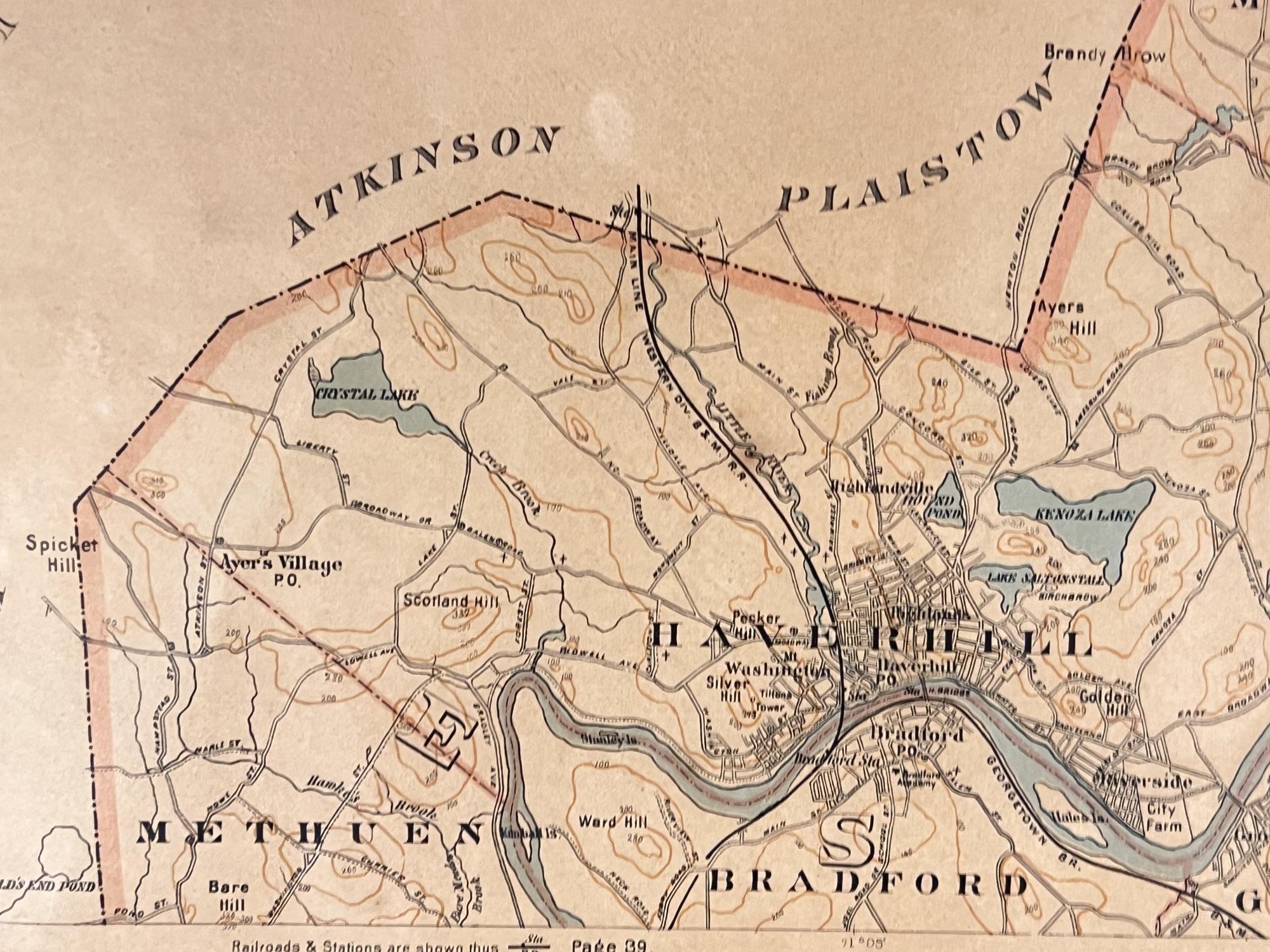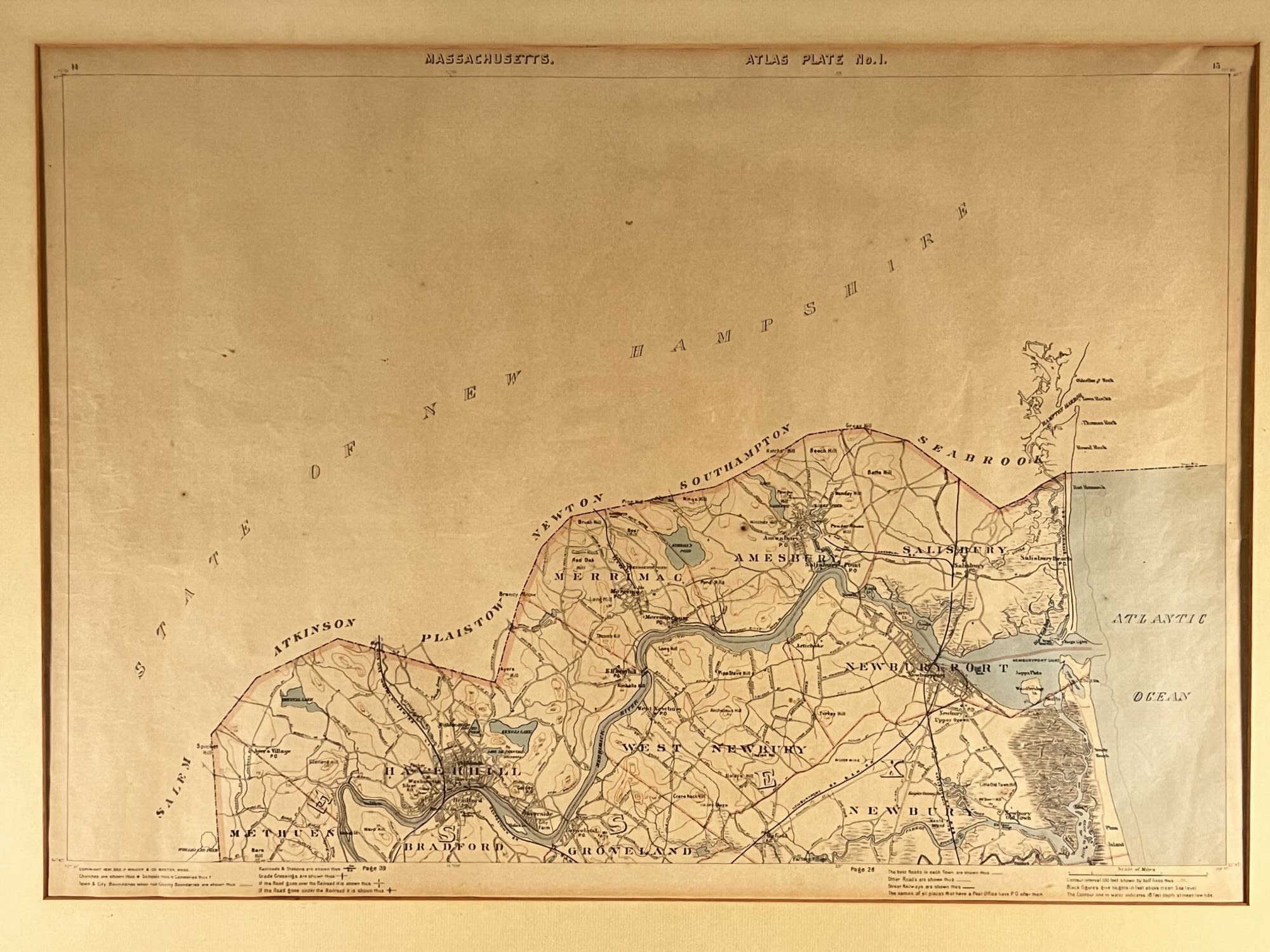 Mostly Merrimac Valley, copyright 1891. 26 x 34 1/4 inches framed Condition: Good used condition