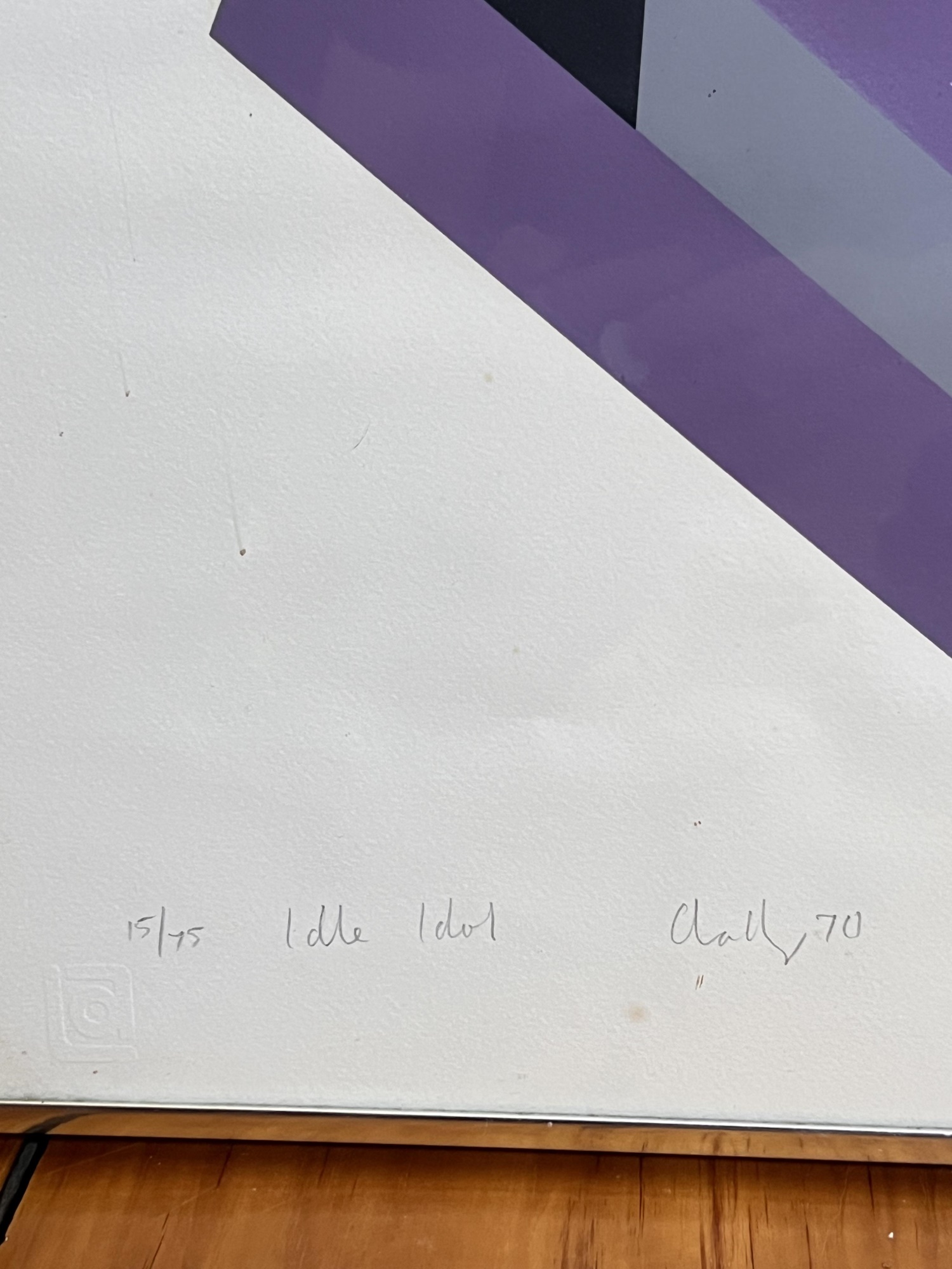 Silkscreen print, pencil signed and dated 1970, numbered 15/75, embossed watermark on paper. 31 x 23 inches framed