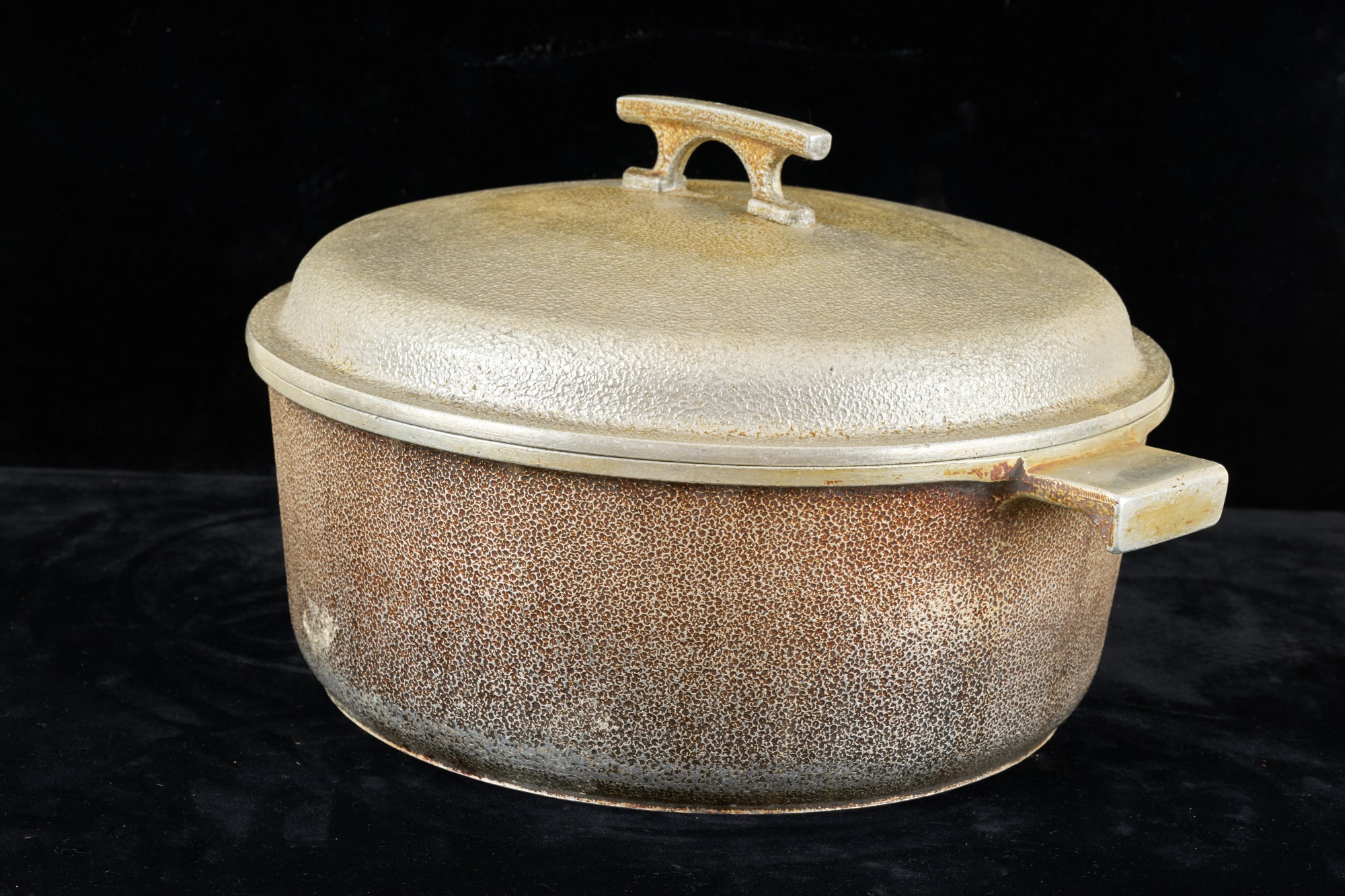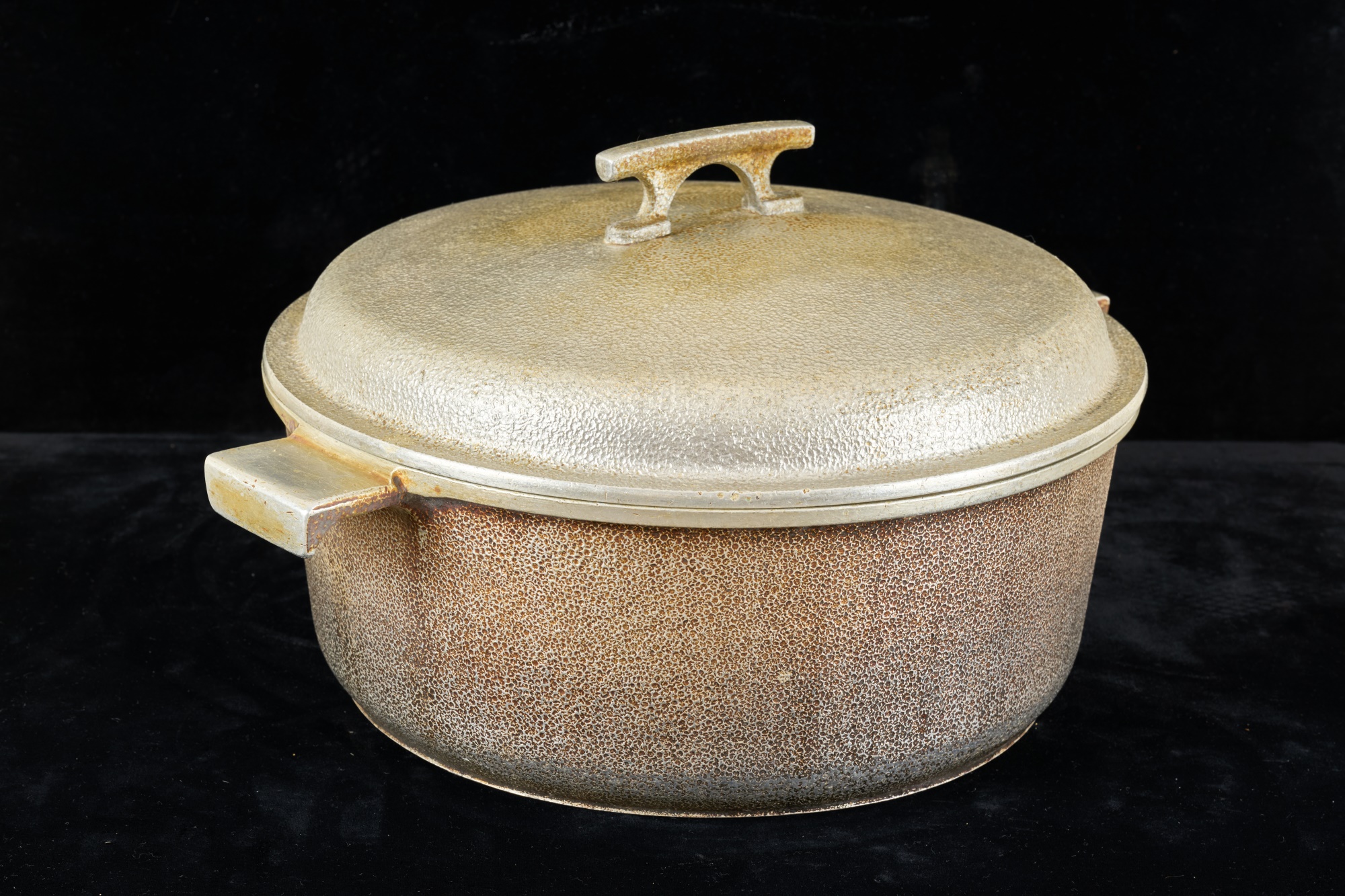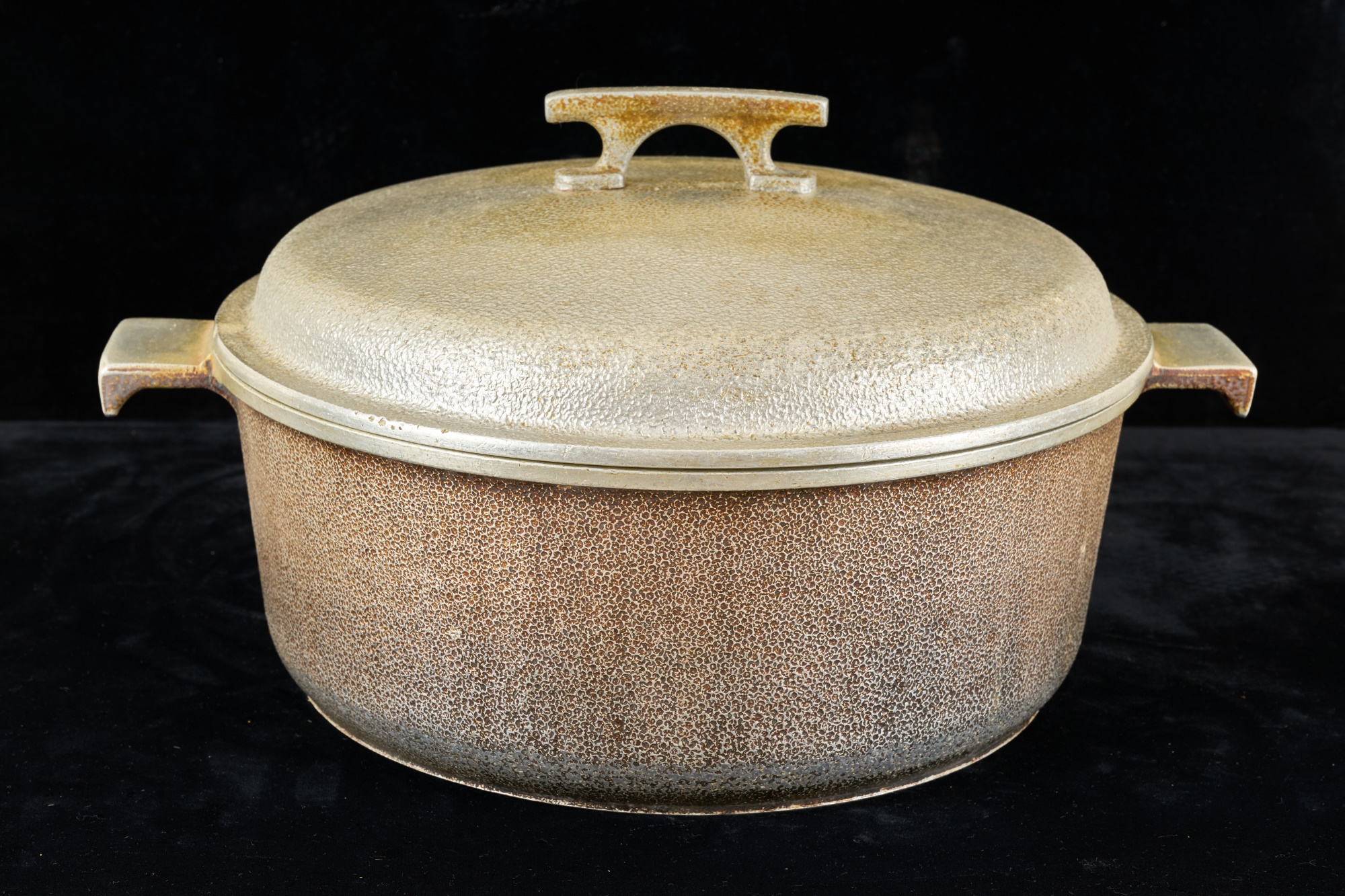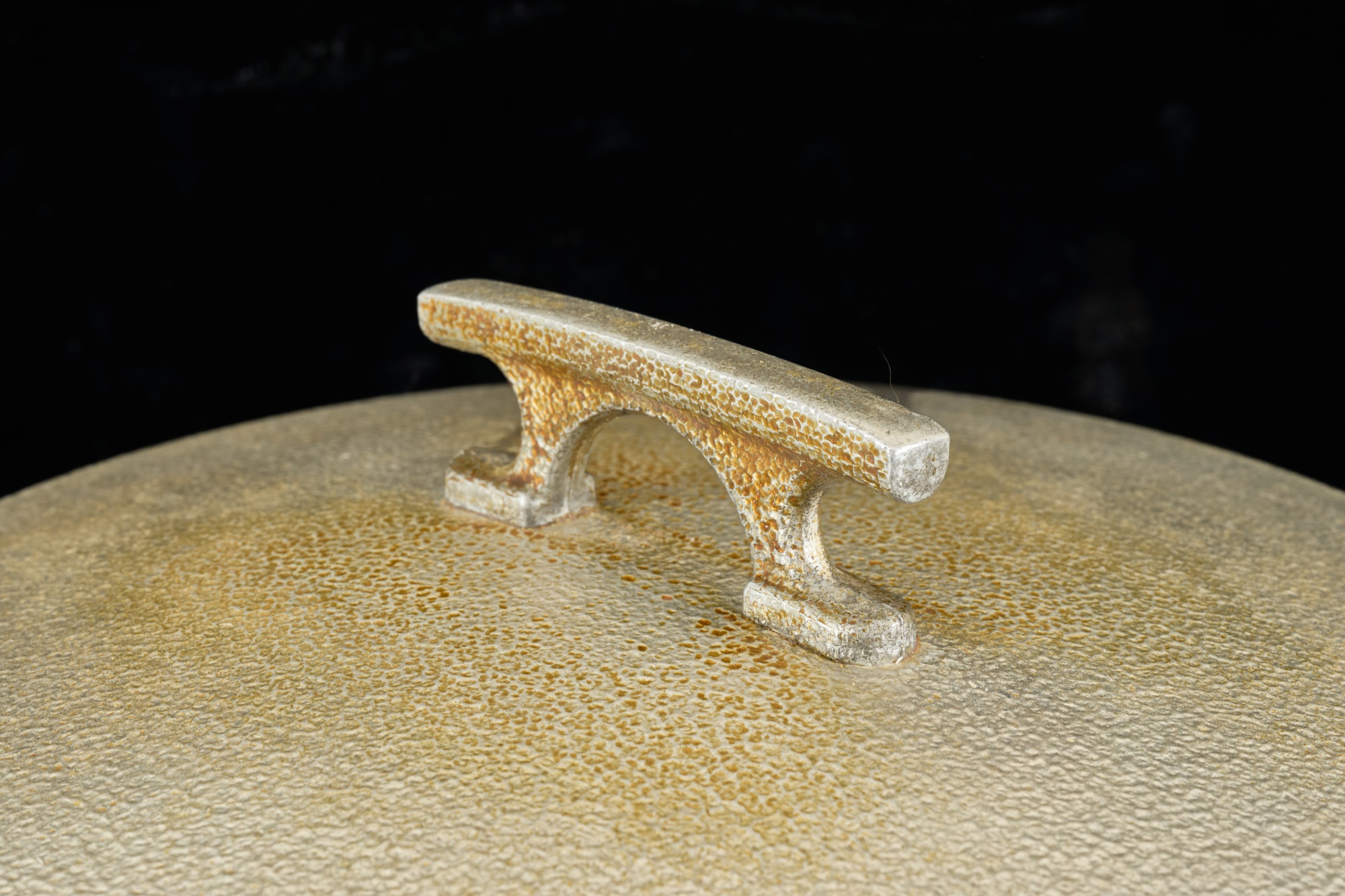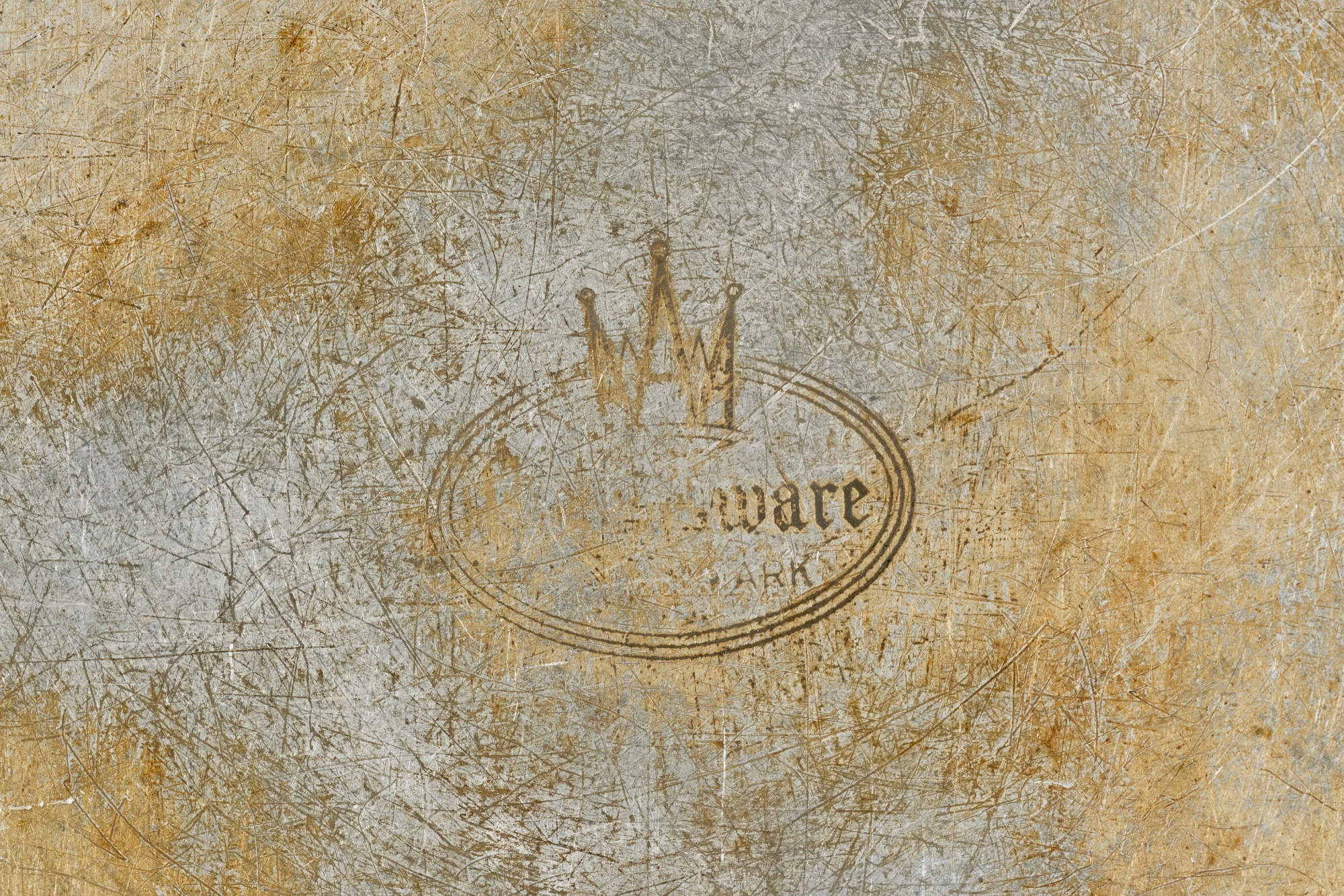 Hammered-like texture. 7.5 x 14 inches Condition: Surface grime