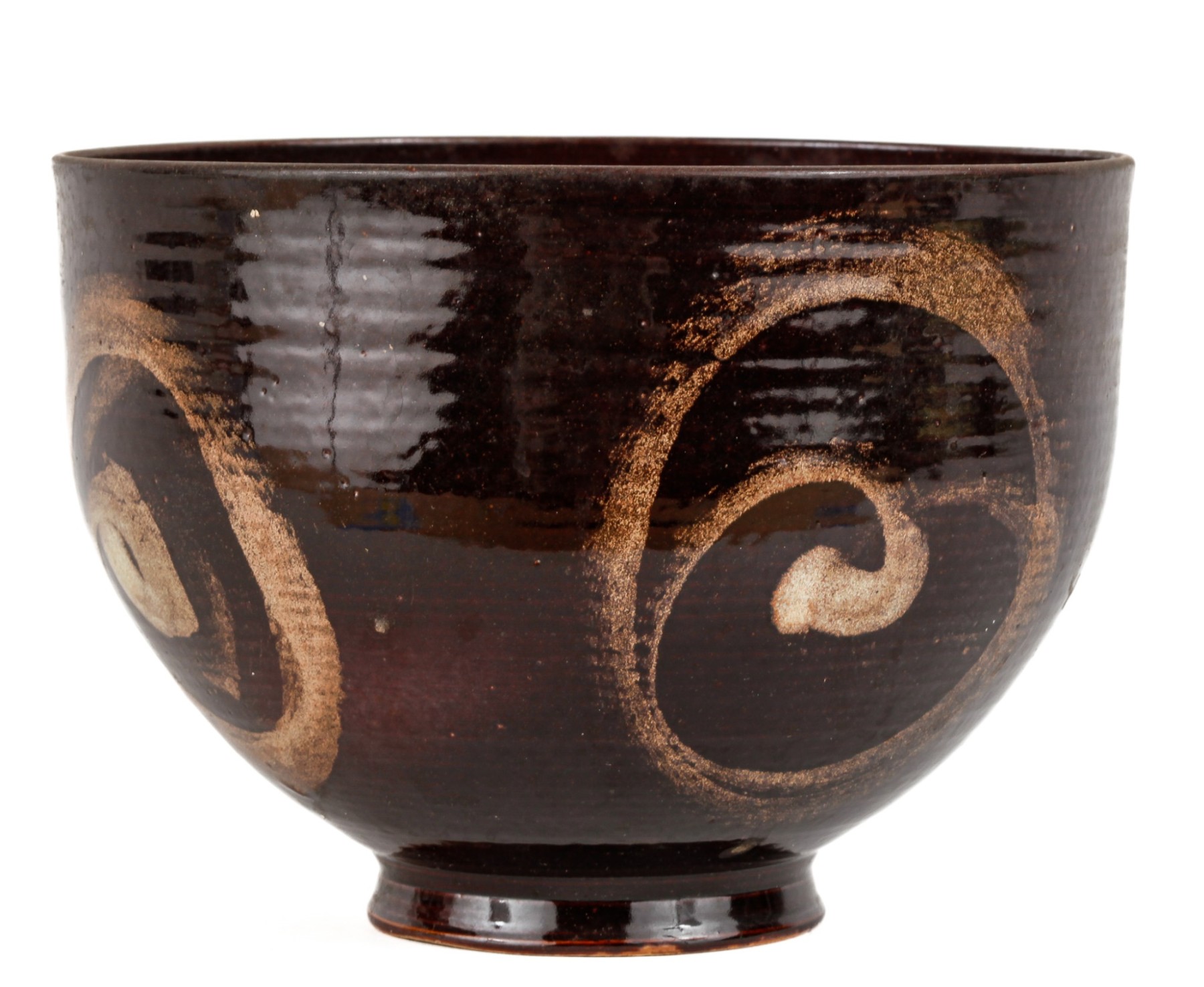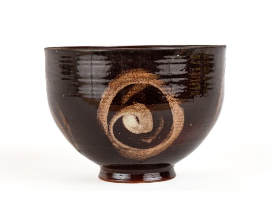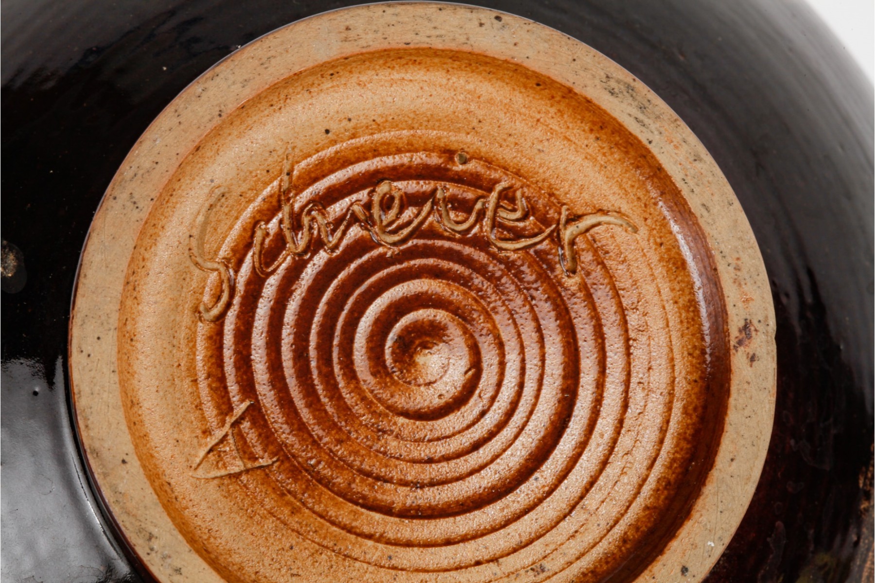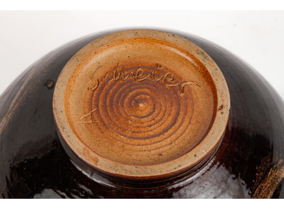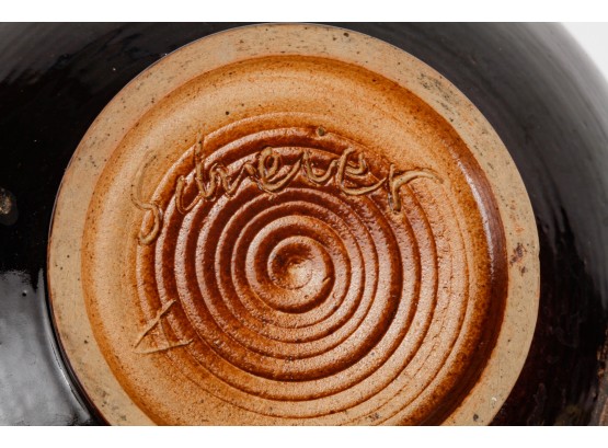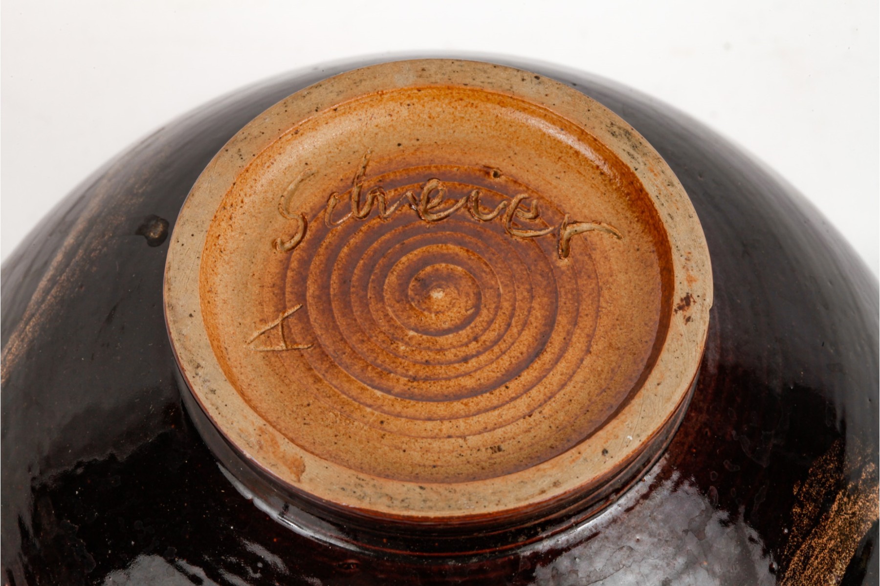 Outside swirl decoration signed Scheier on base. 4 3/4" x 6 1/2" dia