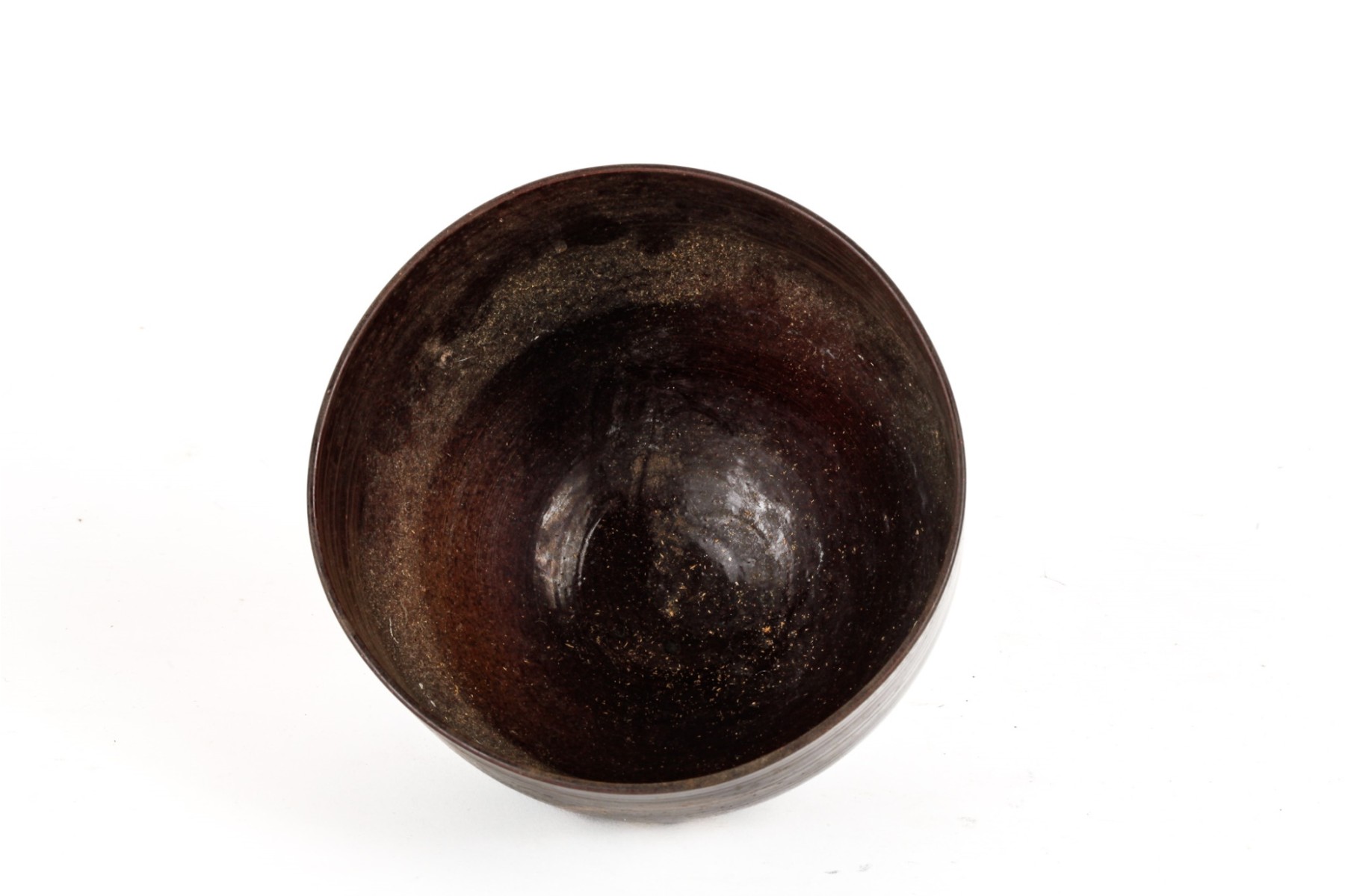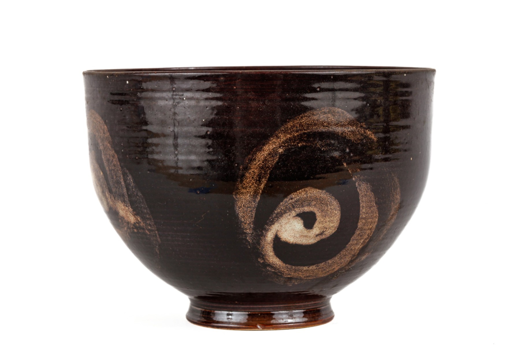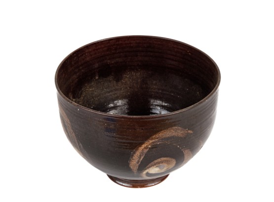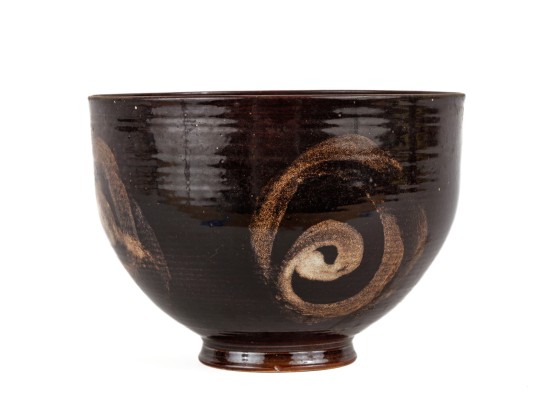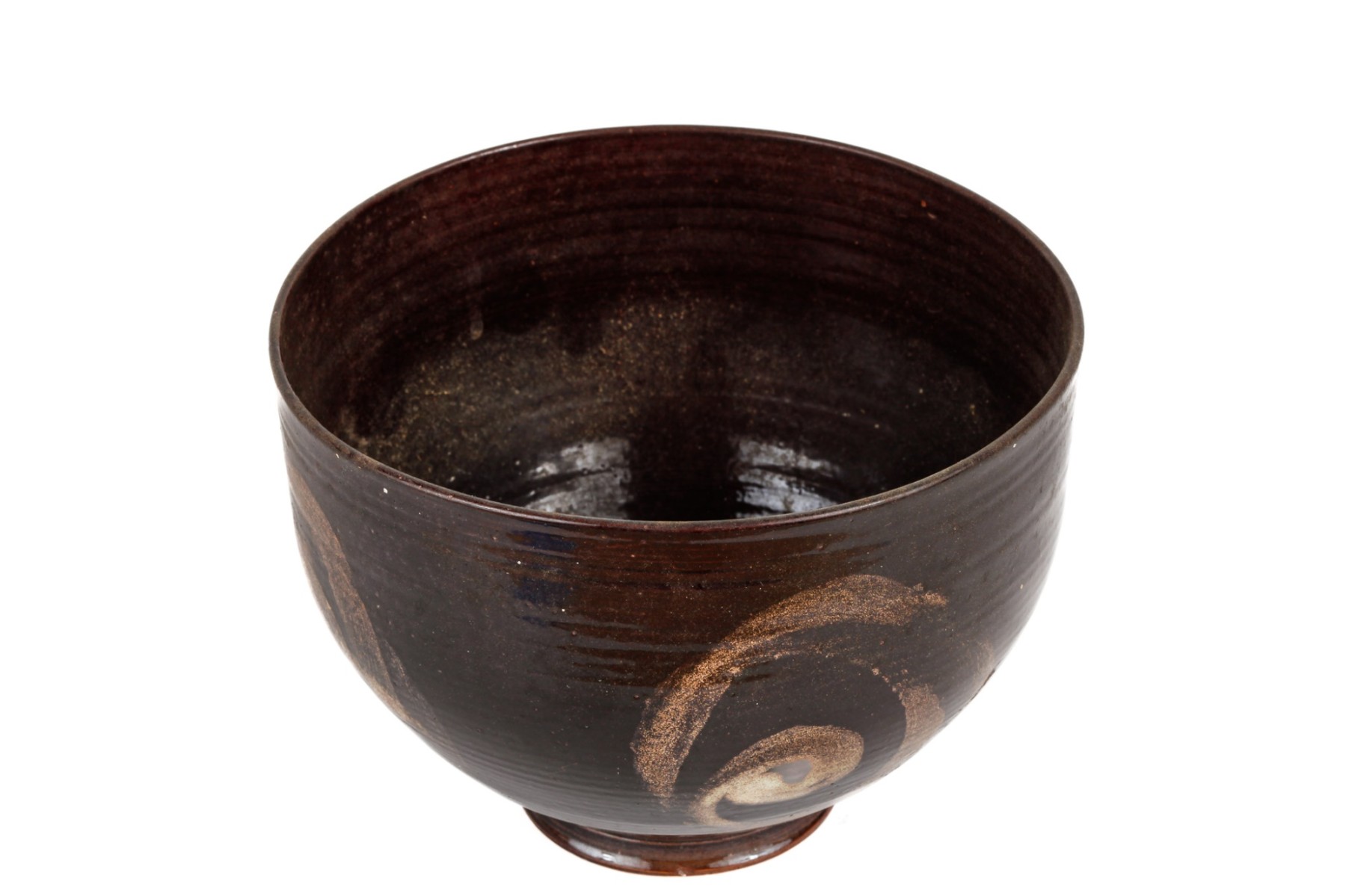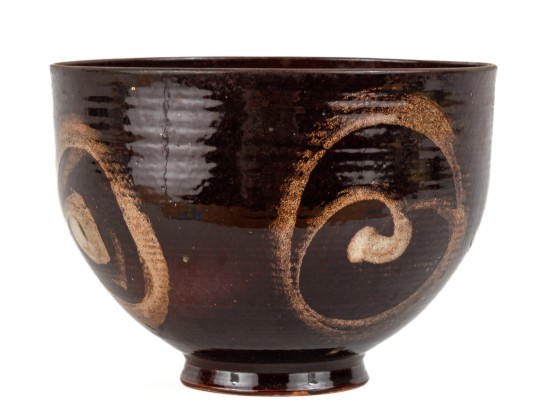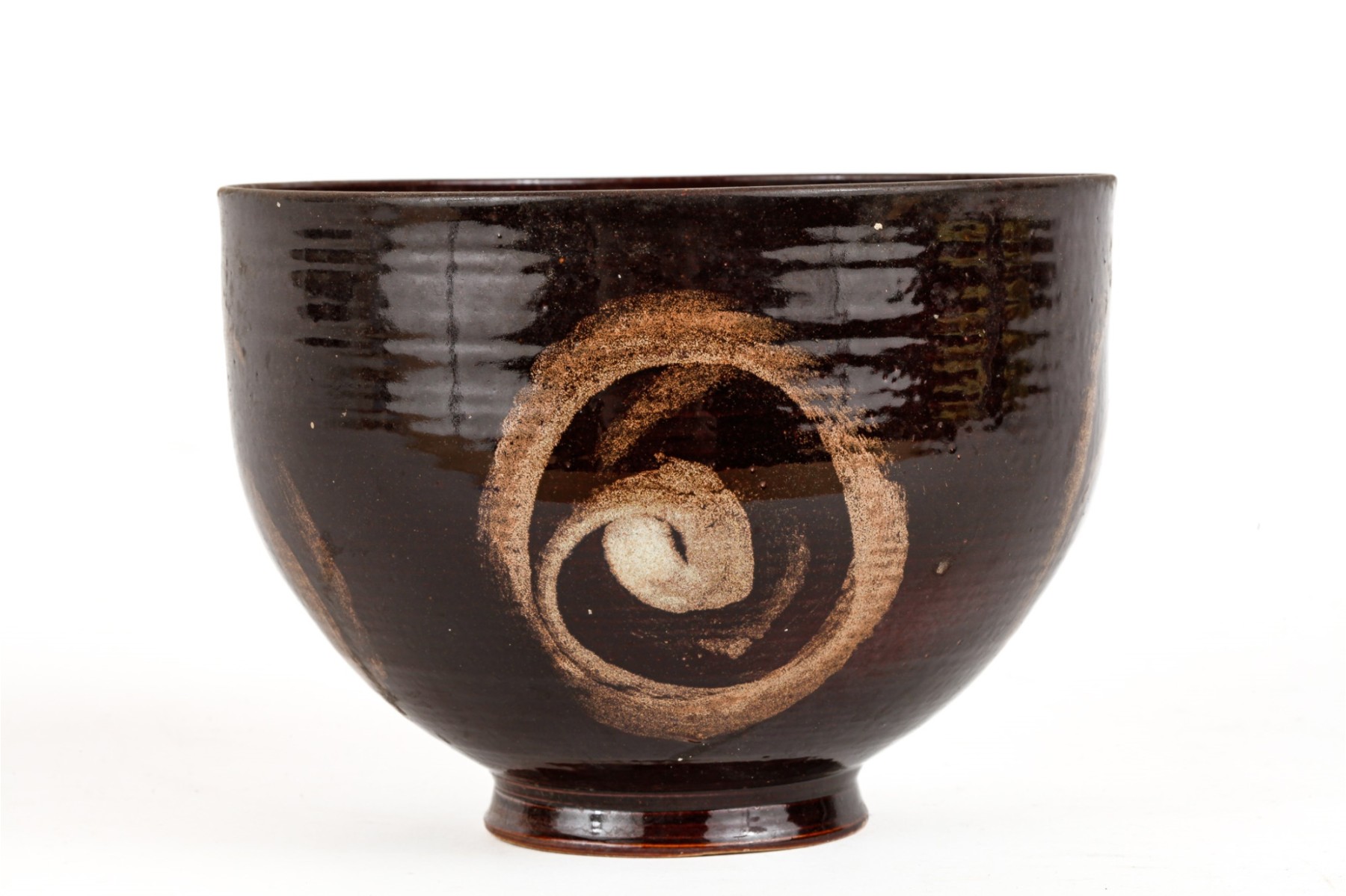 Outside swirl decoration signed Scheier on base. 4 3/4" x 6 1/2" dia