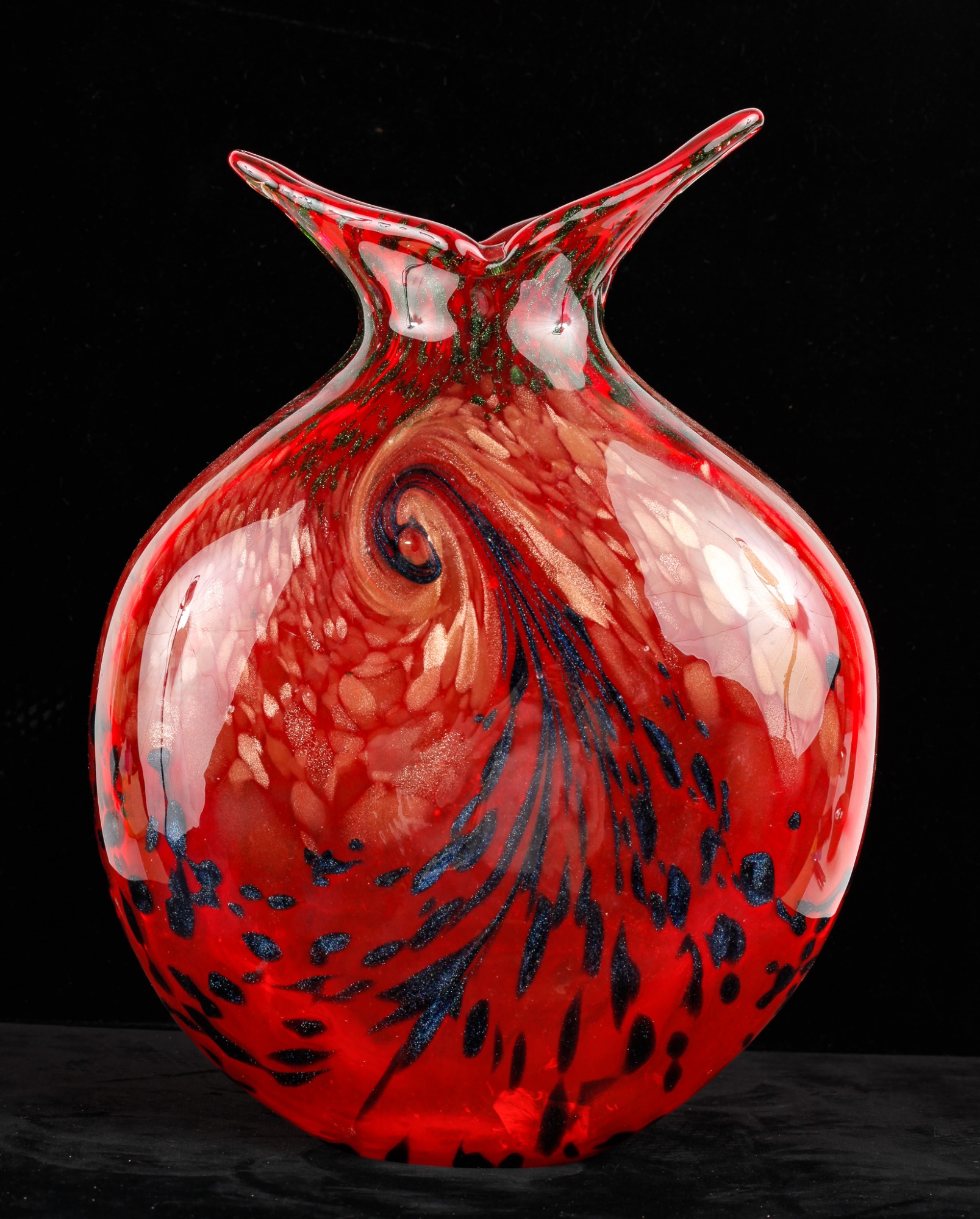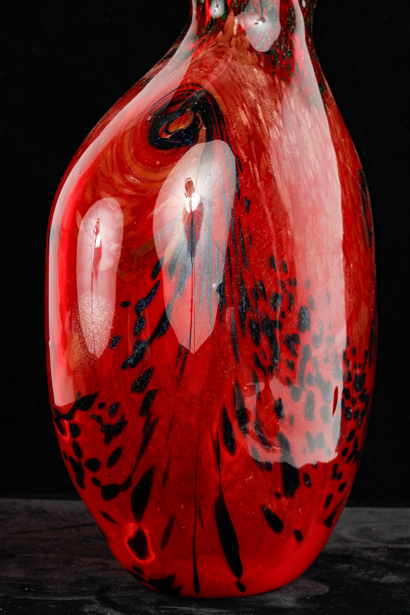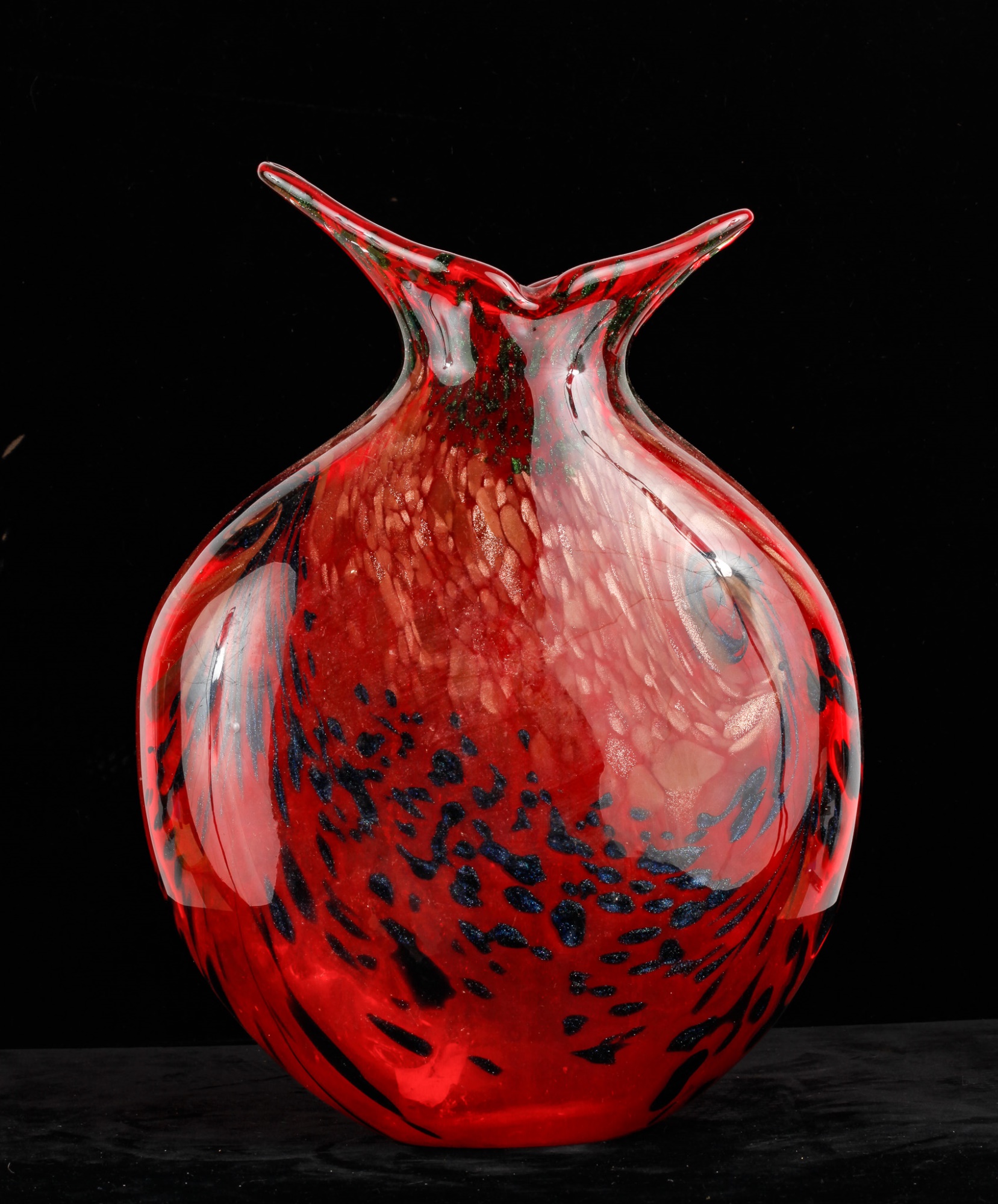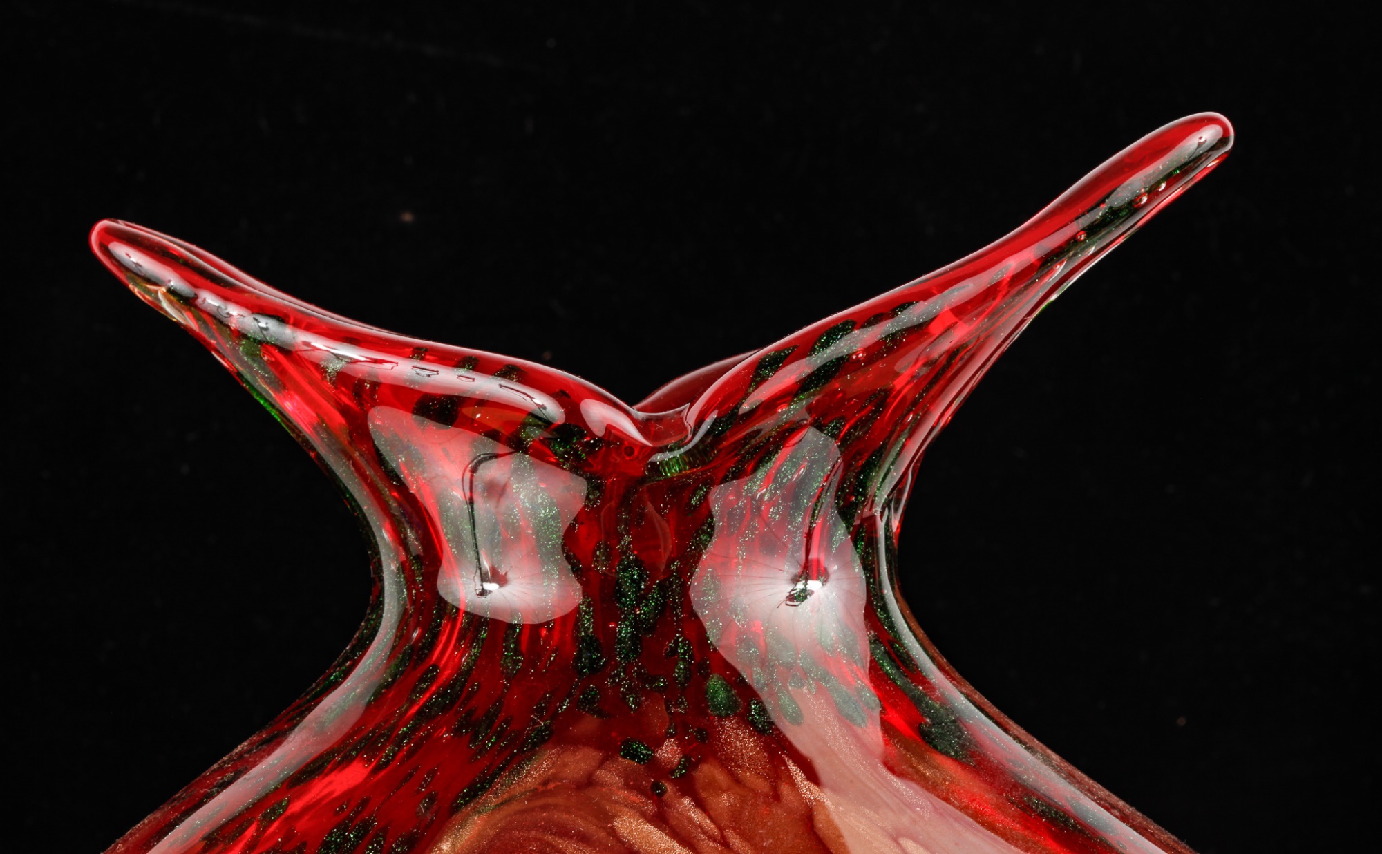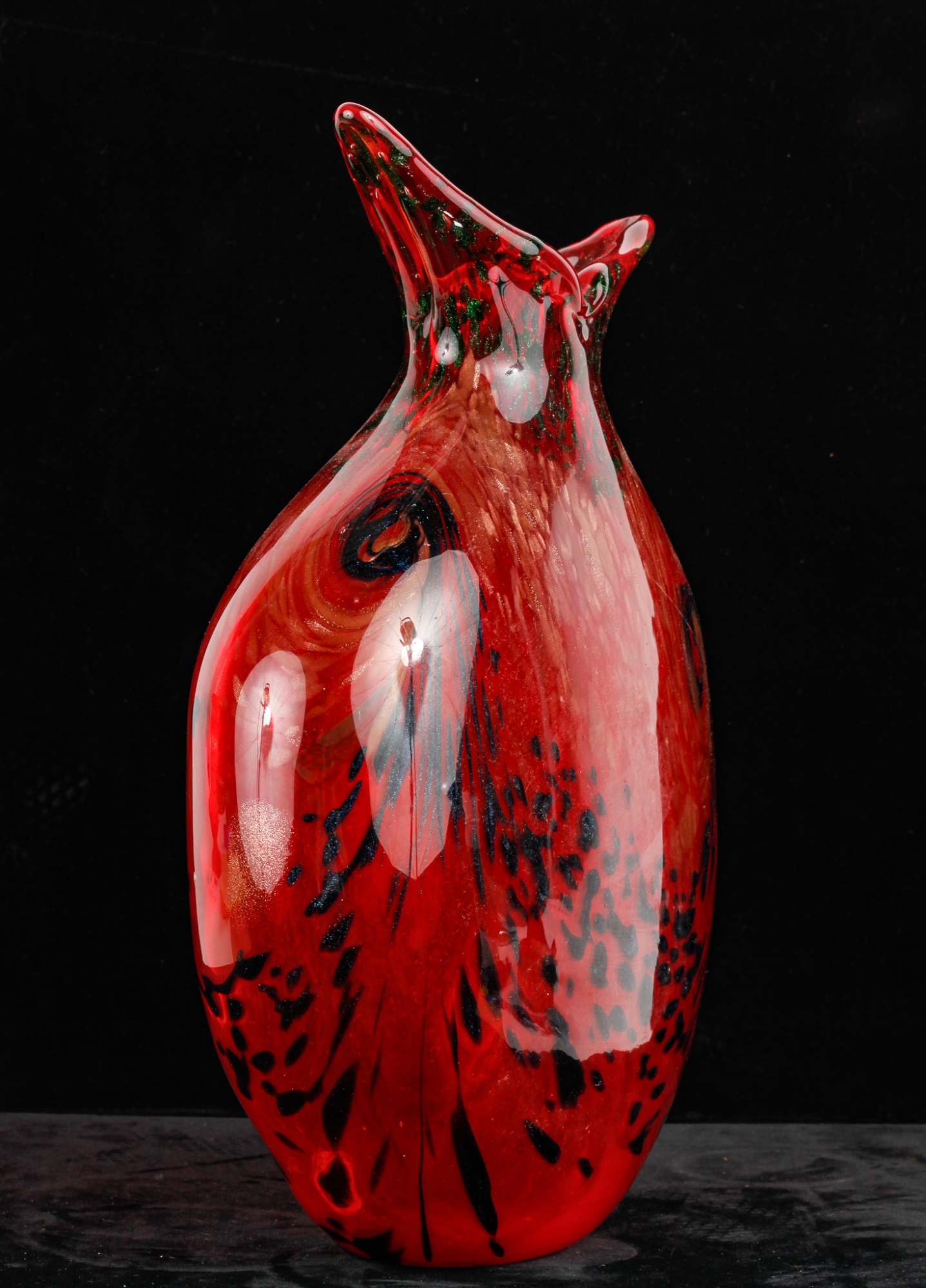 Red with black and gold sparkles. Unsigned. 13 1/2" x 10" x 4"