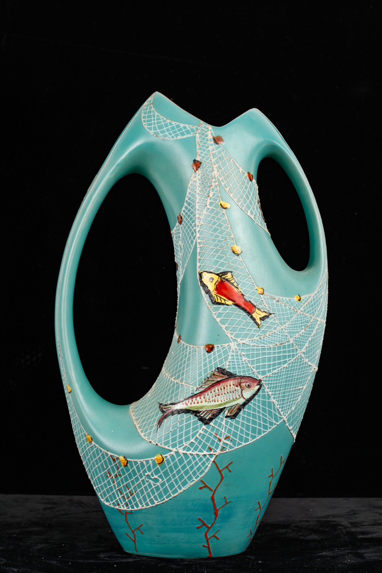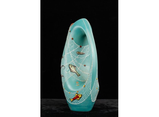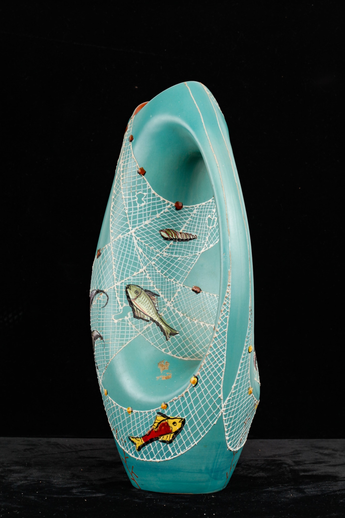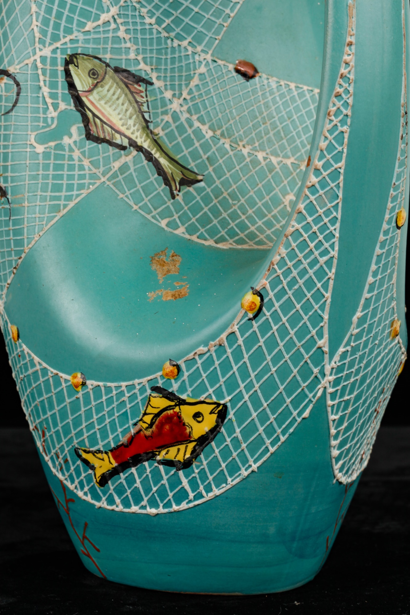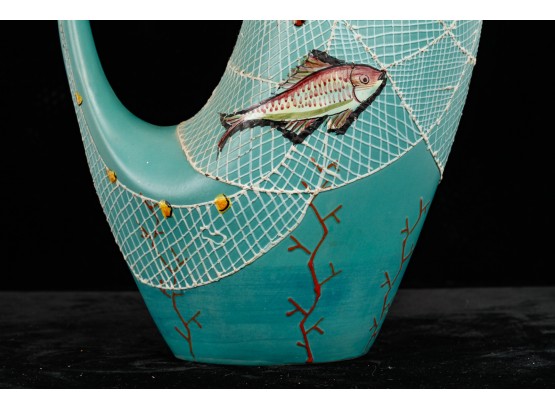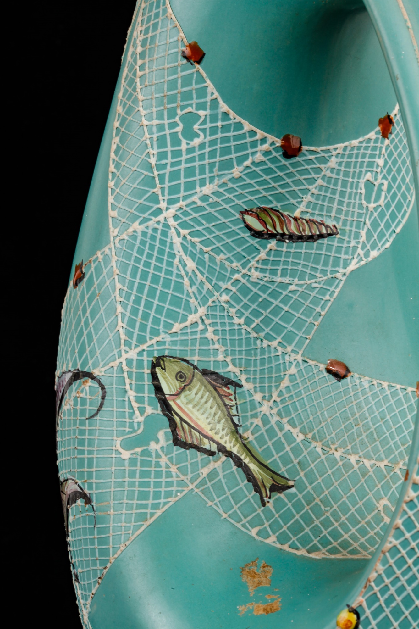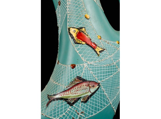 Fish and netting nautical pattern. Italian. 13" x 7 1/2" x 5"