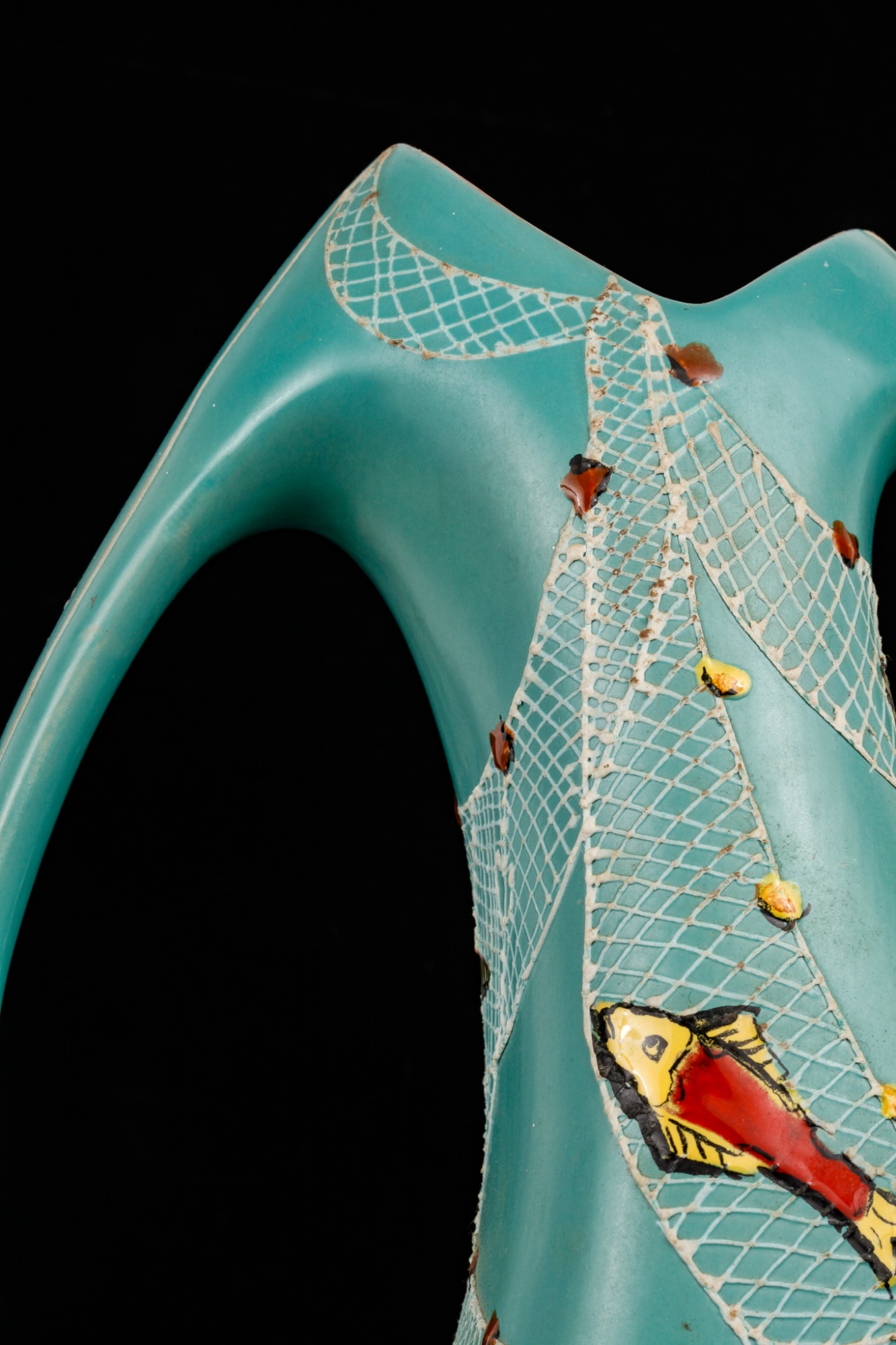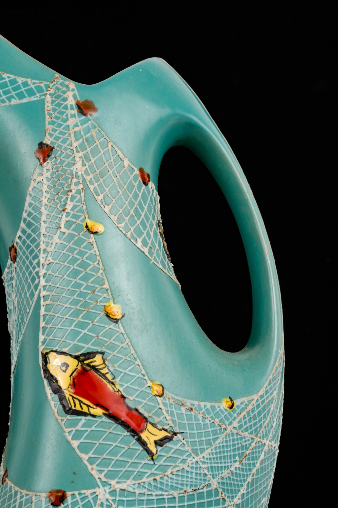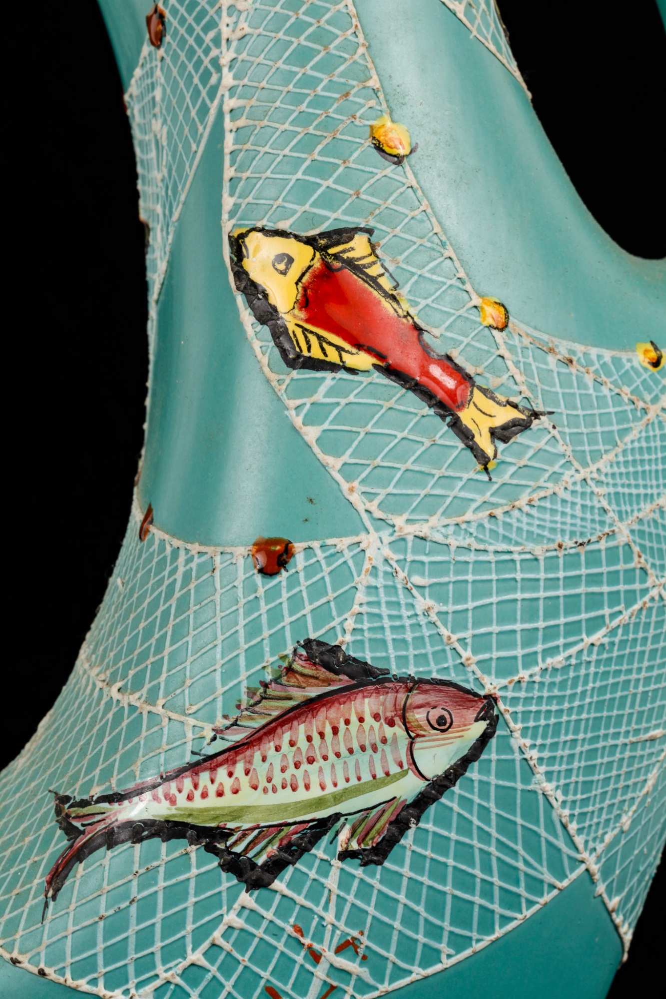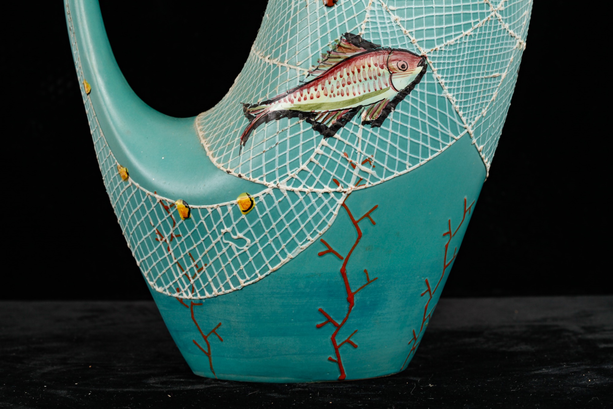Fish and netting nautical pattern. Italian. 13" x 7 1/2" x 5"