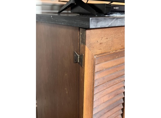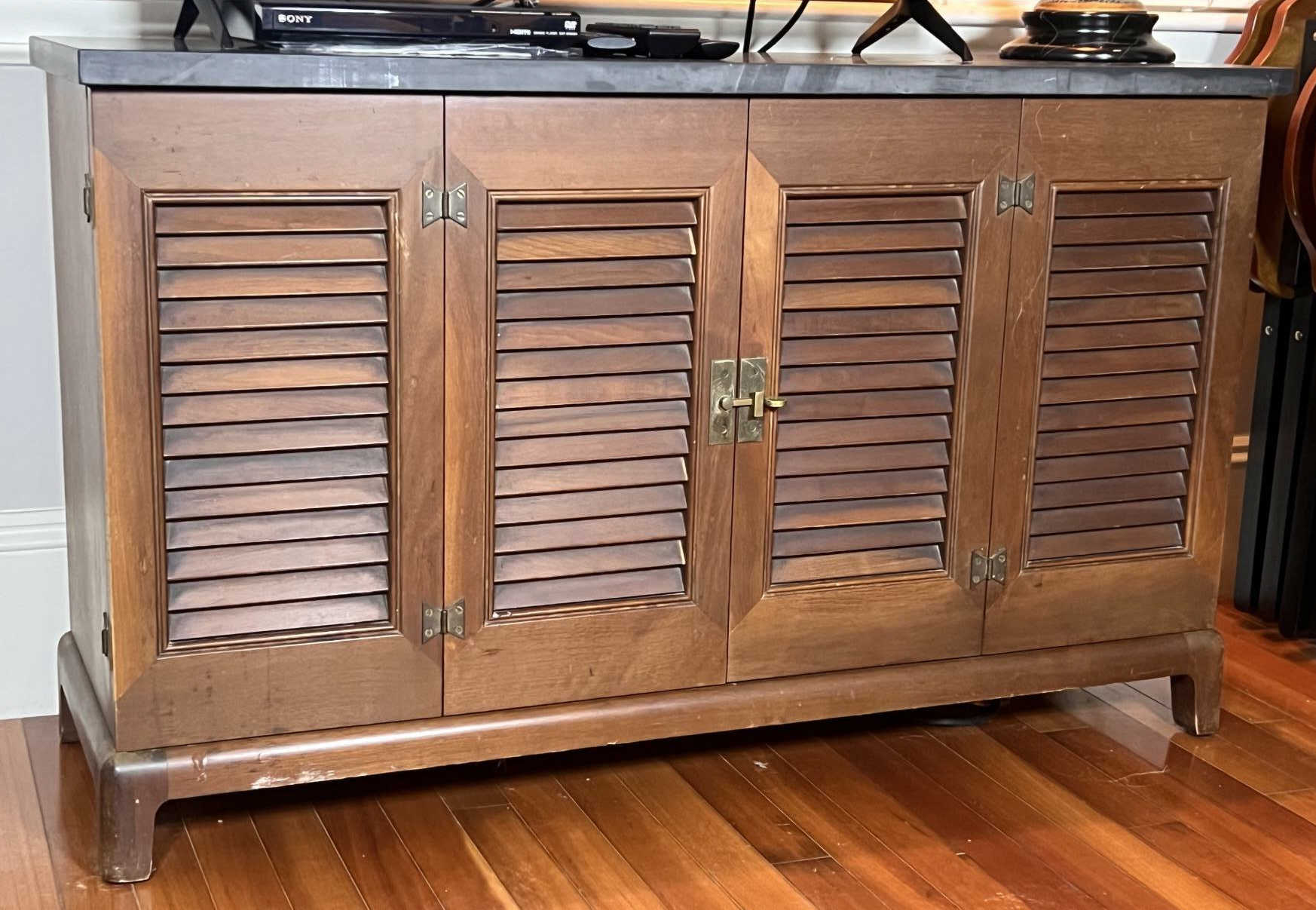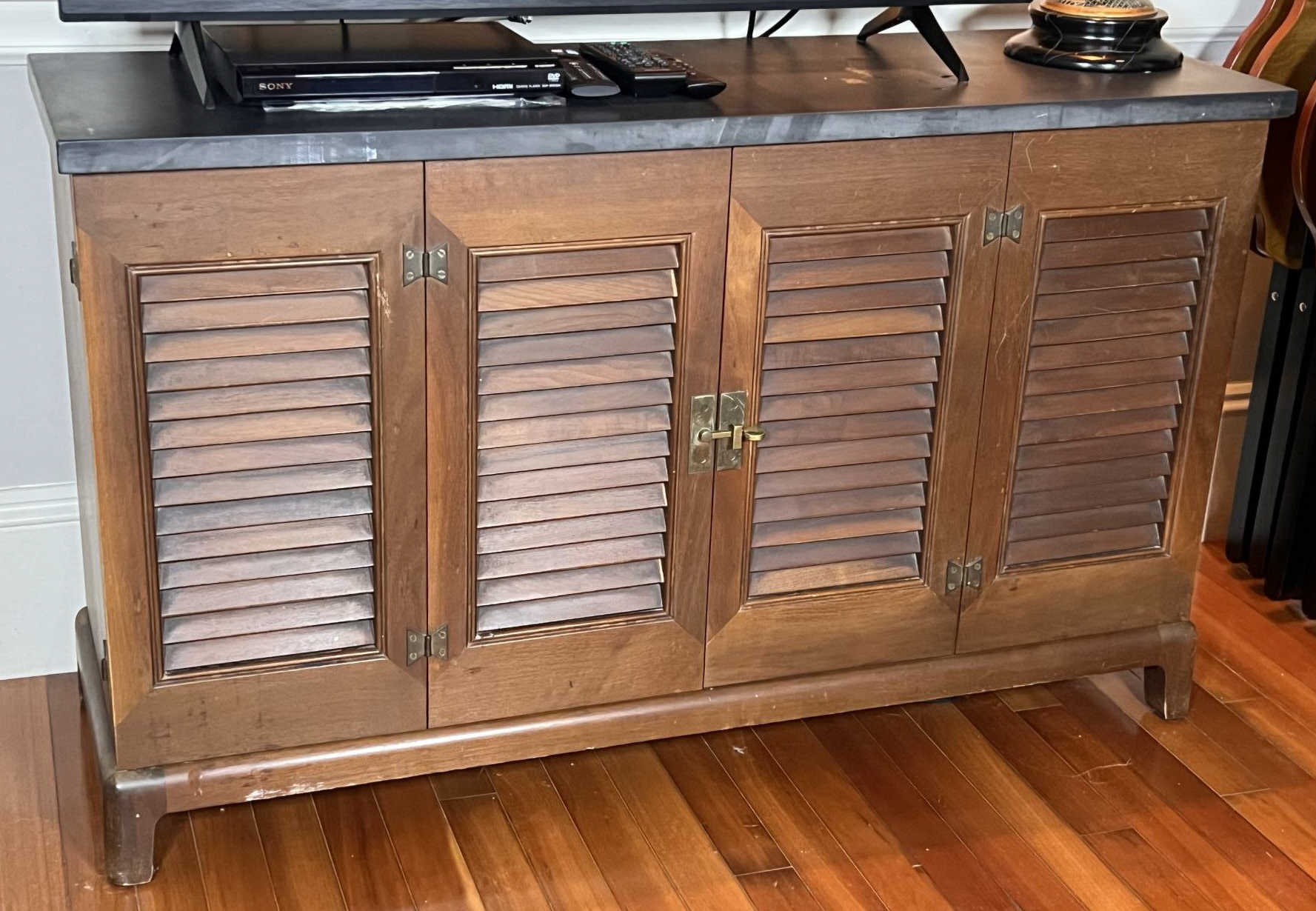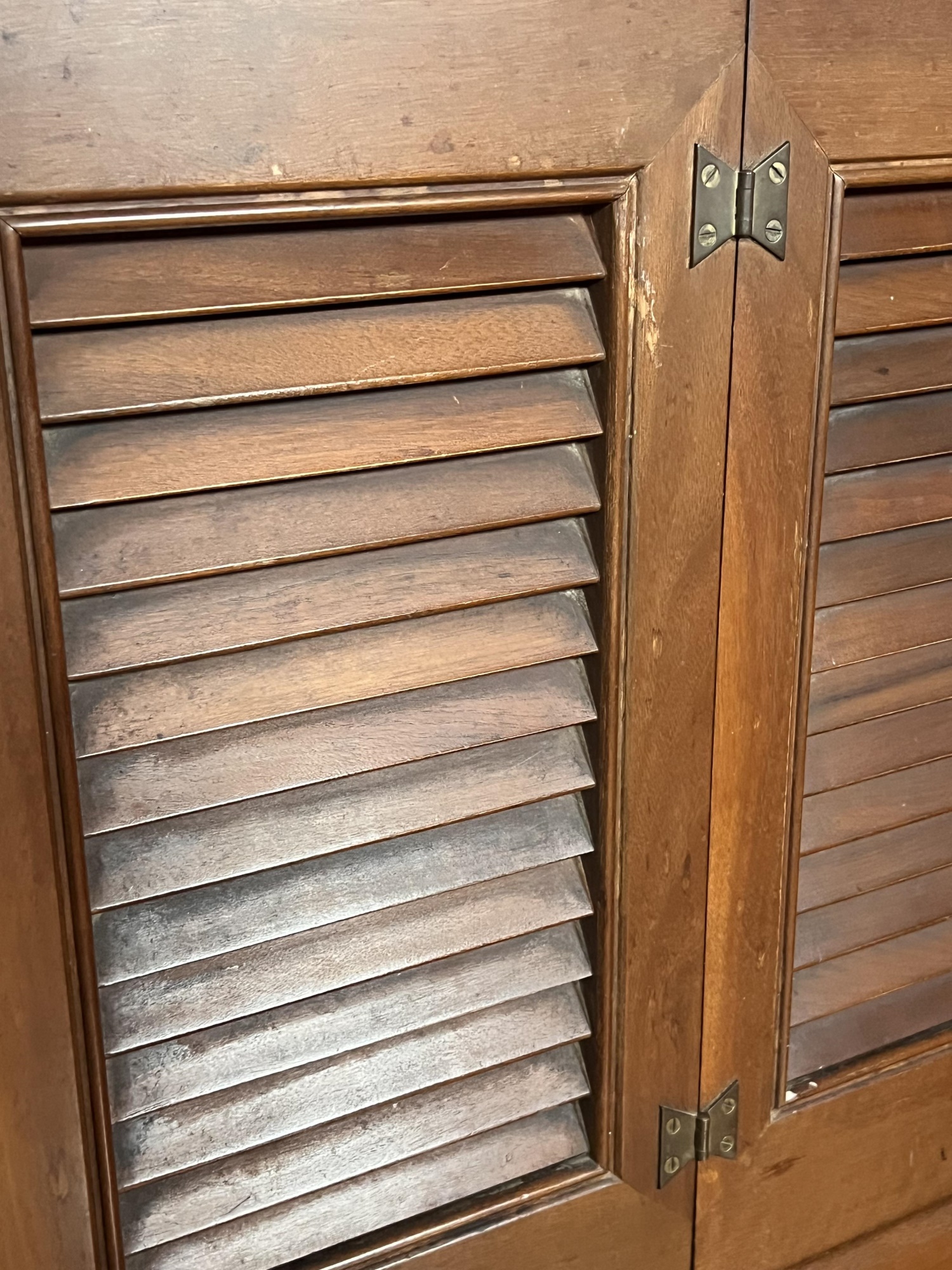 With shutter doors. 26 1/4 x 43 3/4 x 14 inches Condition: Wear consistent with age and use