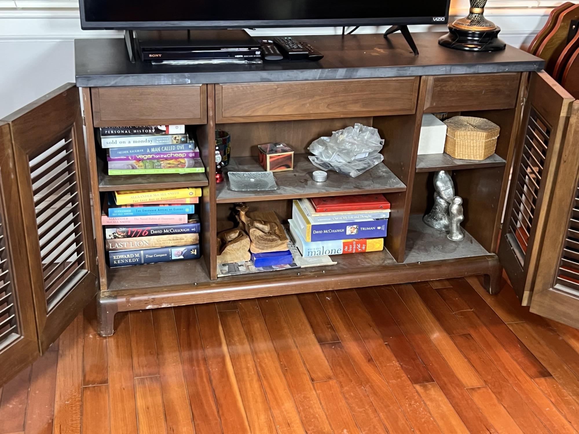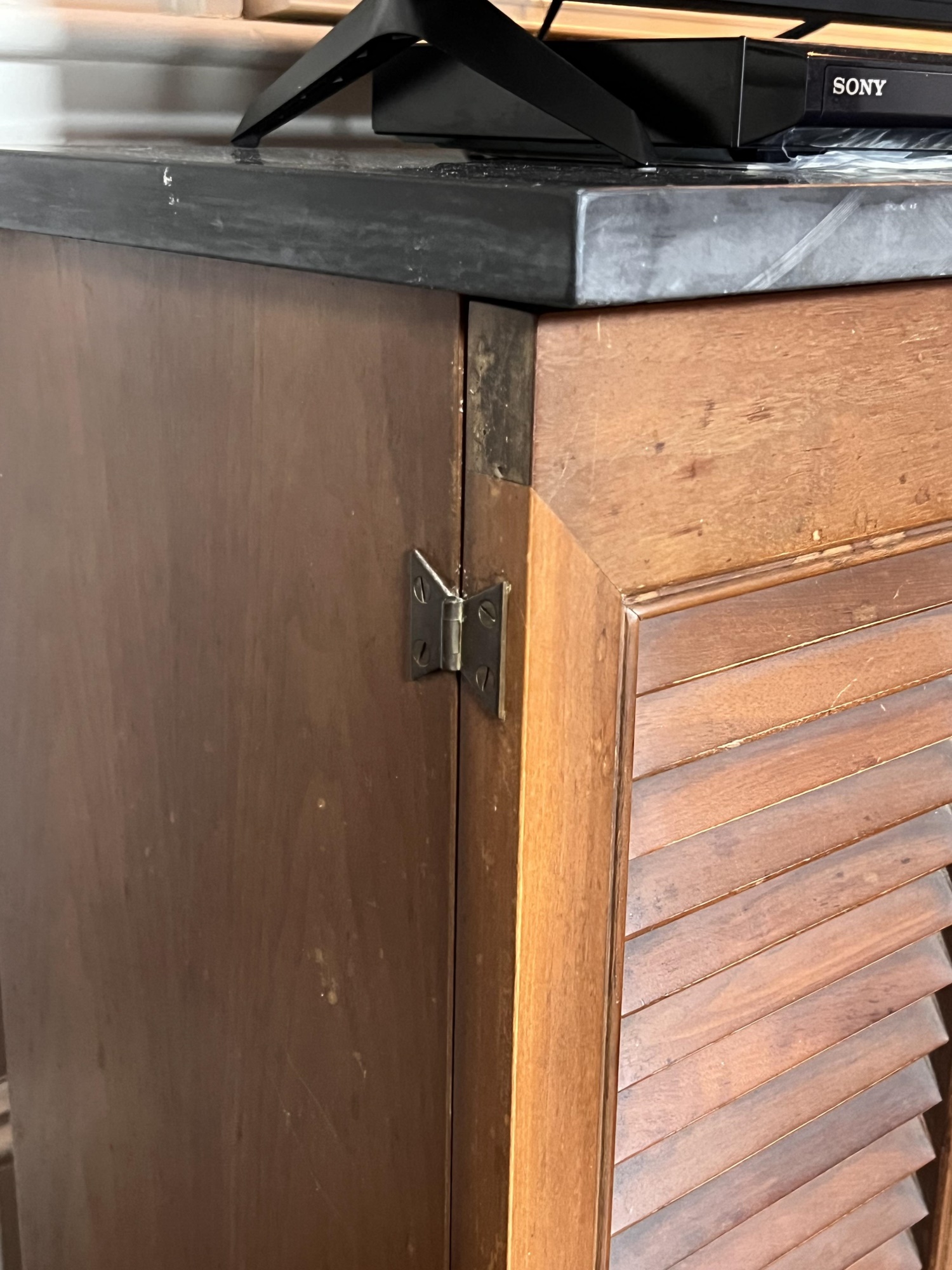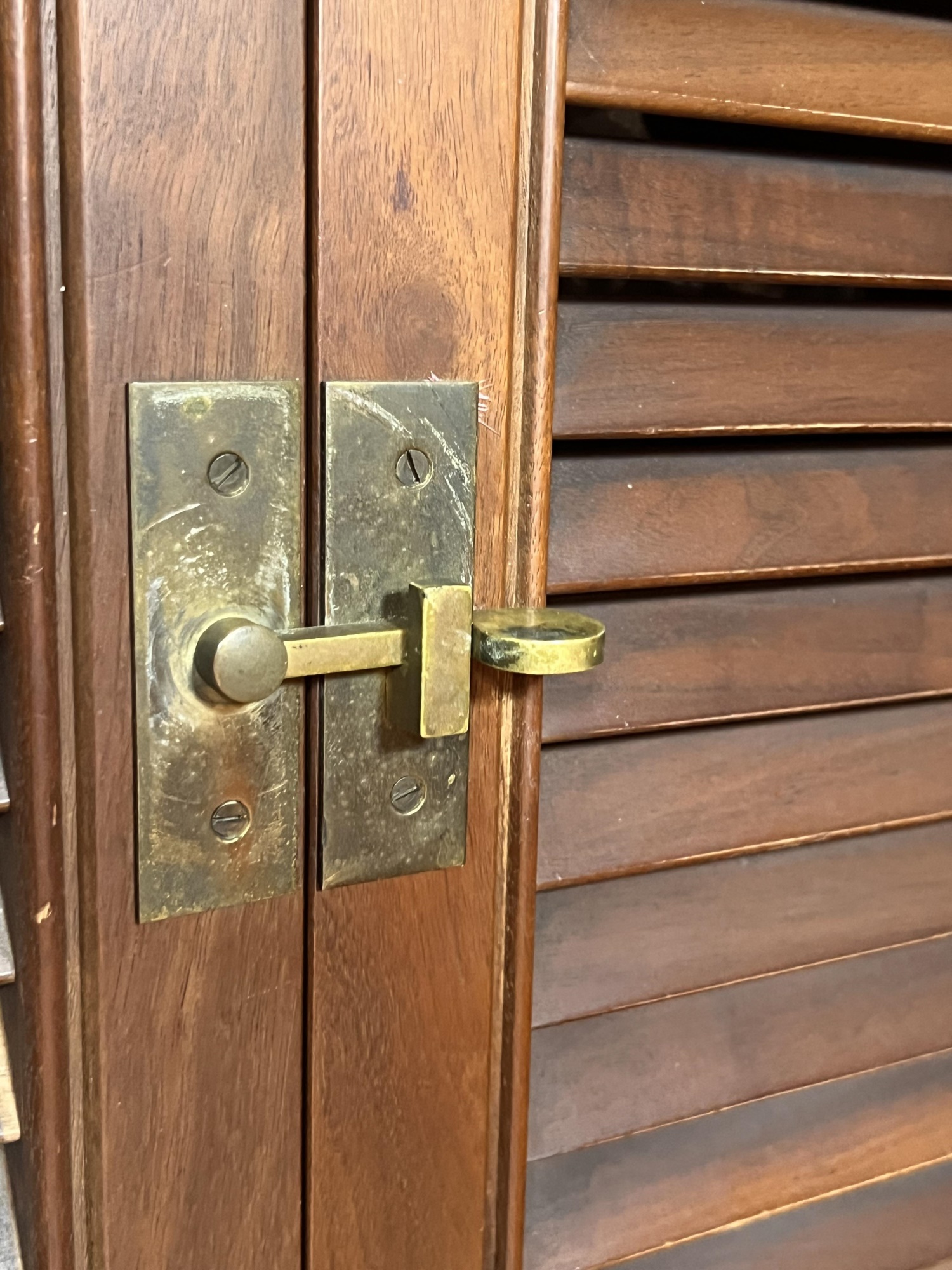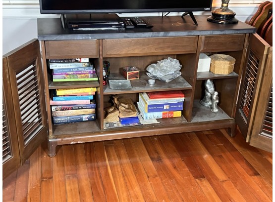 With shutter doors. 26 1/4 x 43 3/4 x 14 inches Condition: Wear consistent with age and use