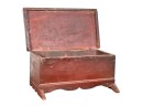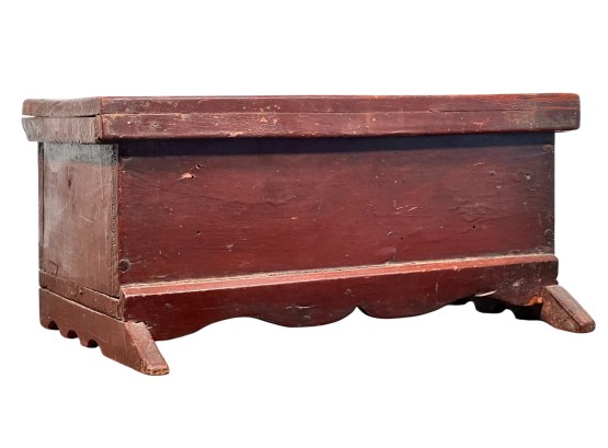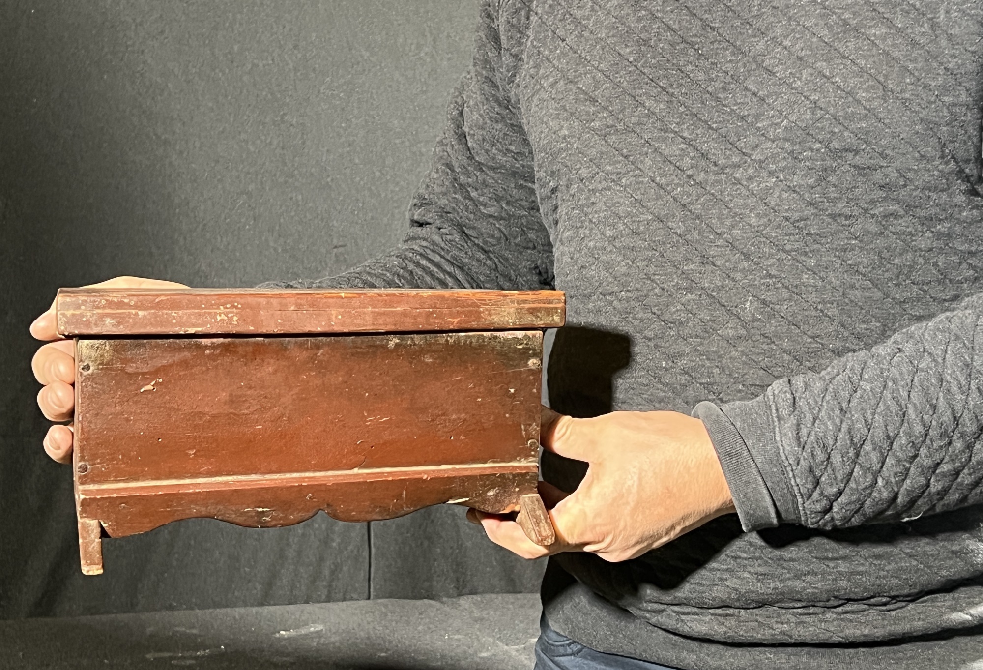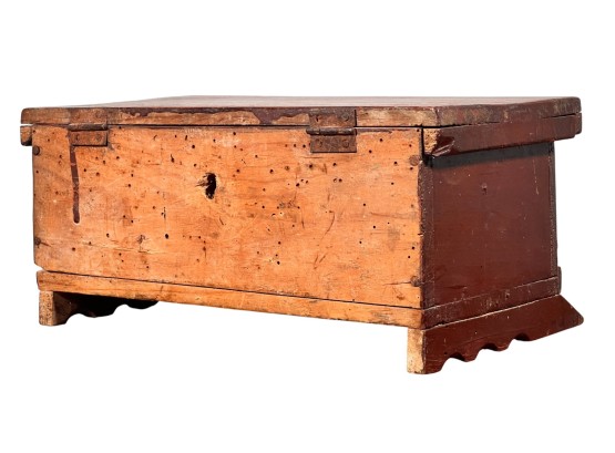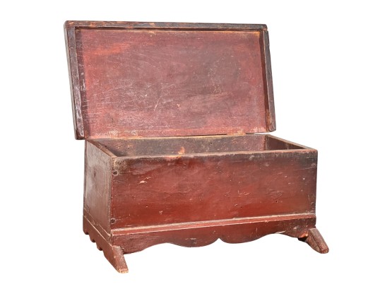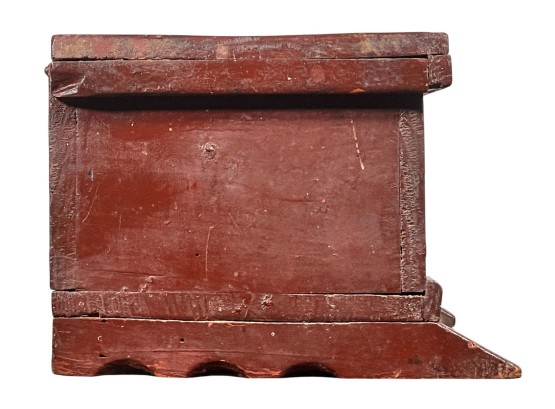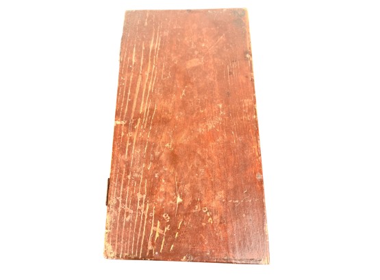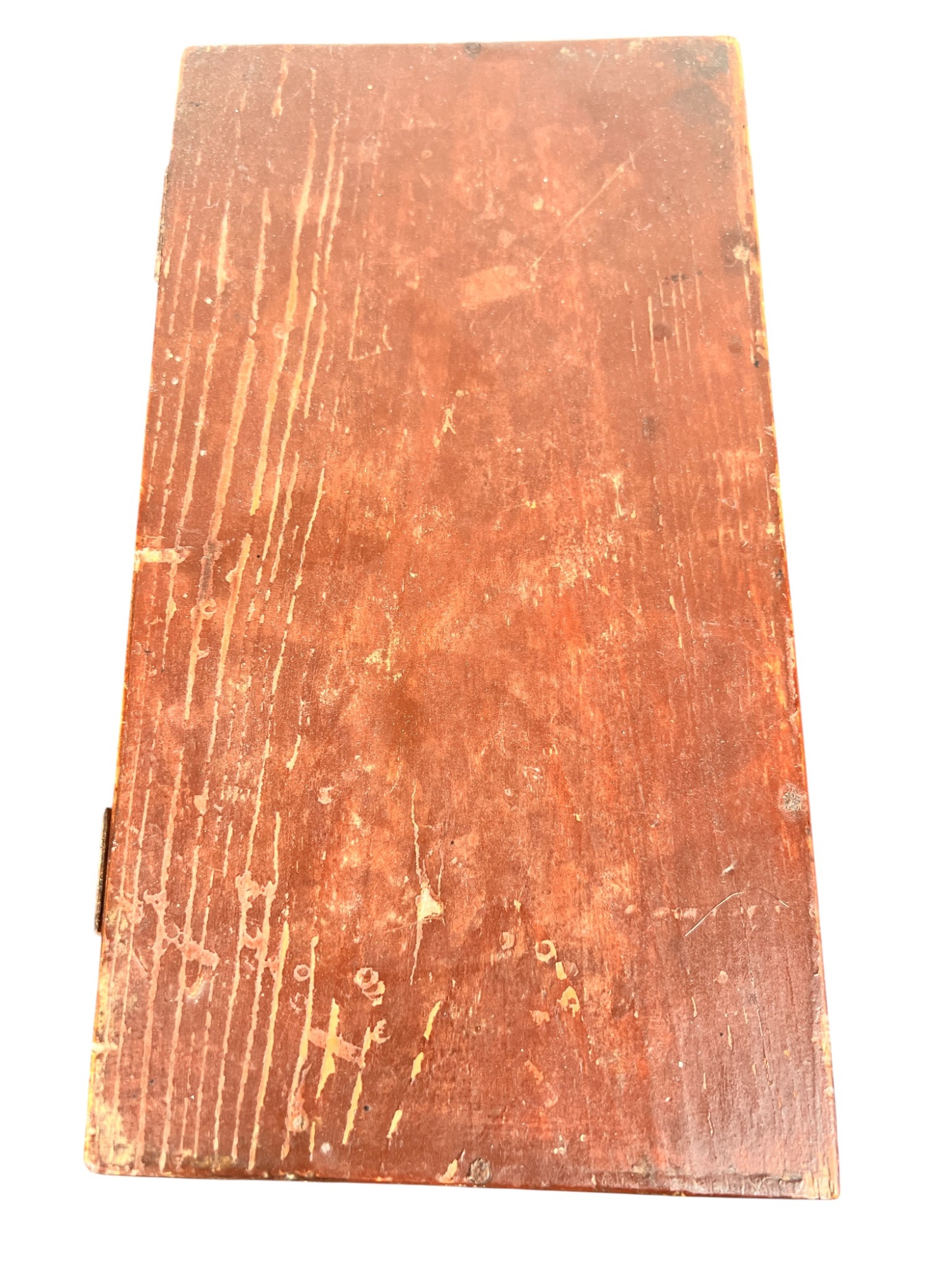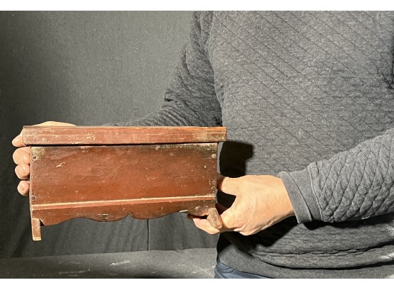 Possibly a child's bonnet box. 5 x 10 1/2 x 7 inches. Condition: Some minor paint losses, hole in back. Please see photos.