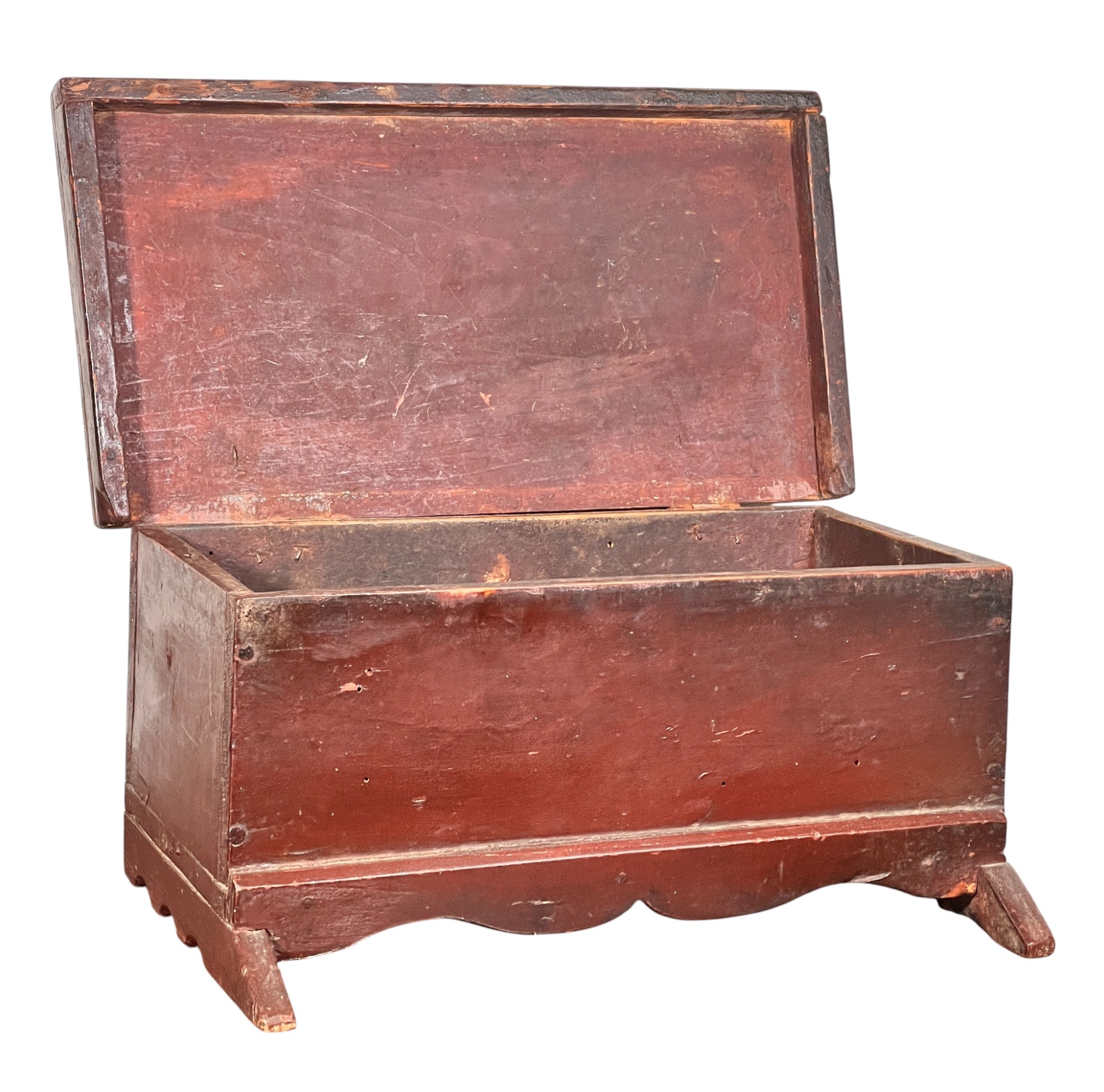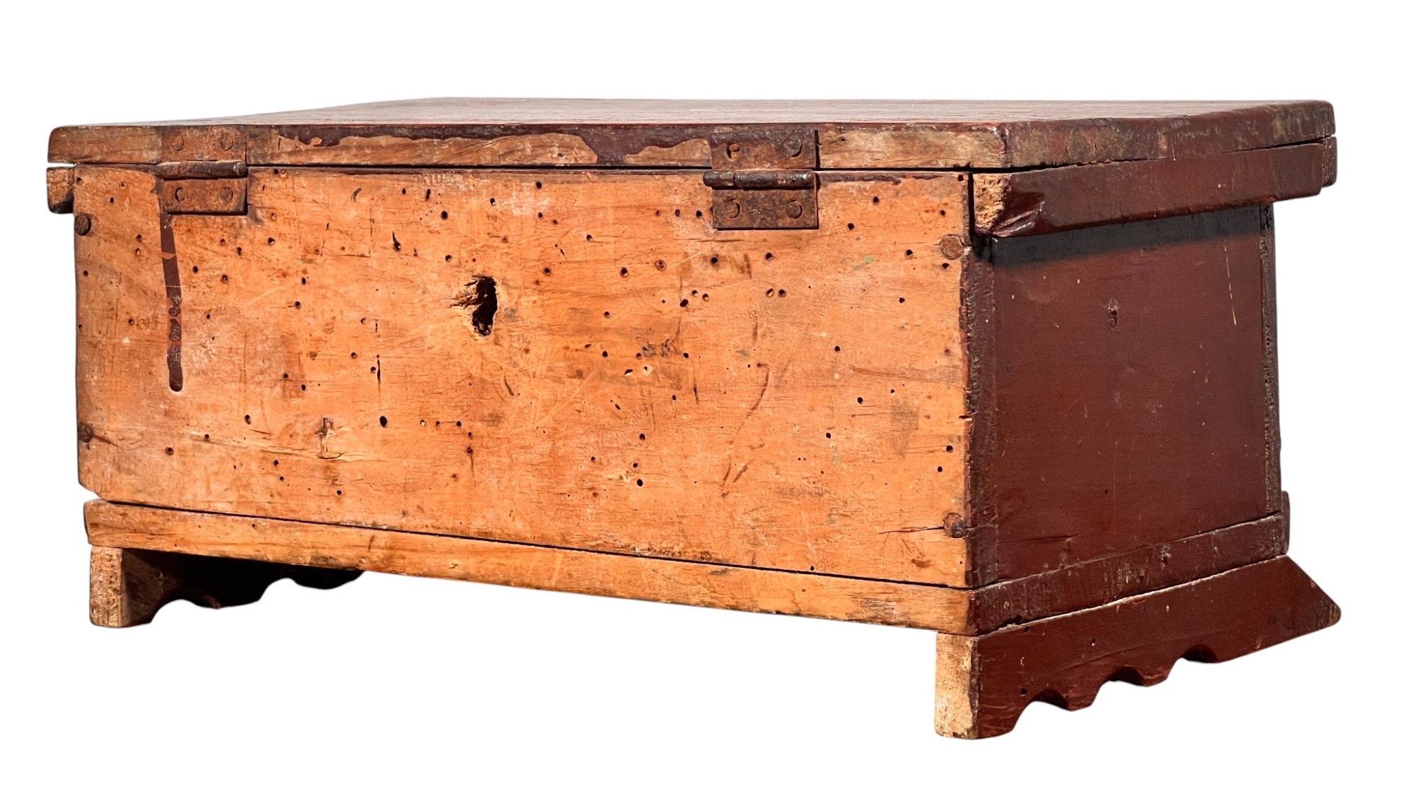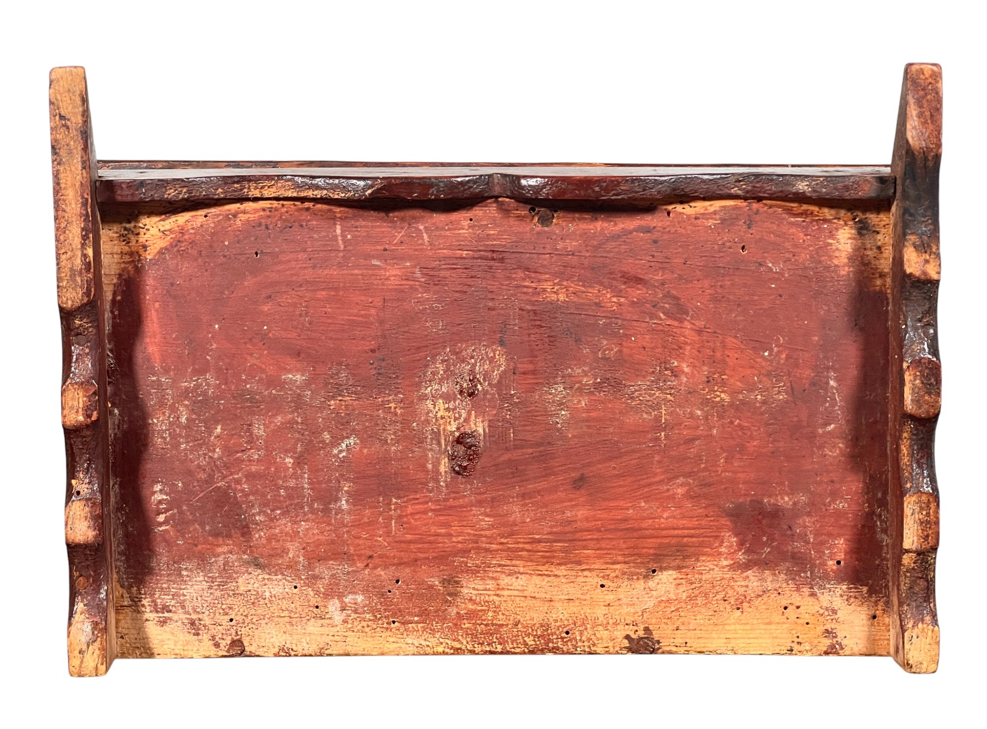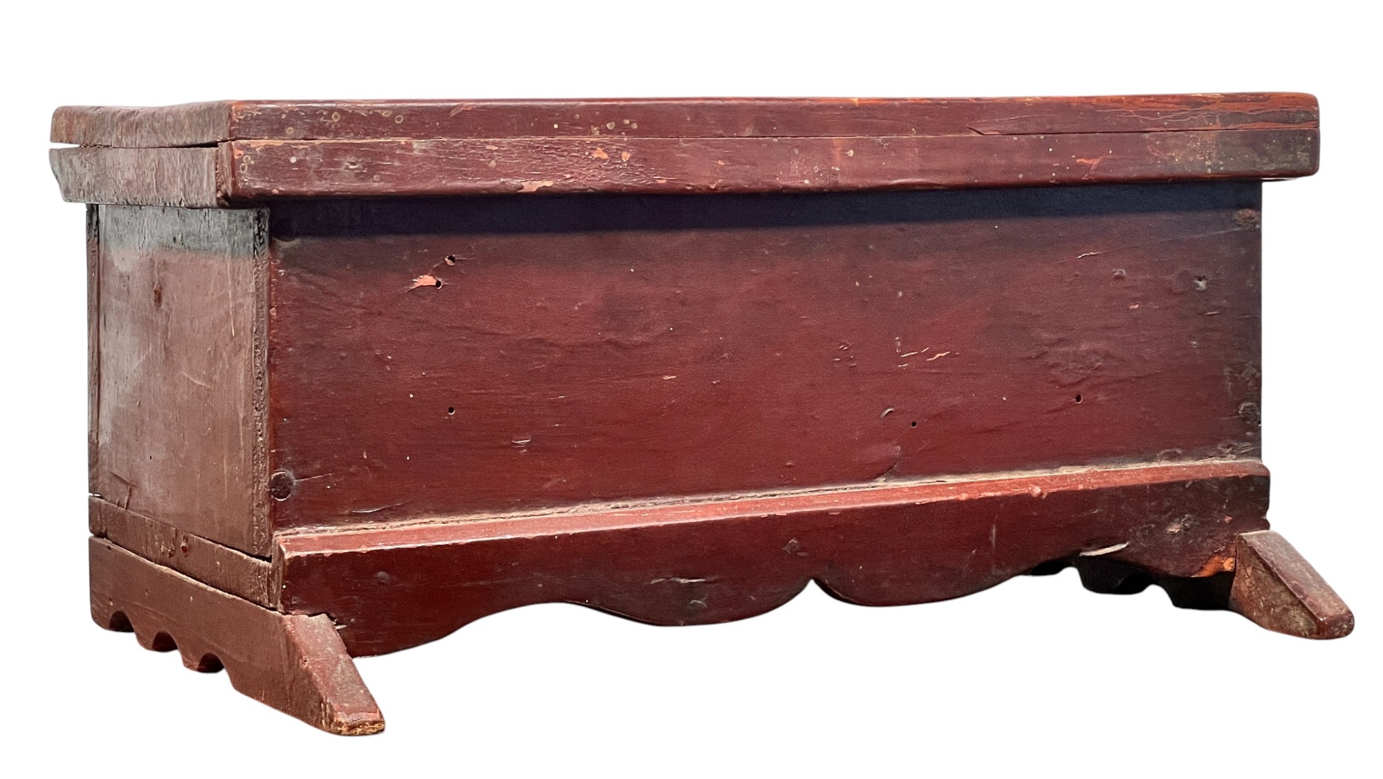 Possibly a child's bonnet box. 5 x 10 1/2 x 7 inches. Condition: Some minor paint losses, hole in back. Please see photos.