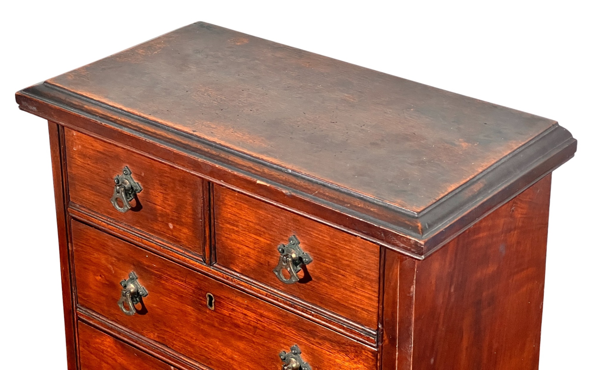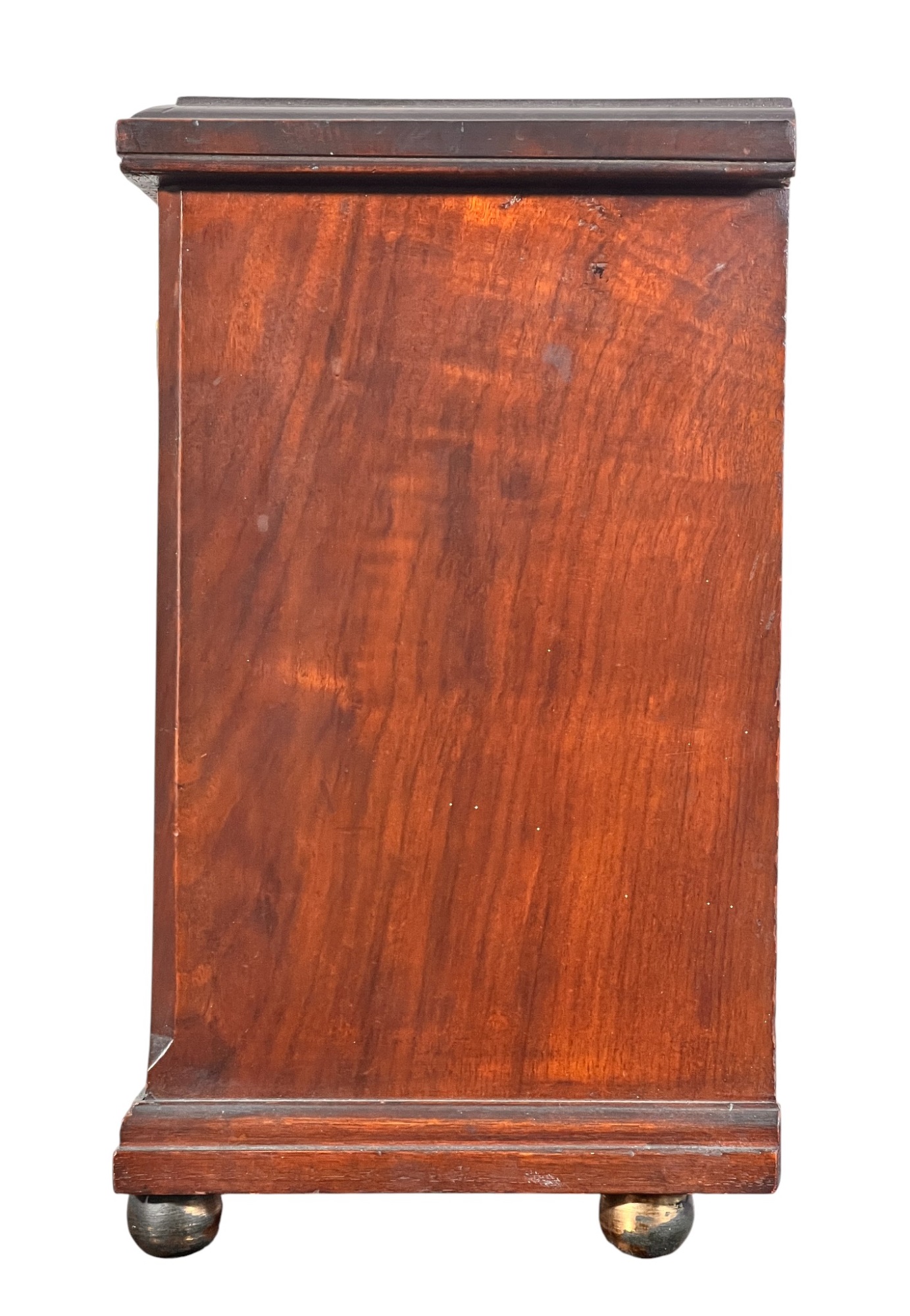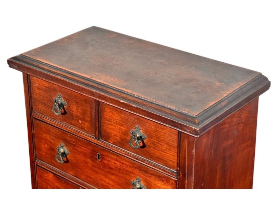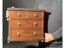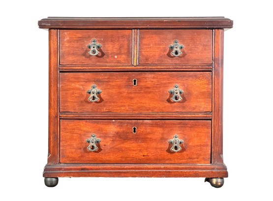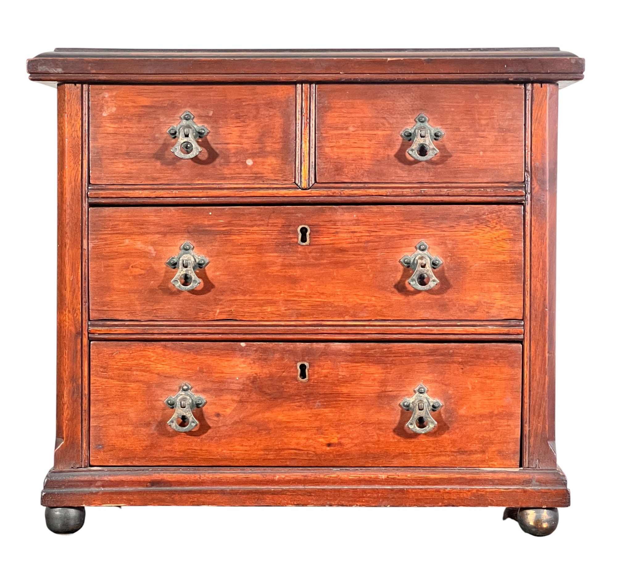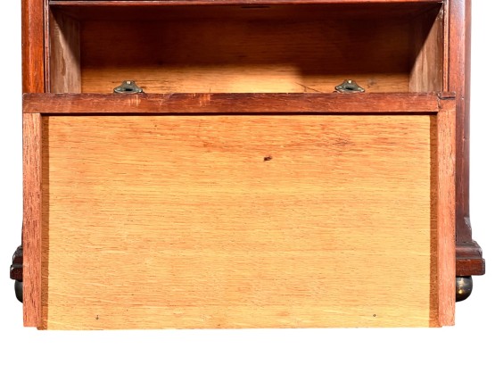 William & Mary style brass pulls, brass bun feet. 11 1/2 x 13 x 6 1/2 inches. Condition: Good.
