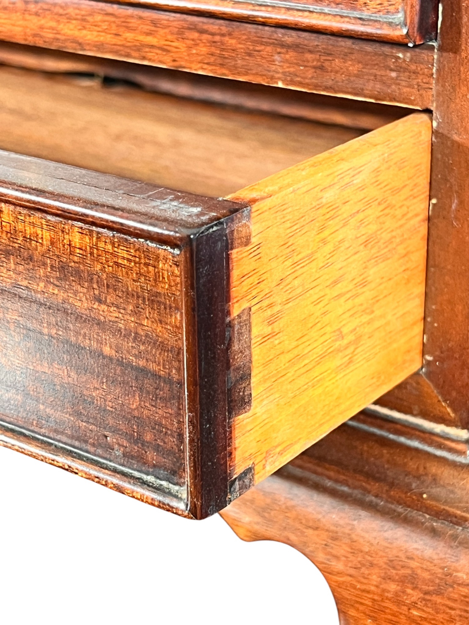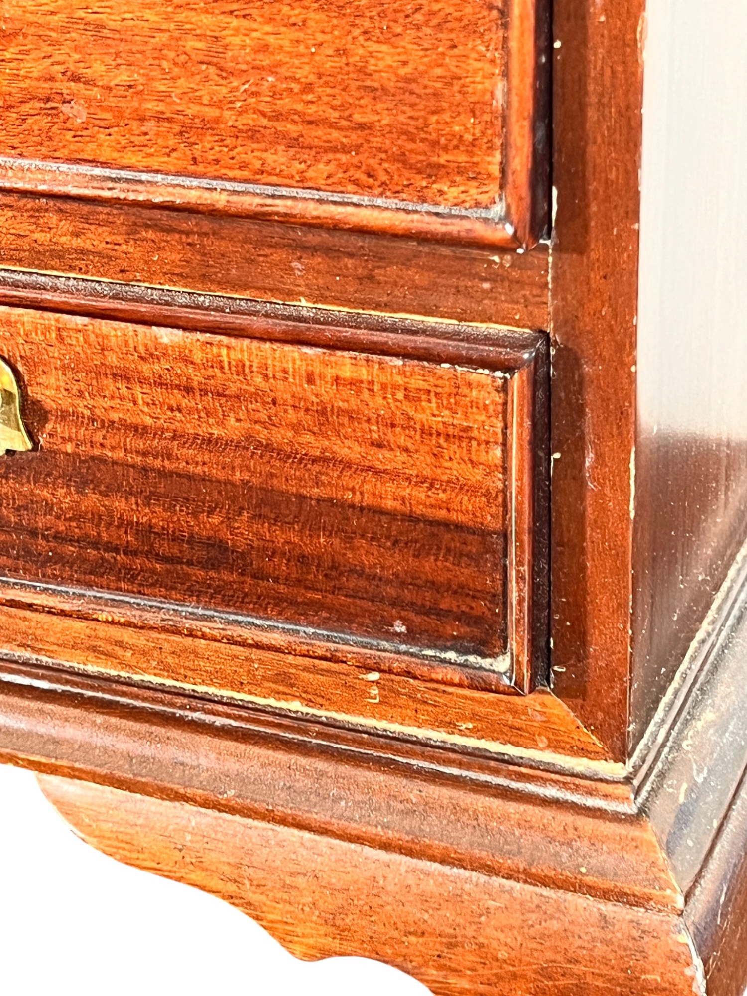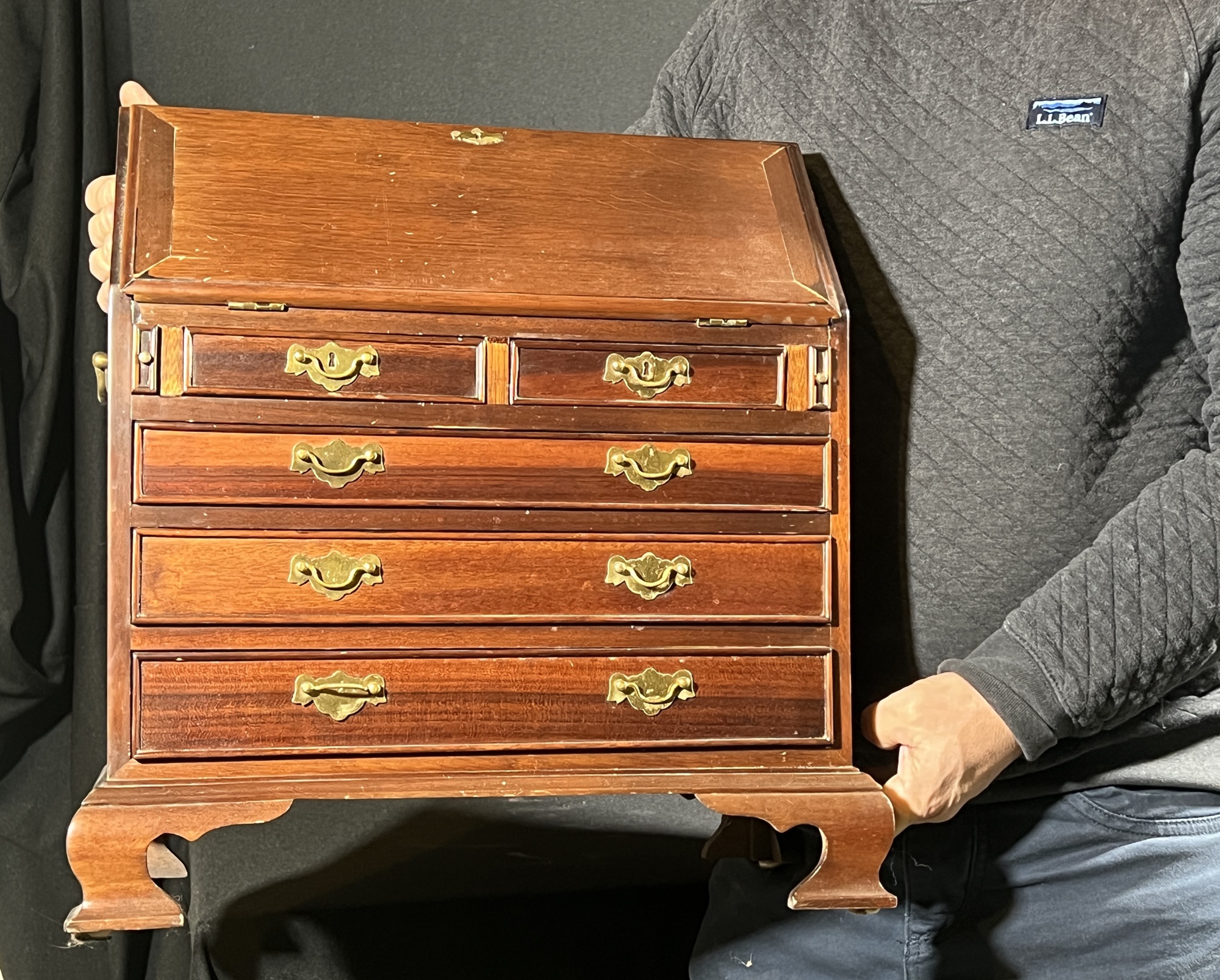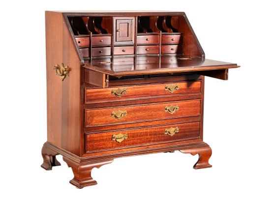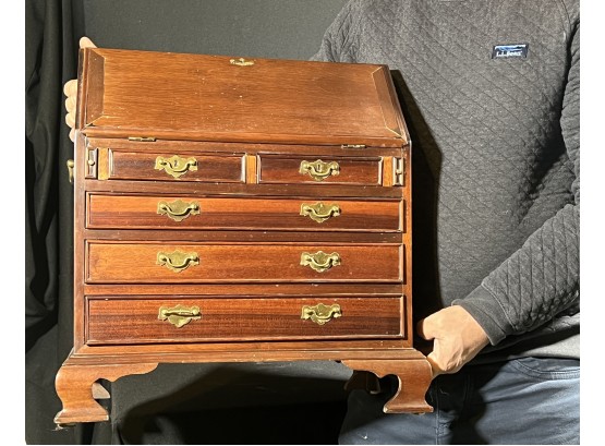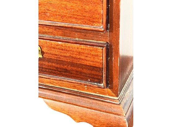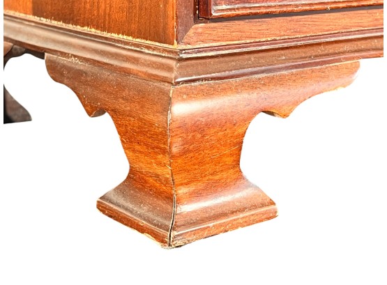Cockbeaded drawers, ogee feet, fitted interior. 18 x 17 1/4 x 9 3/4 inches. Condition: Good.