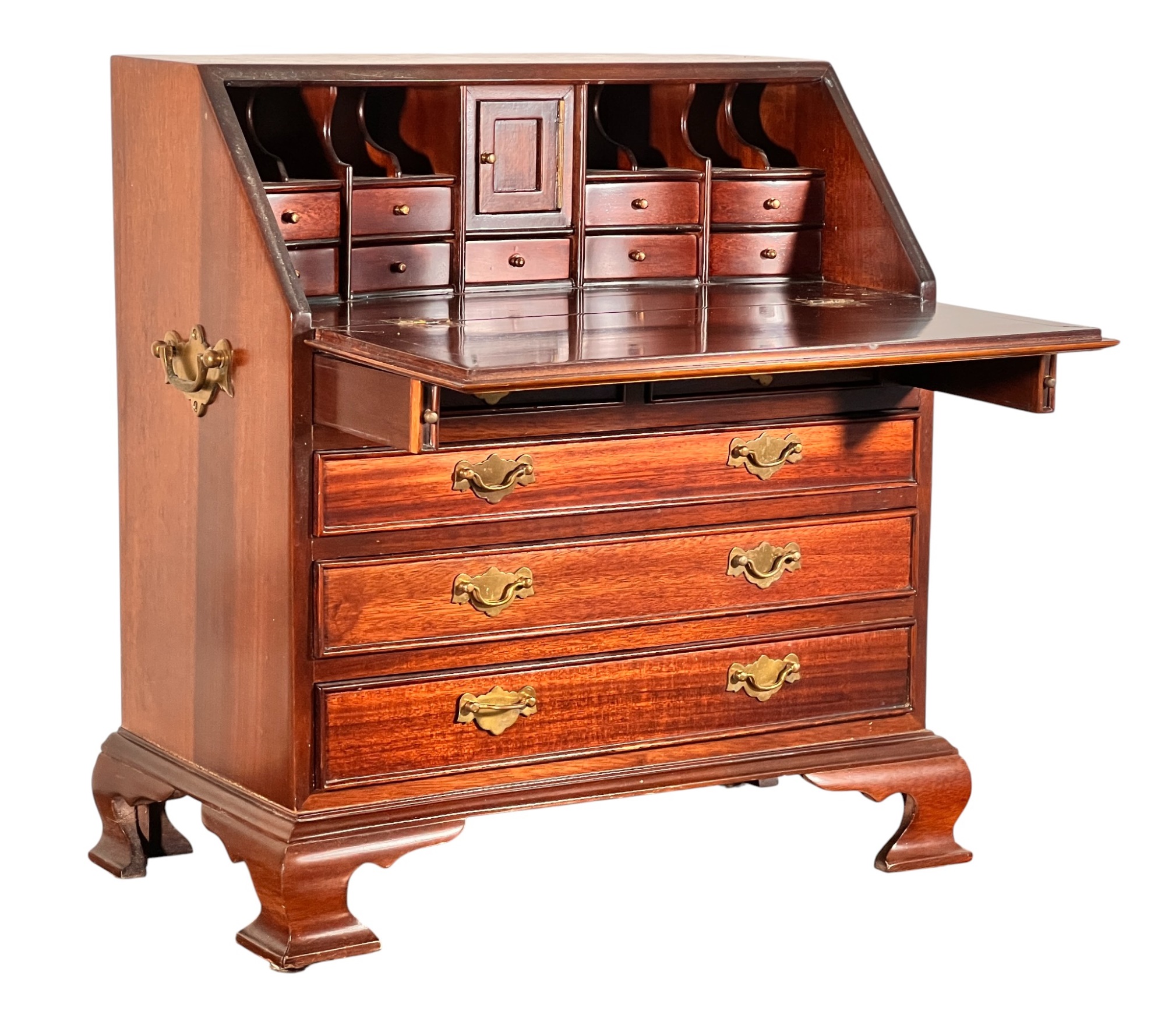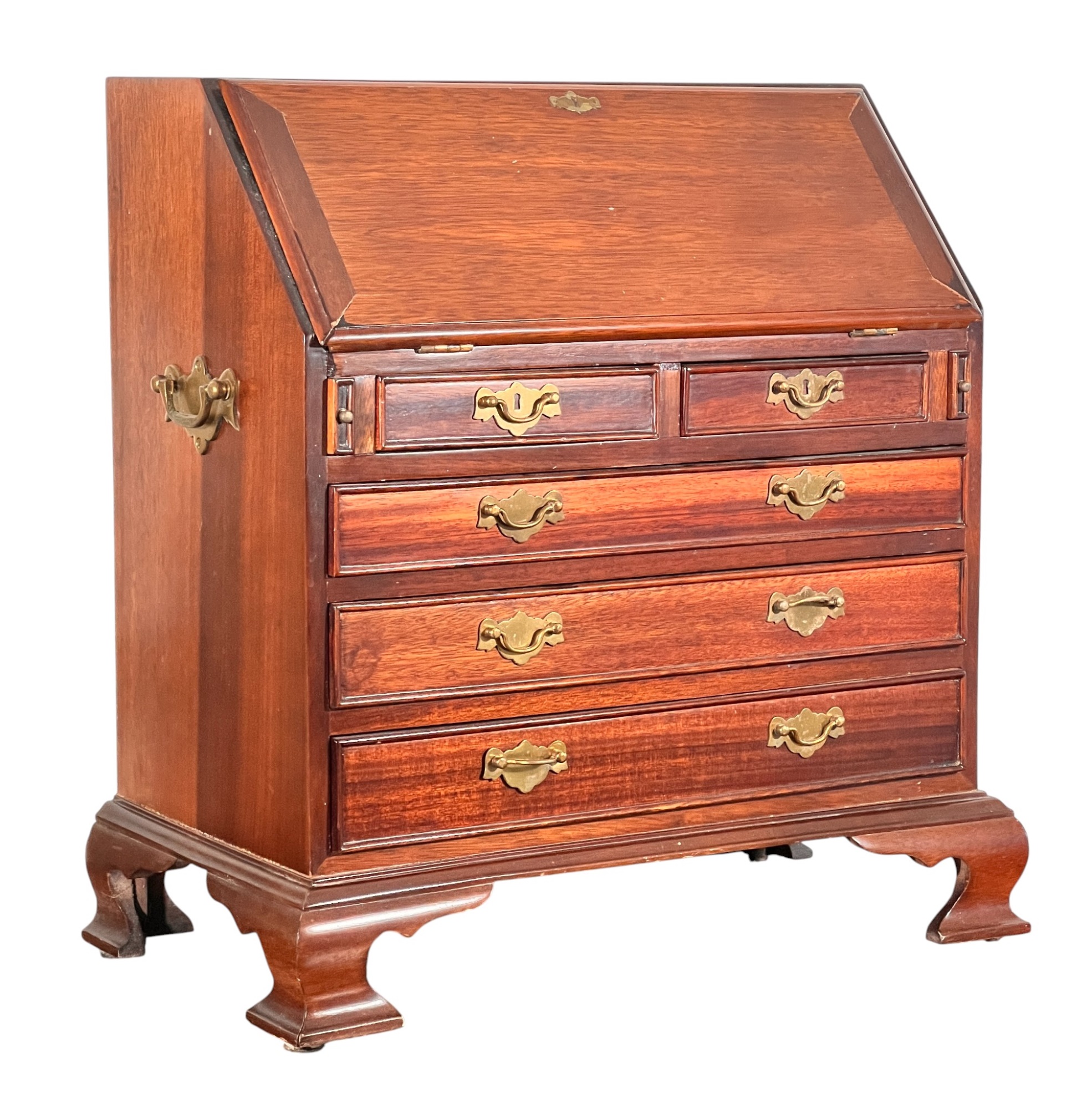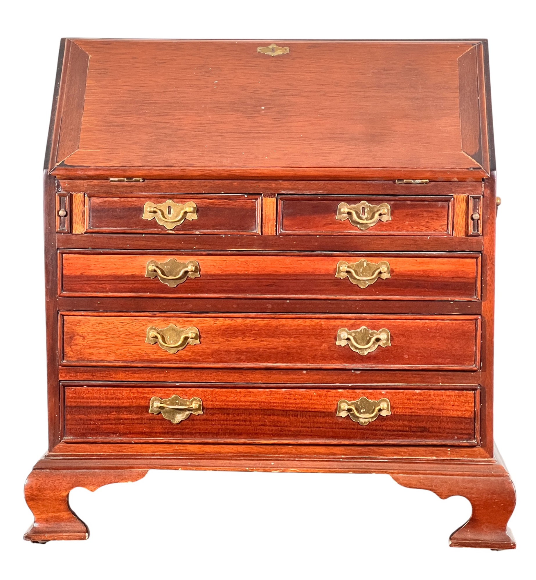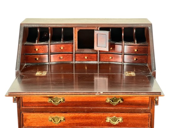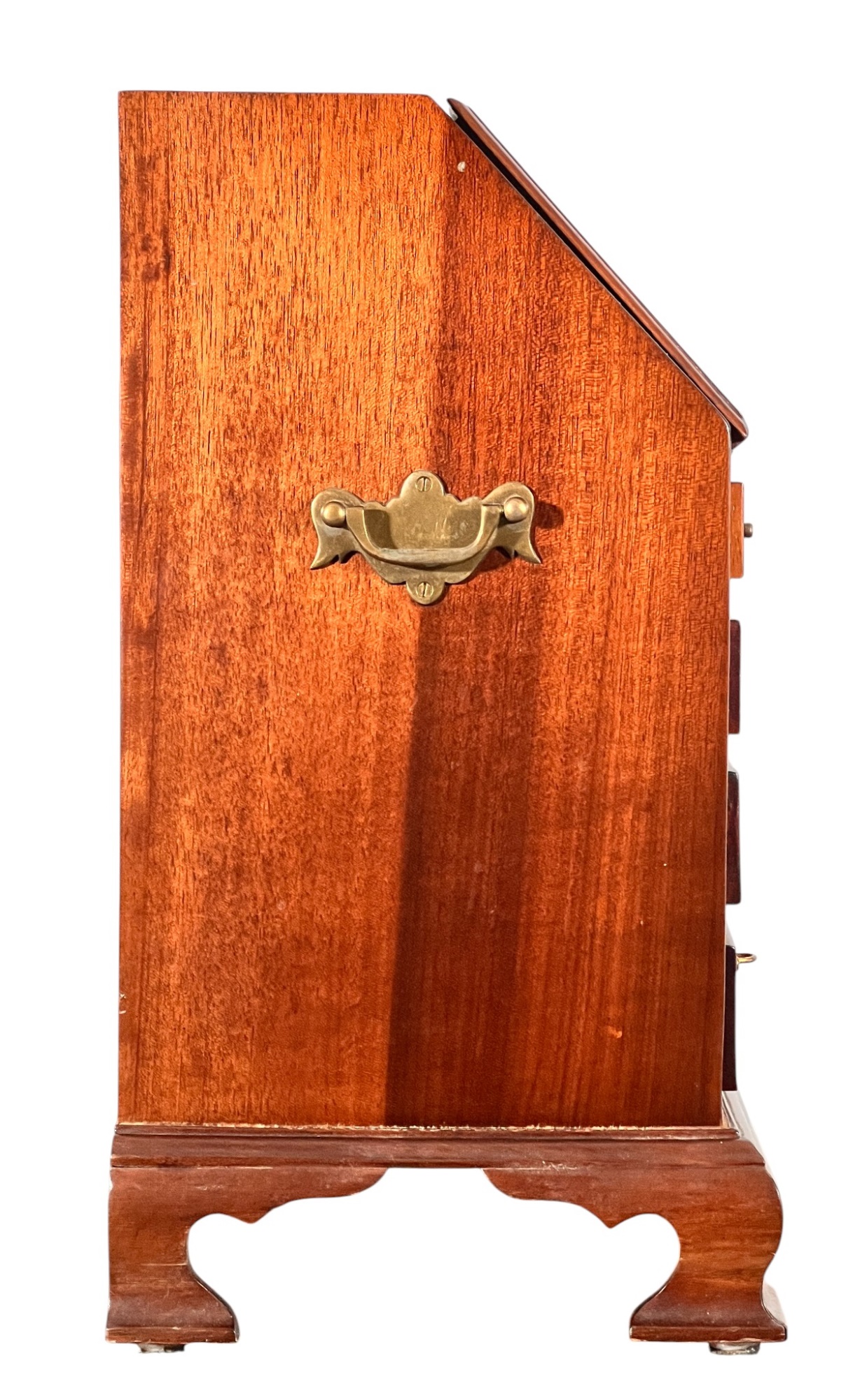 Cockbeaded drawers, ogee feet, fitted interior. 18 x 17 1/4 x 9 3/4 inches. Condition: Good.