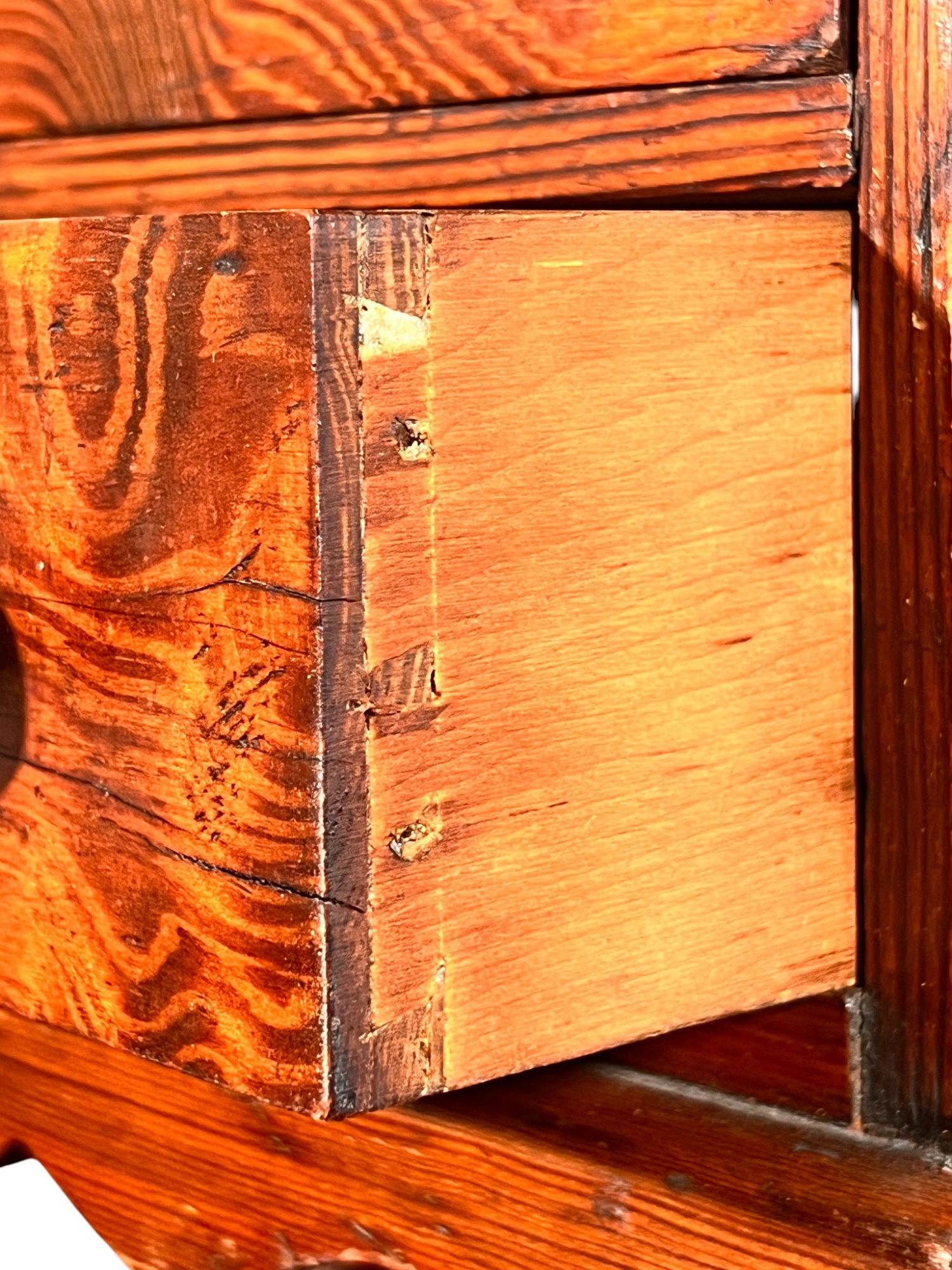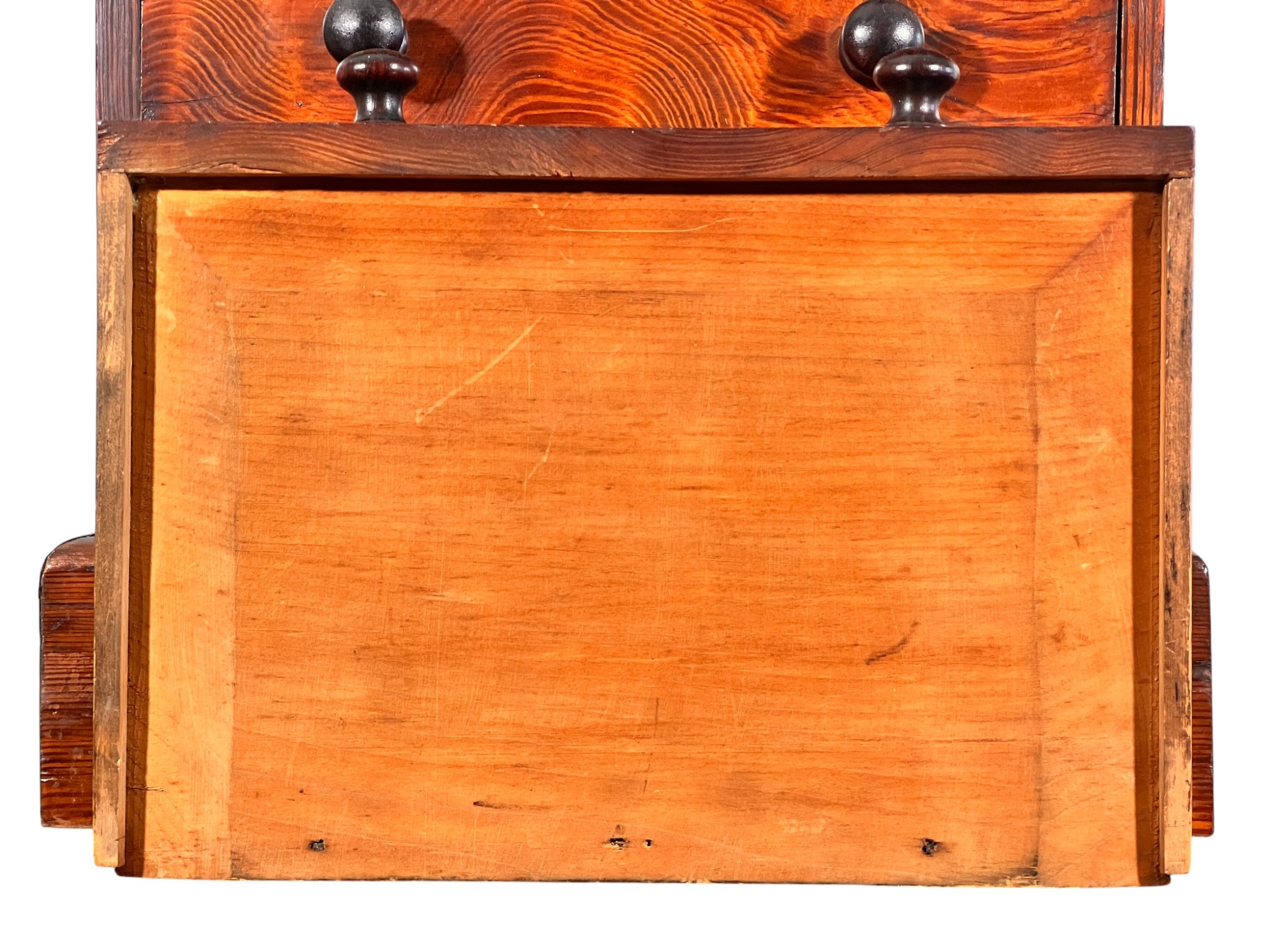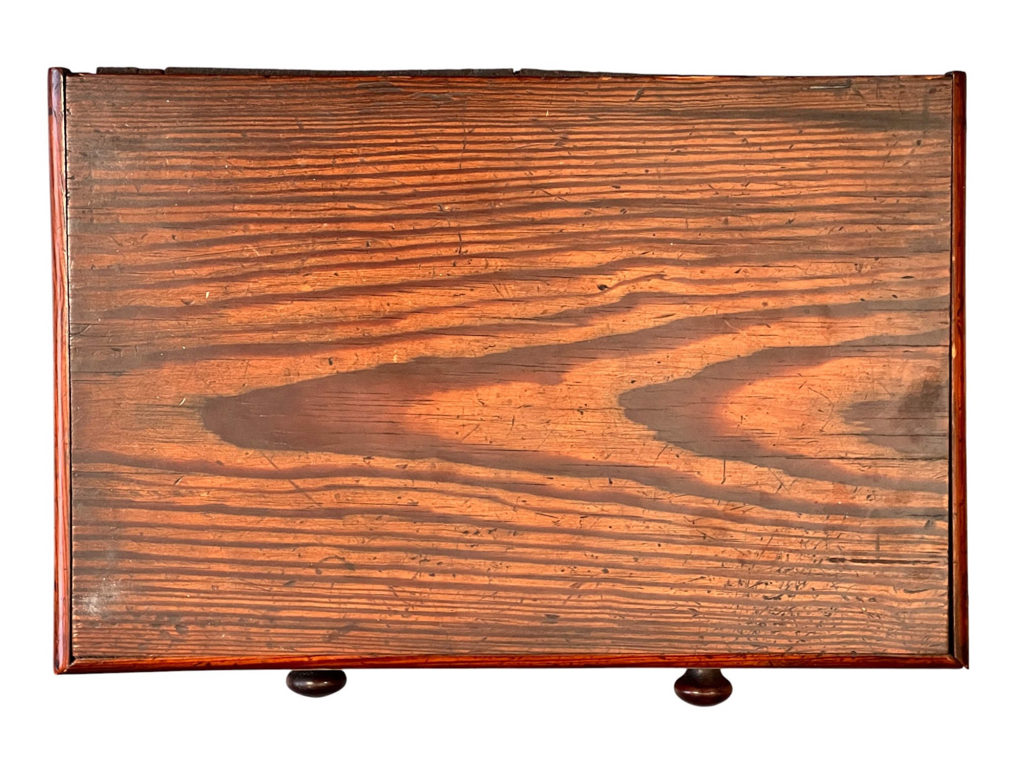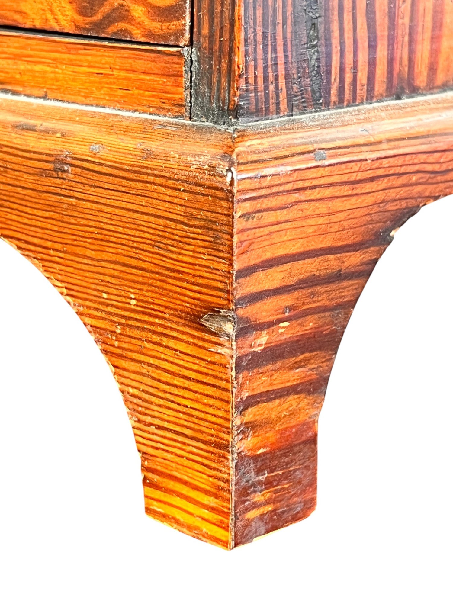 Miniature (19th c) chest of drawers with interesting wavy wood grain, interior signed & dated "William Mee May 22nd 1878". Found in NJ. 12 1/2 x 11 3/4 x 7 3/4 inches. Condition: Good.