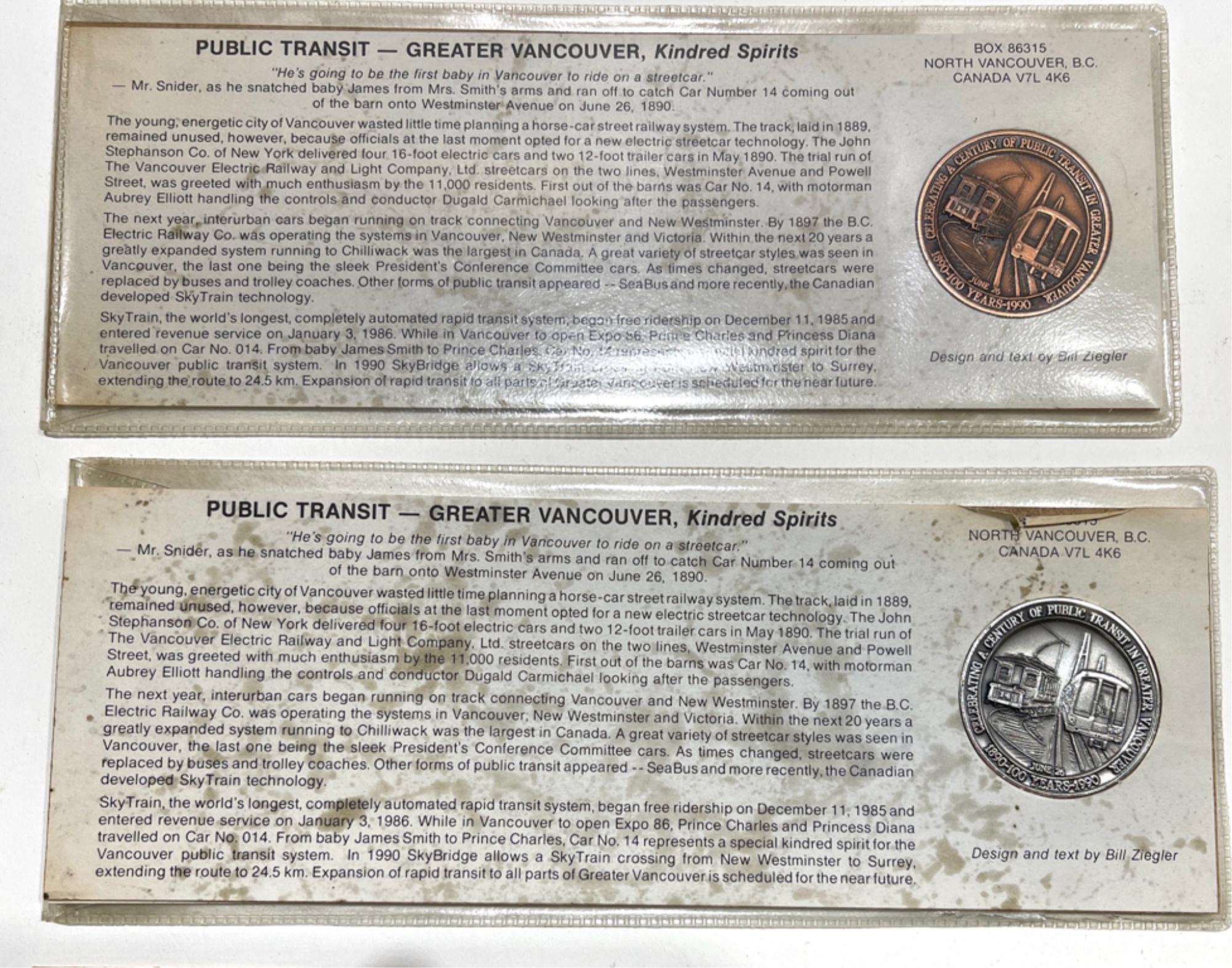 With limited edition vecturist salesman's samples publication. One Vancouver Kindred Spirits medal is .999 silver