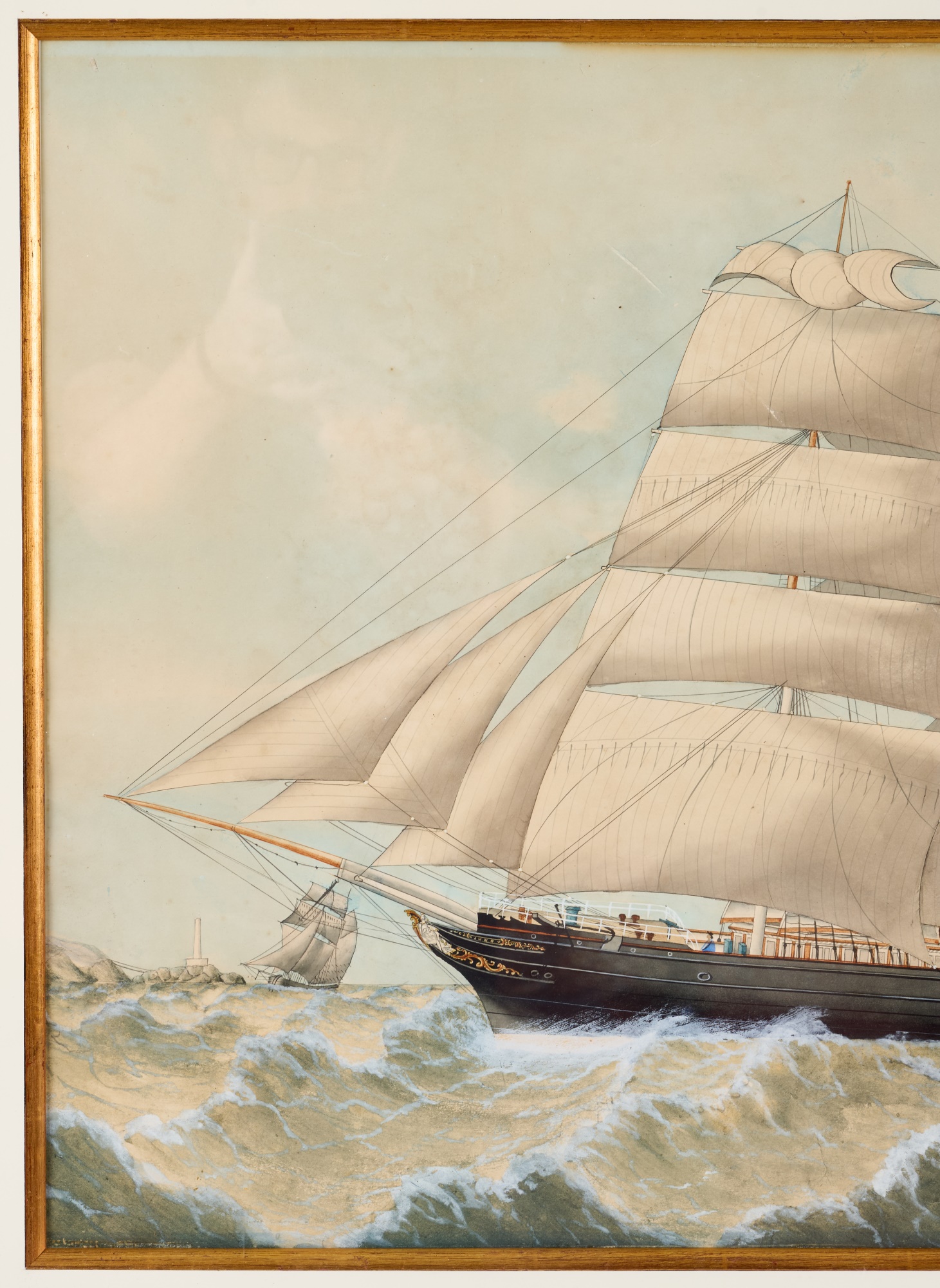 Watercolor and gouache 19.5 x 32 inches. unsigned. Framed 28 x 41 inches (overall) Condition: (2) Non-displaced punctures, light scratch