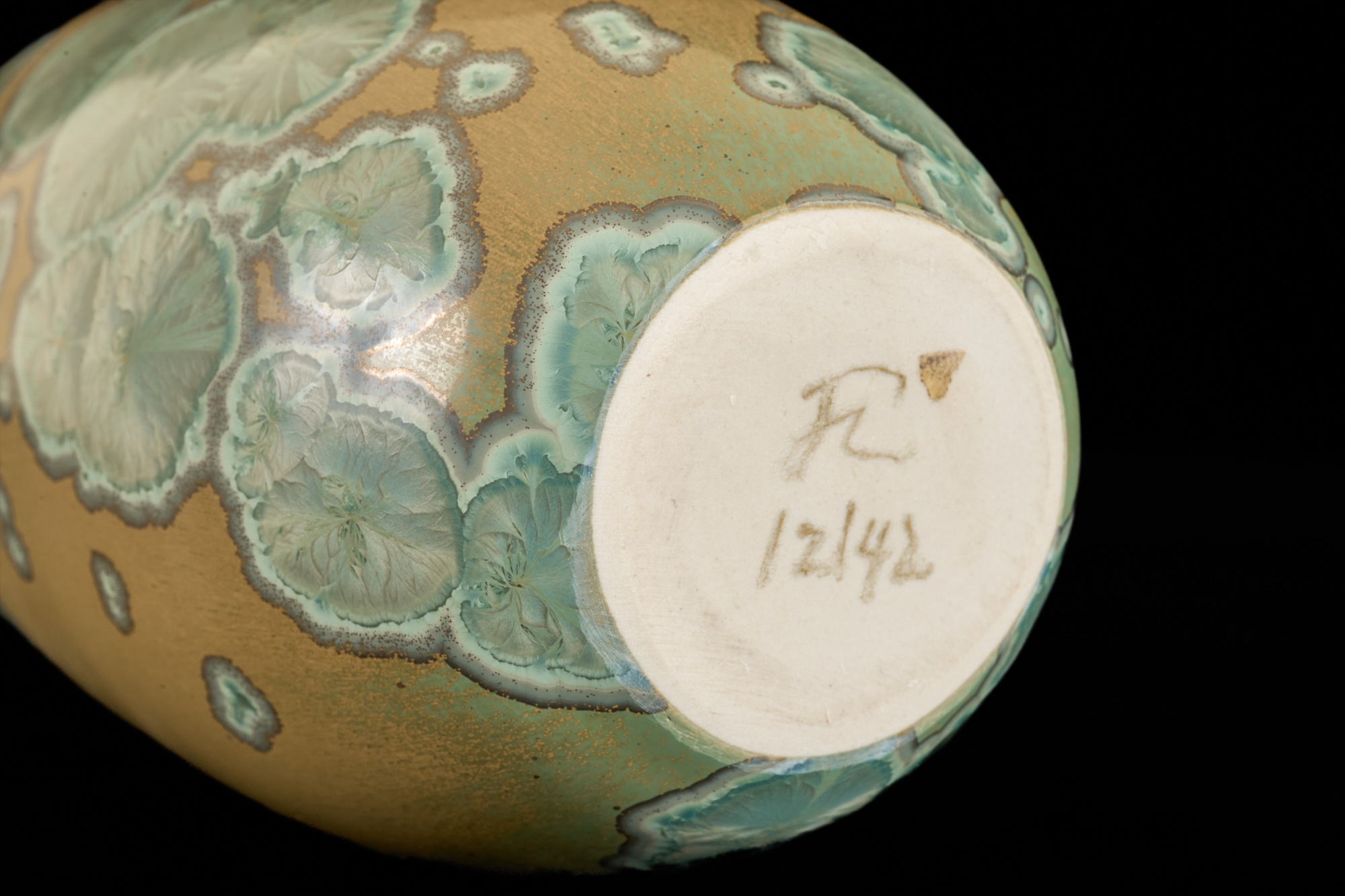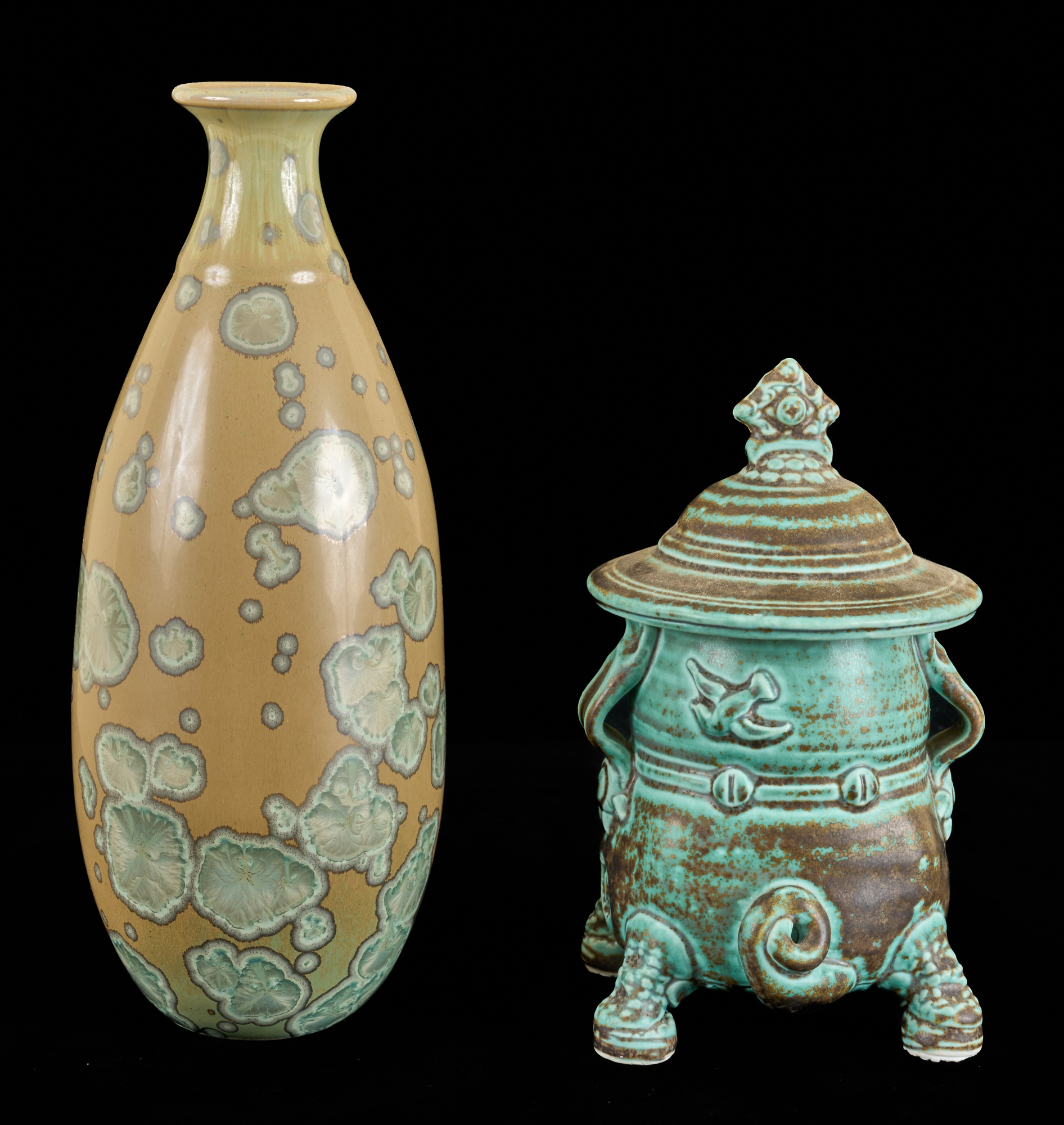 Crystaline glazed vase signed in cipher. 7 and 9.5 inches Condition: Good