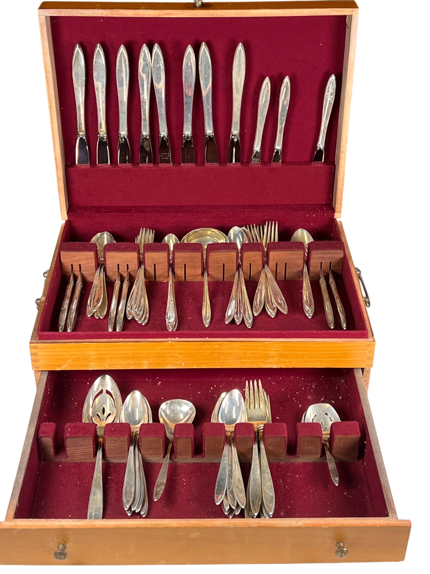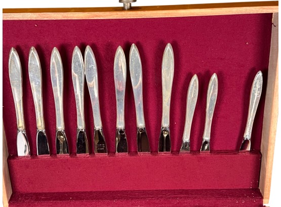 Service of (8) with serving pieces. Esprit pattern in silver chest. 66.17 OZT weighable Condition: Good