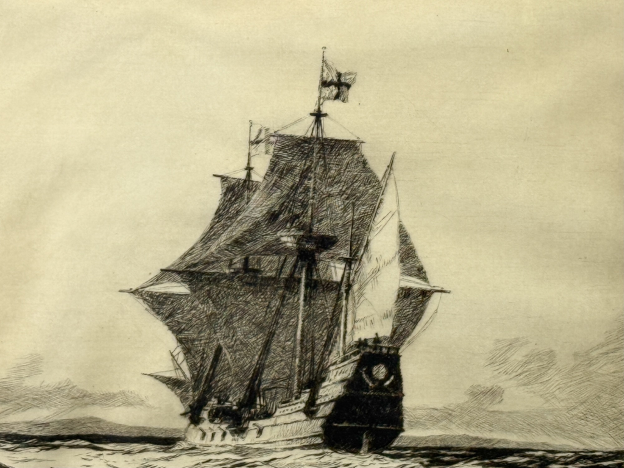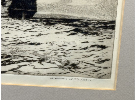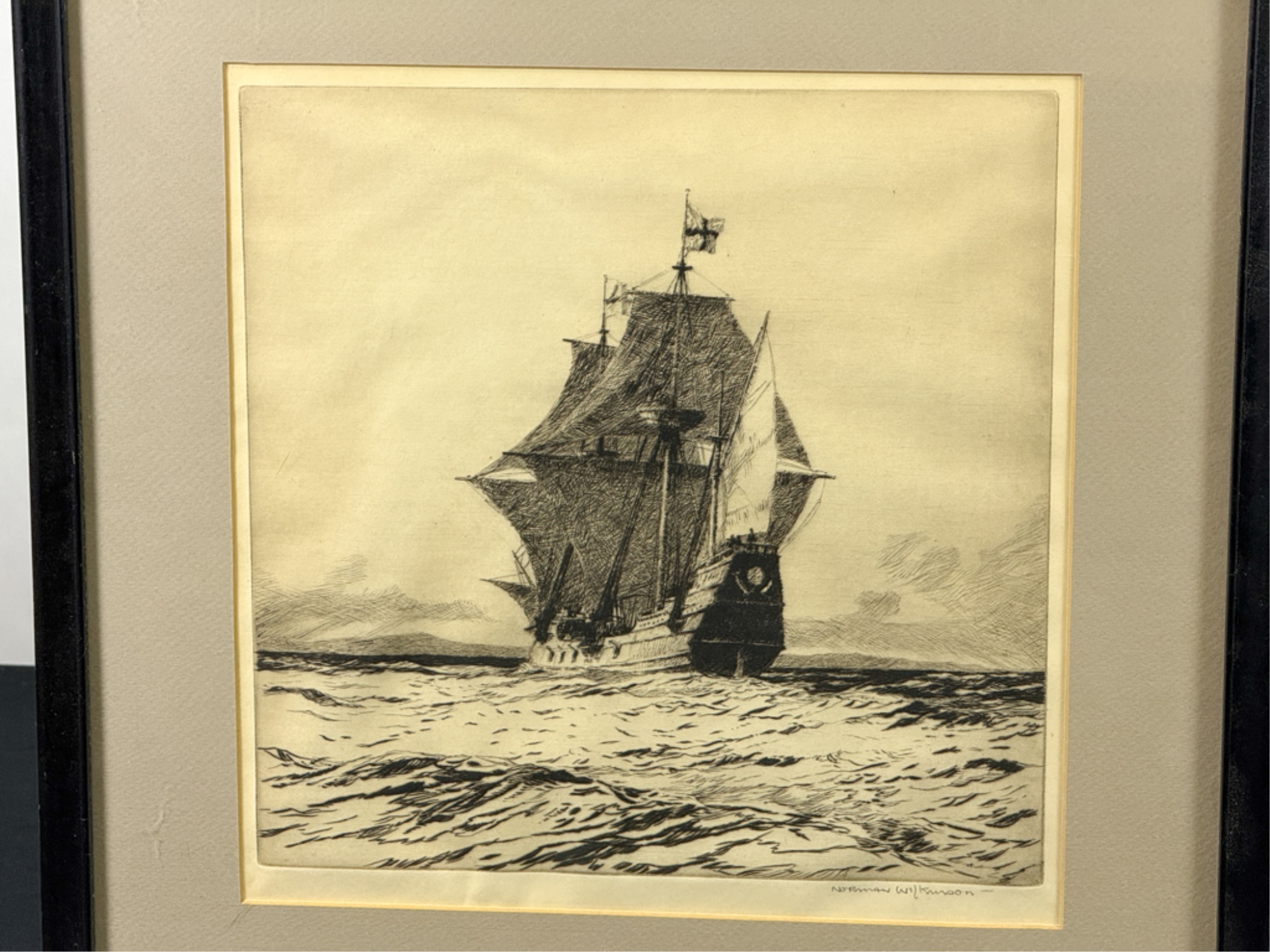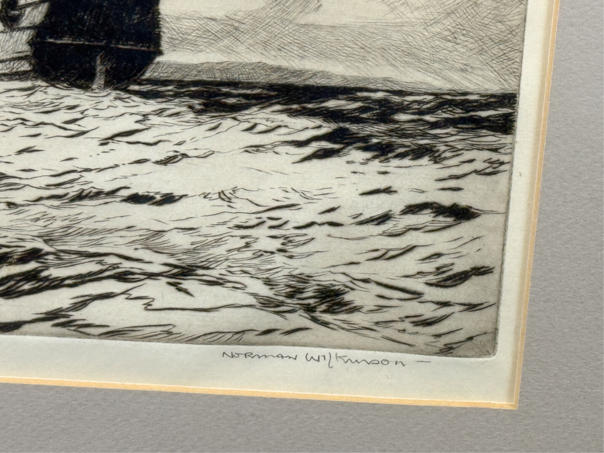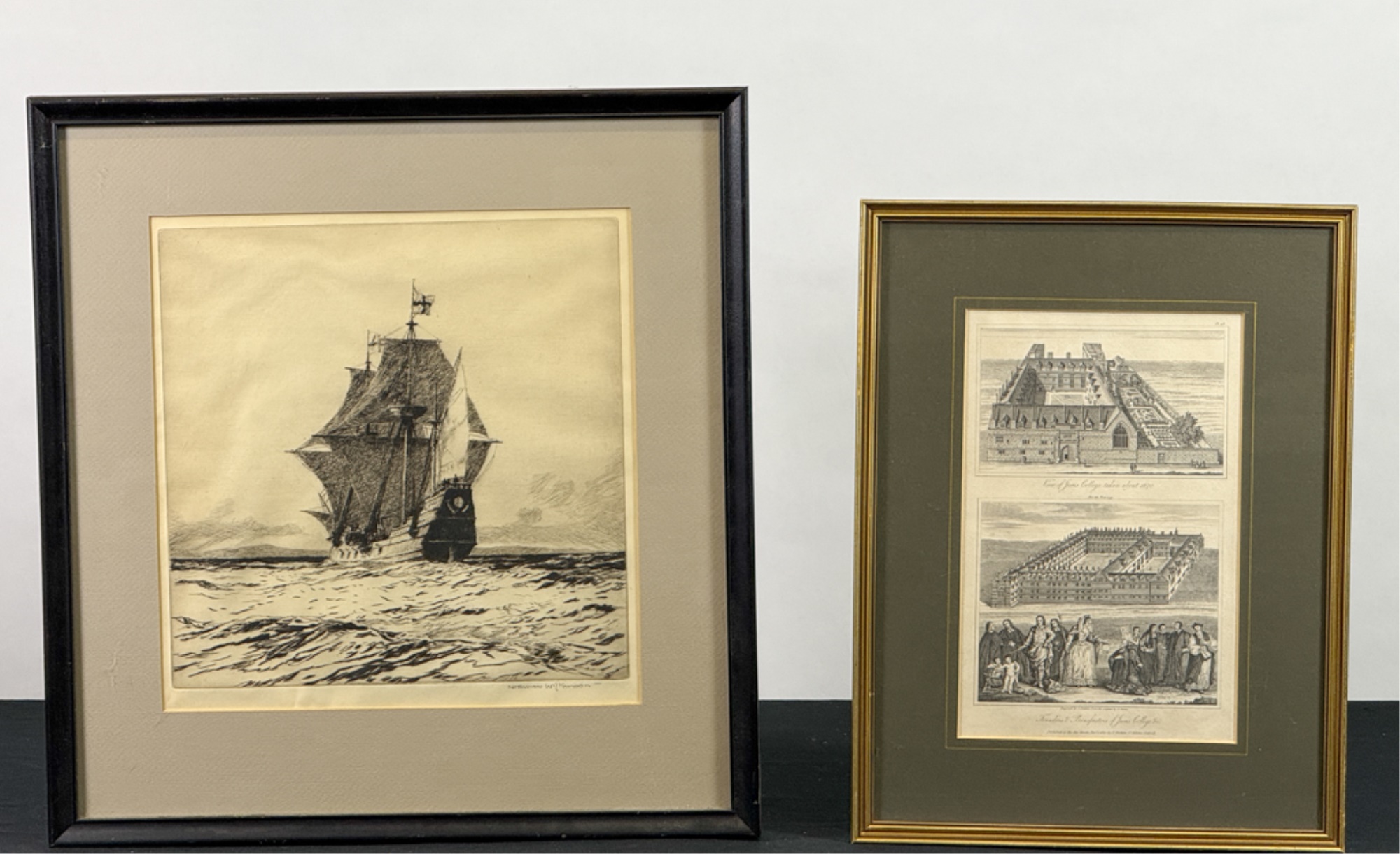 "Sailing Away", engraving, pencil signed lower right along with "Founders & Benefactors of Jesus College". 19 1/4 x 18 1/4 inches overall. Condition: Good. Temp No 2559