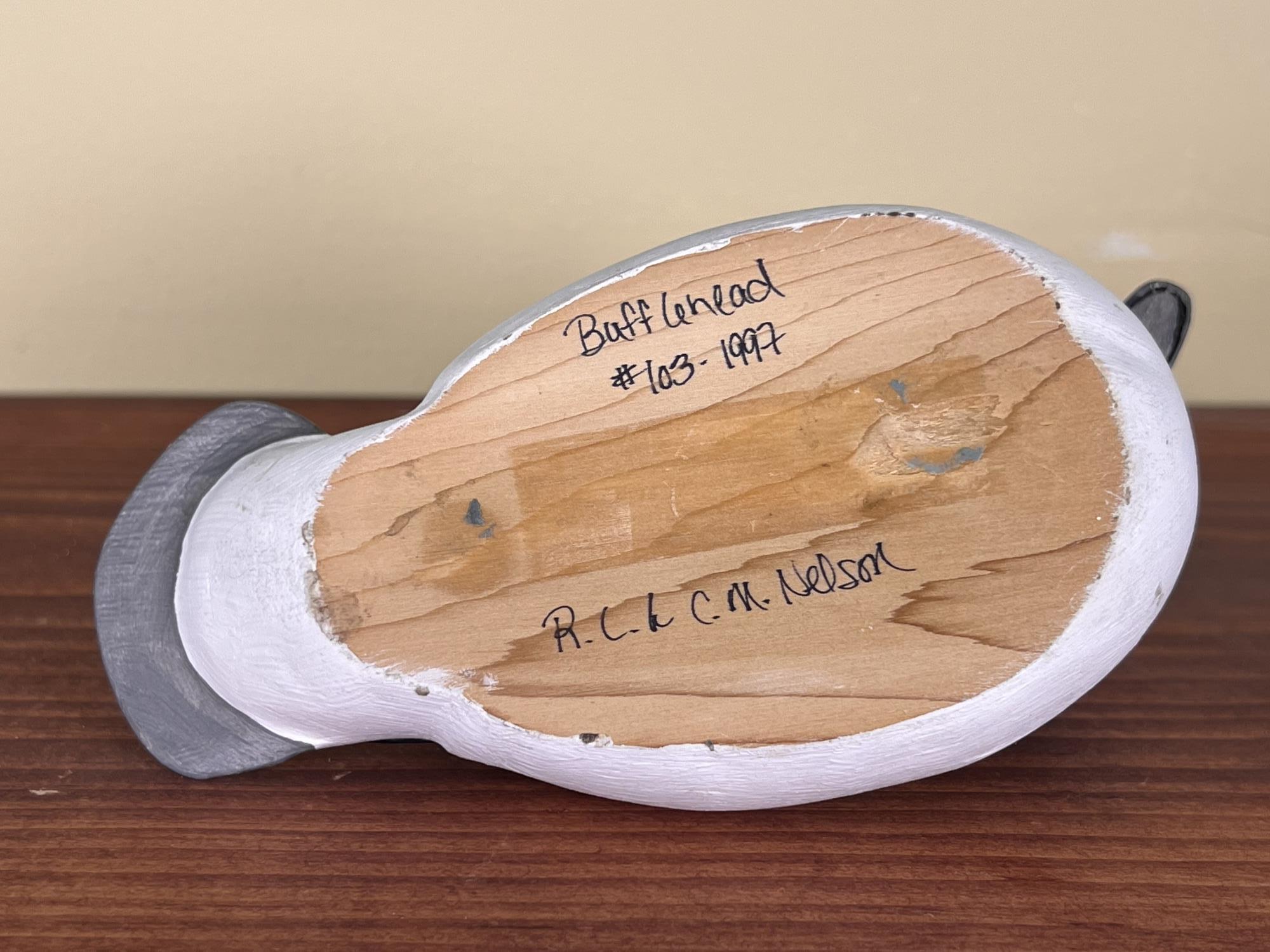 Signed under base. Nelson Decoys, Jonesport, ME. 6 3/4" long