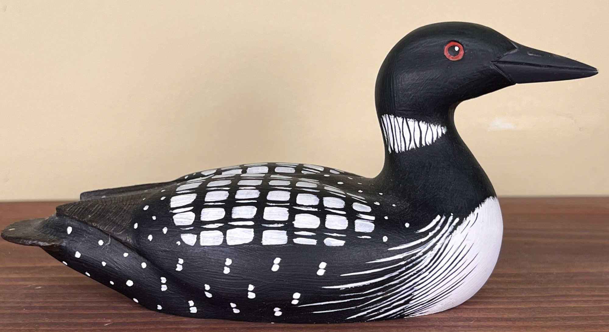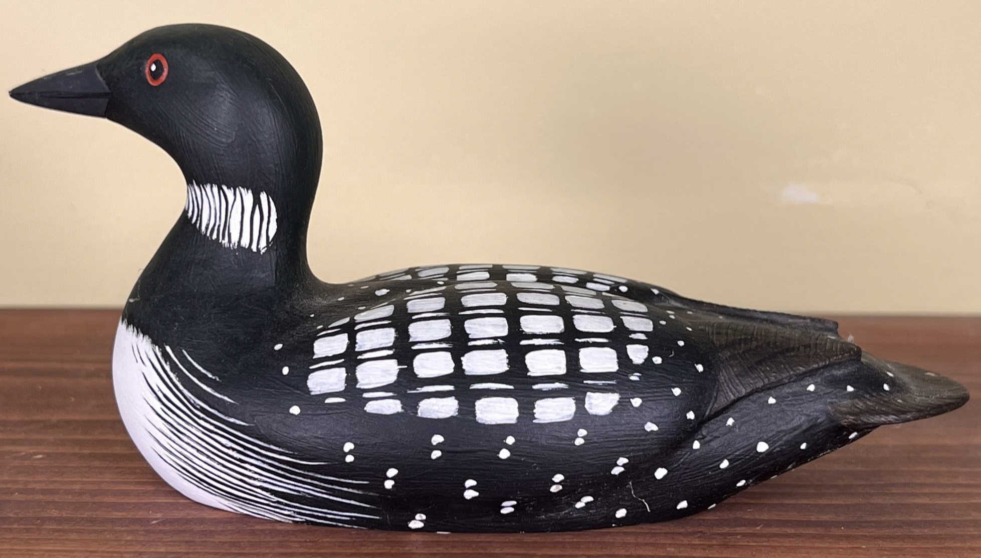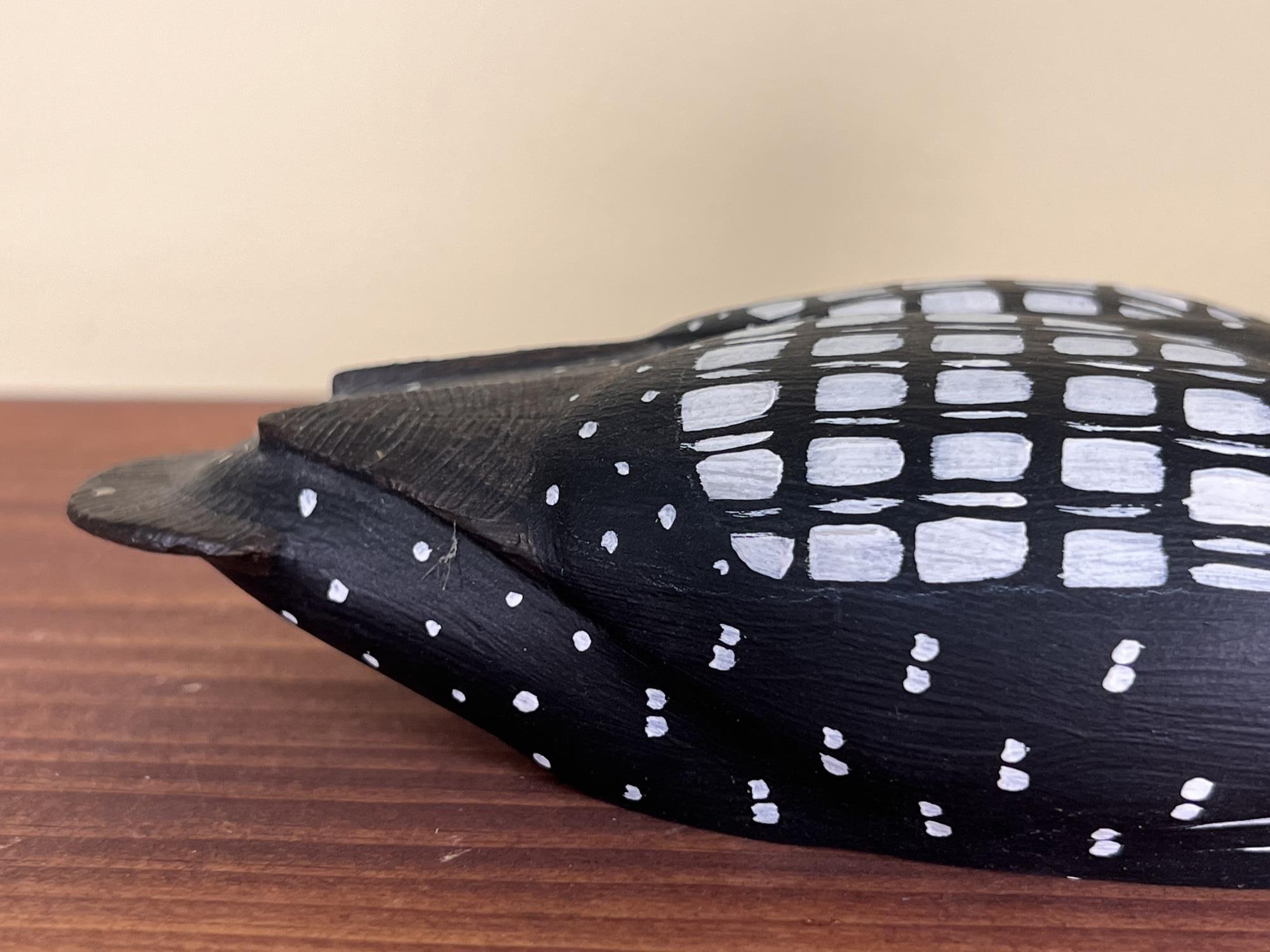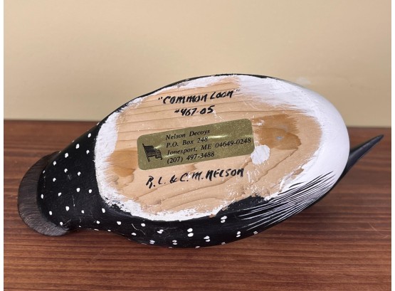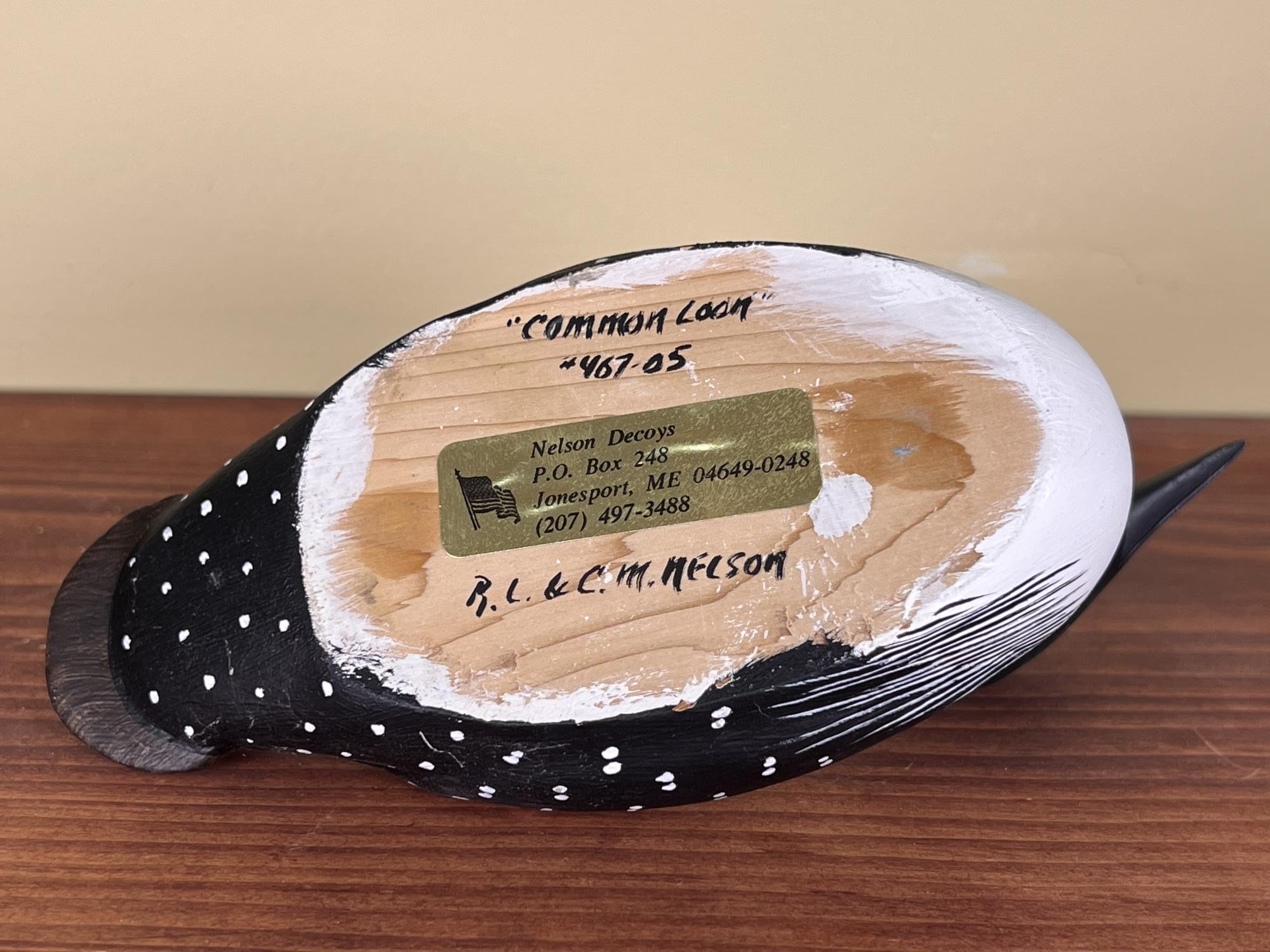 Signed under base. Nelson Decoys, Jonesport, ME. 8" long