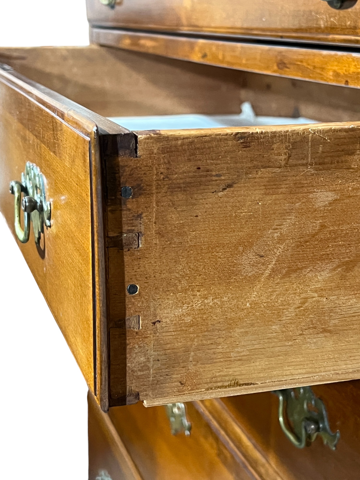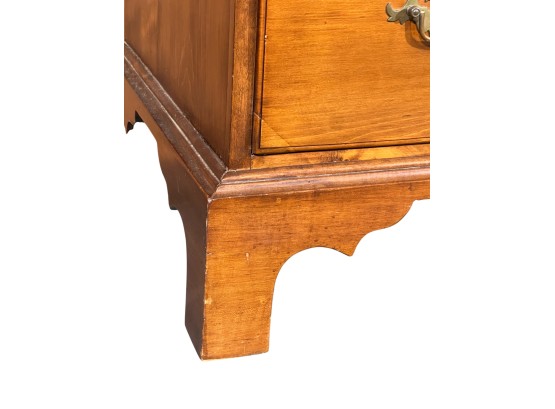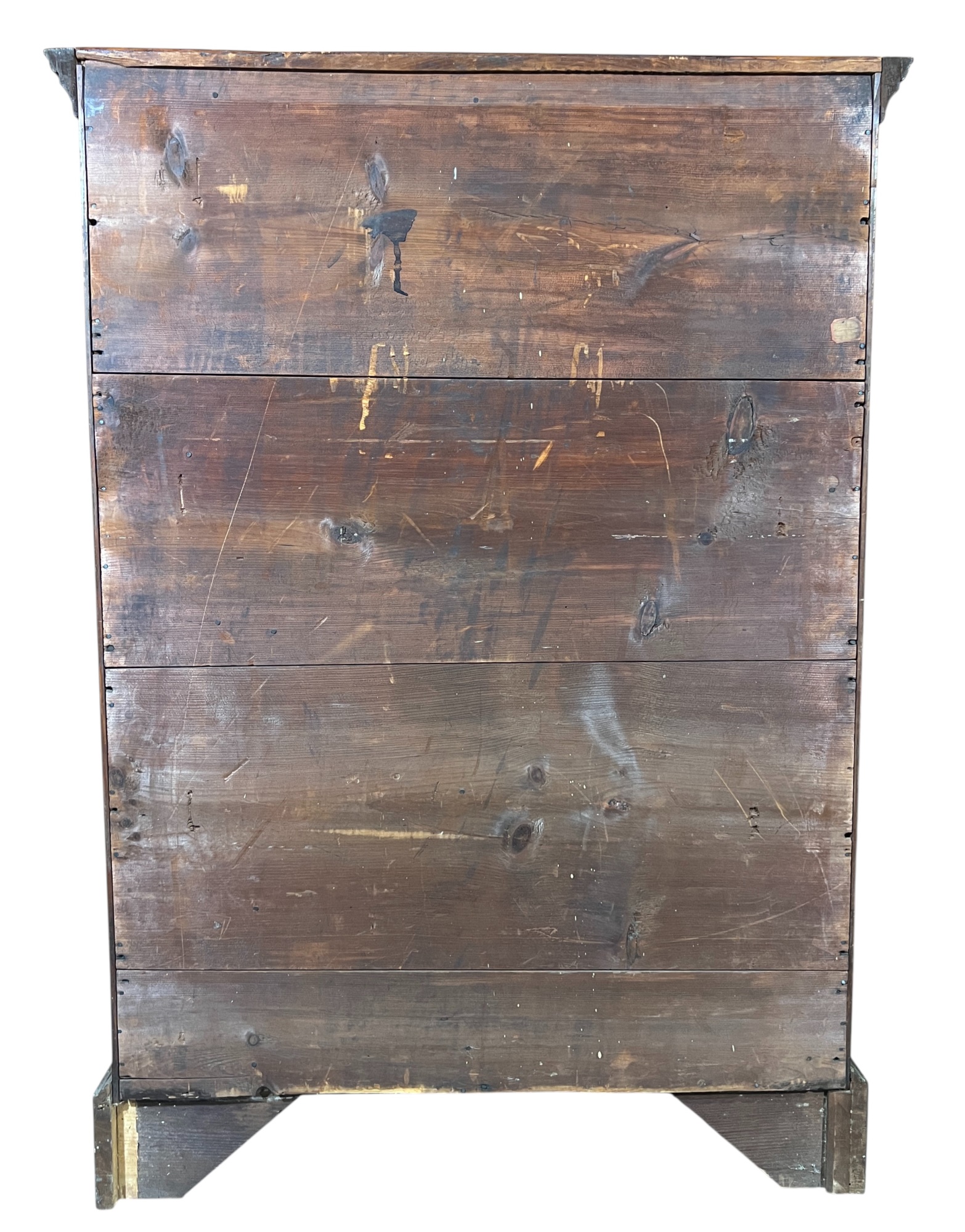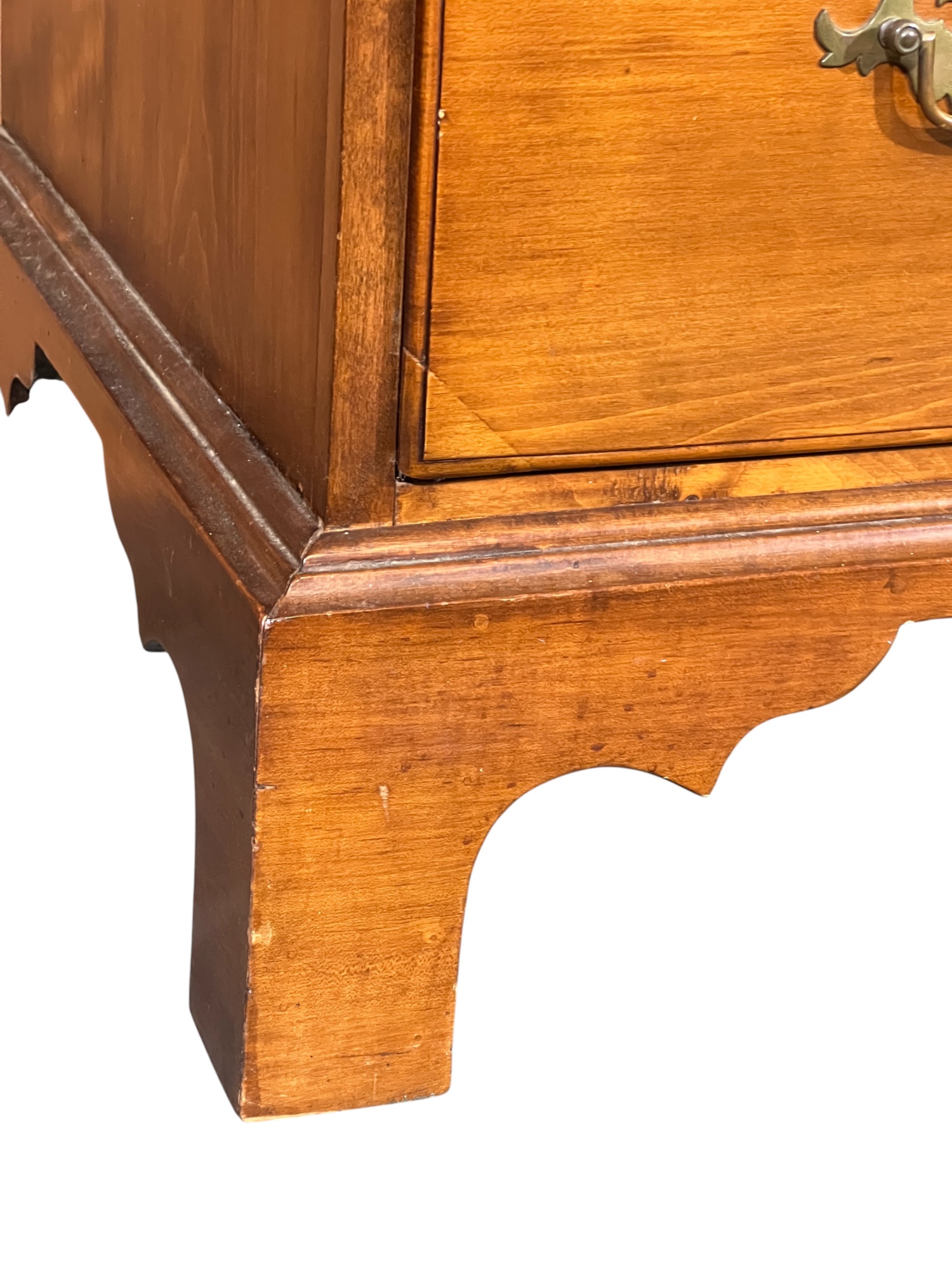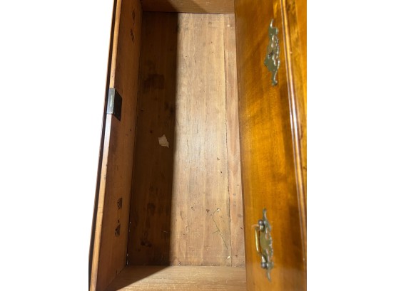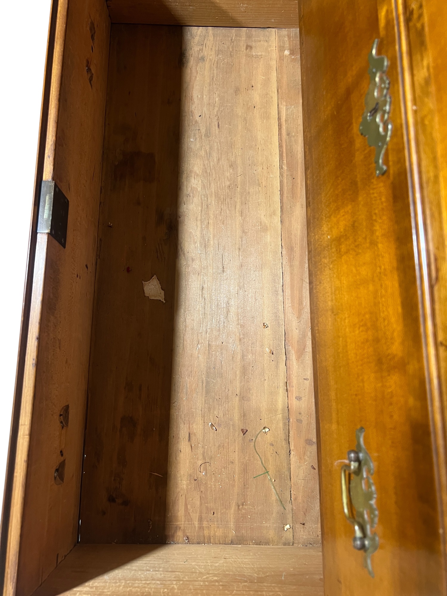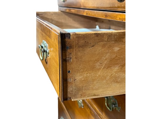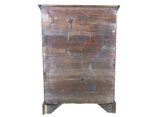 Molded top, (6) graduated drawers, dovetail construction, interesting double eagle brass pulls, bracket feet. 54 1/2 x 39 x 19 1/2 inches. Condition: Good. Temp No 3001