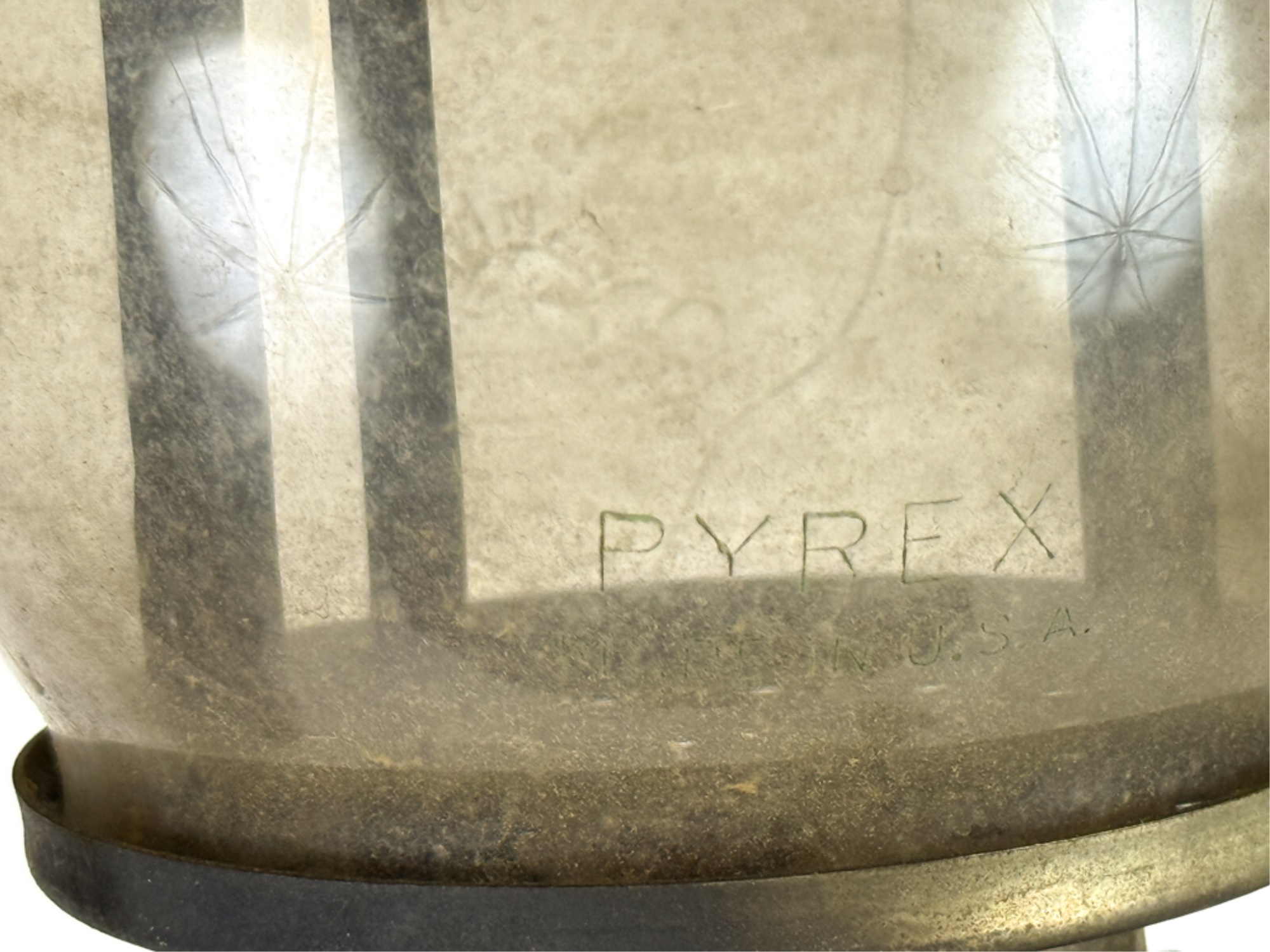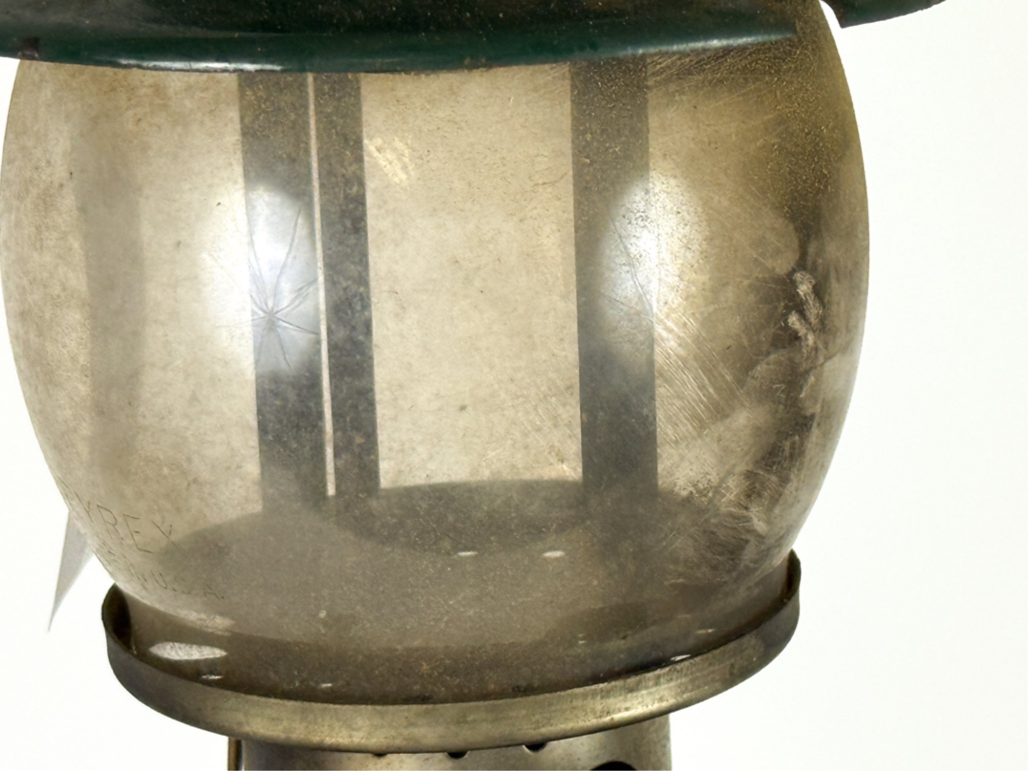 19 1/2 inches including handle. Condition: Surface grime, crack to shade. Please see photos. Temp No 4051
